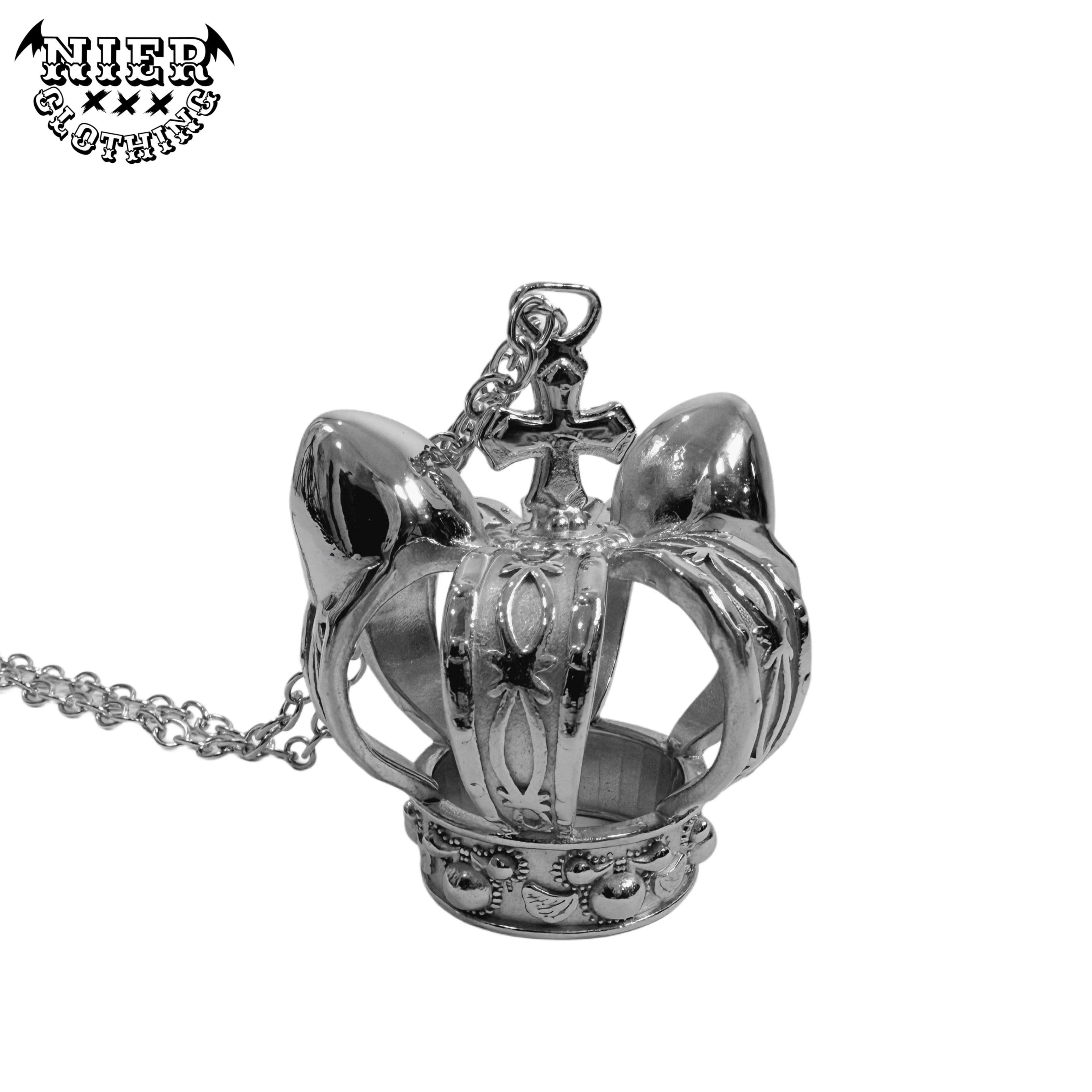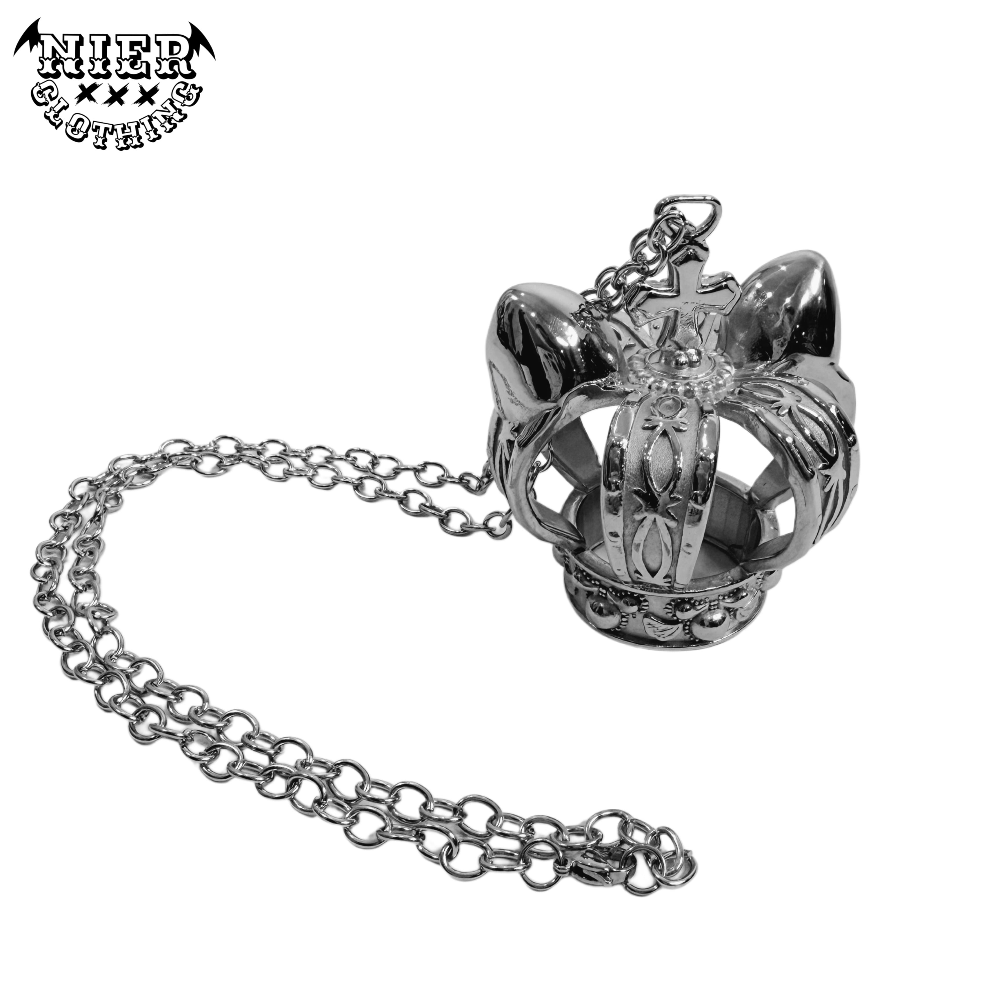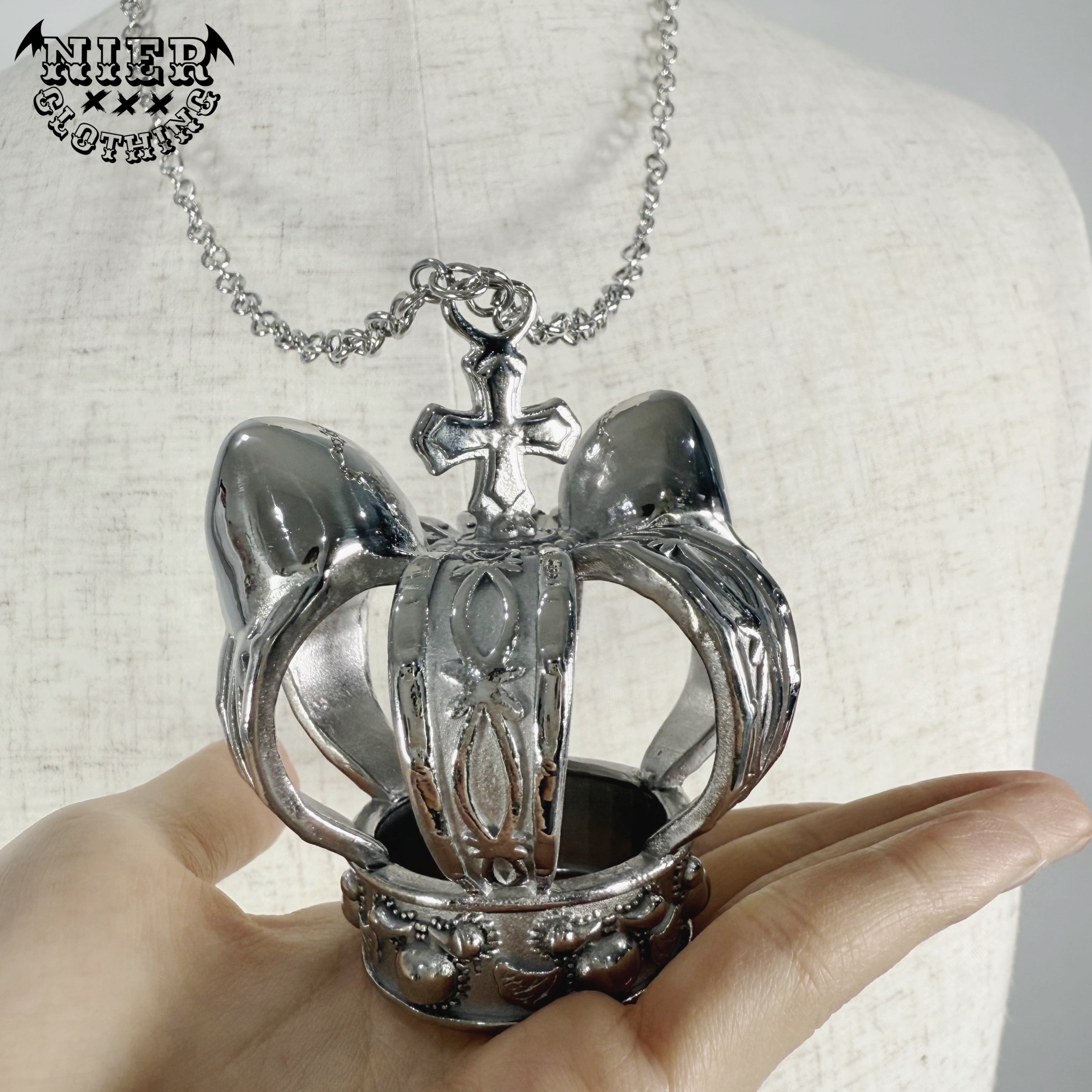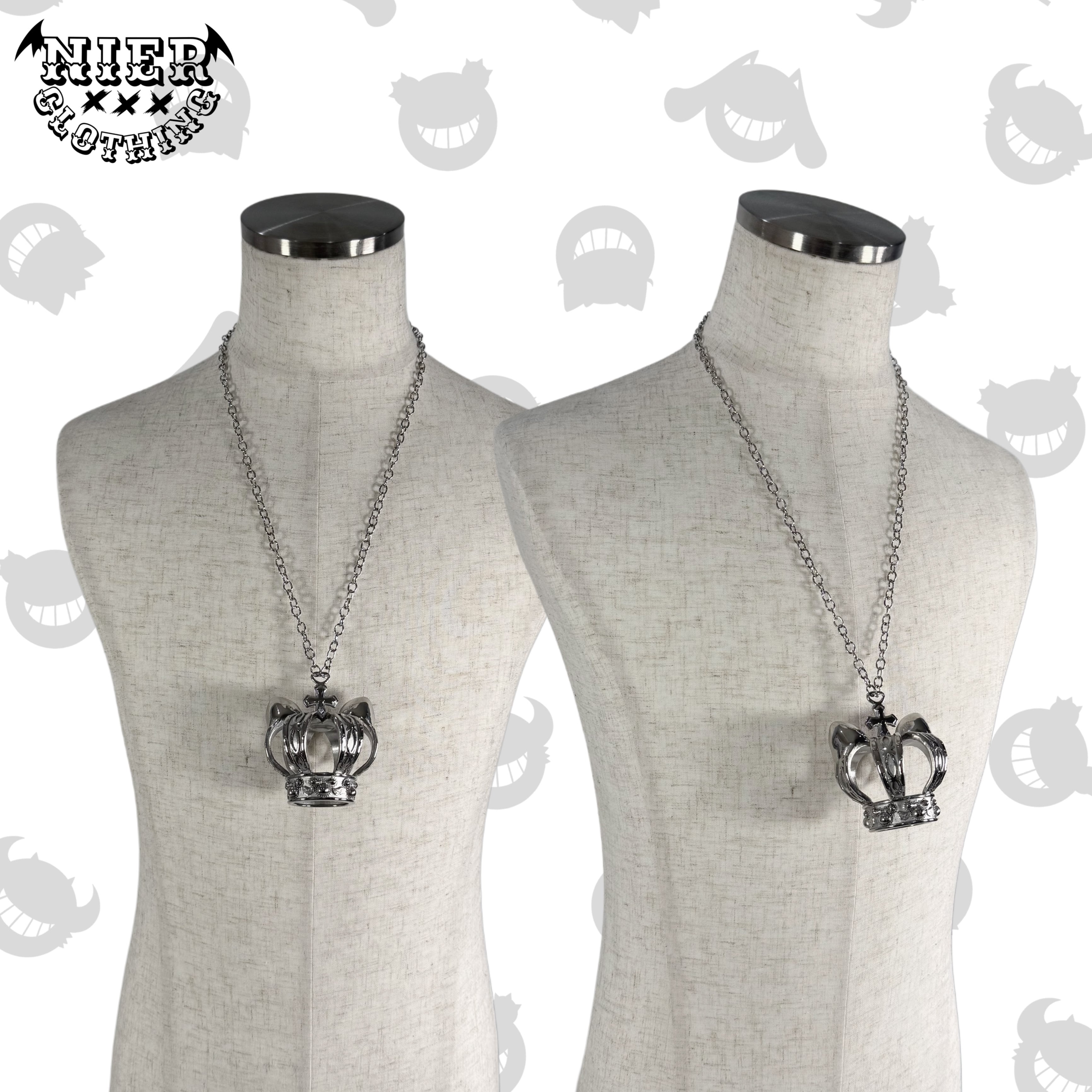 《バレンタイン前新作70%OFFプレゼント》高品質重厚SILVER CAT EAR CROWN NECKLACE