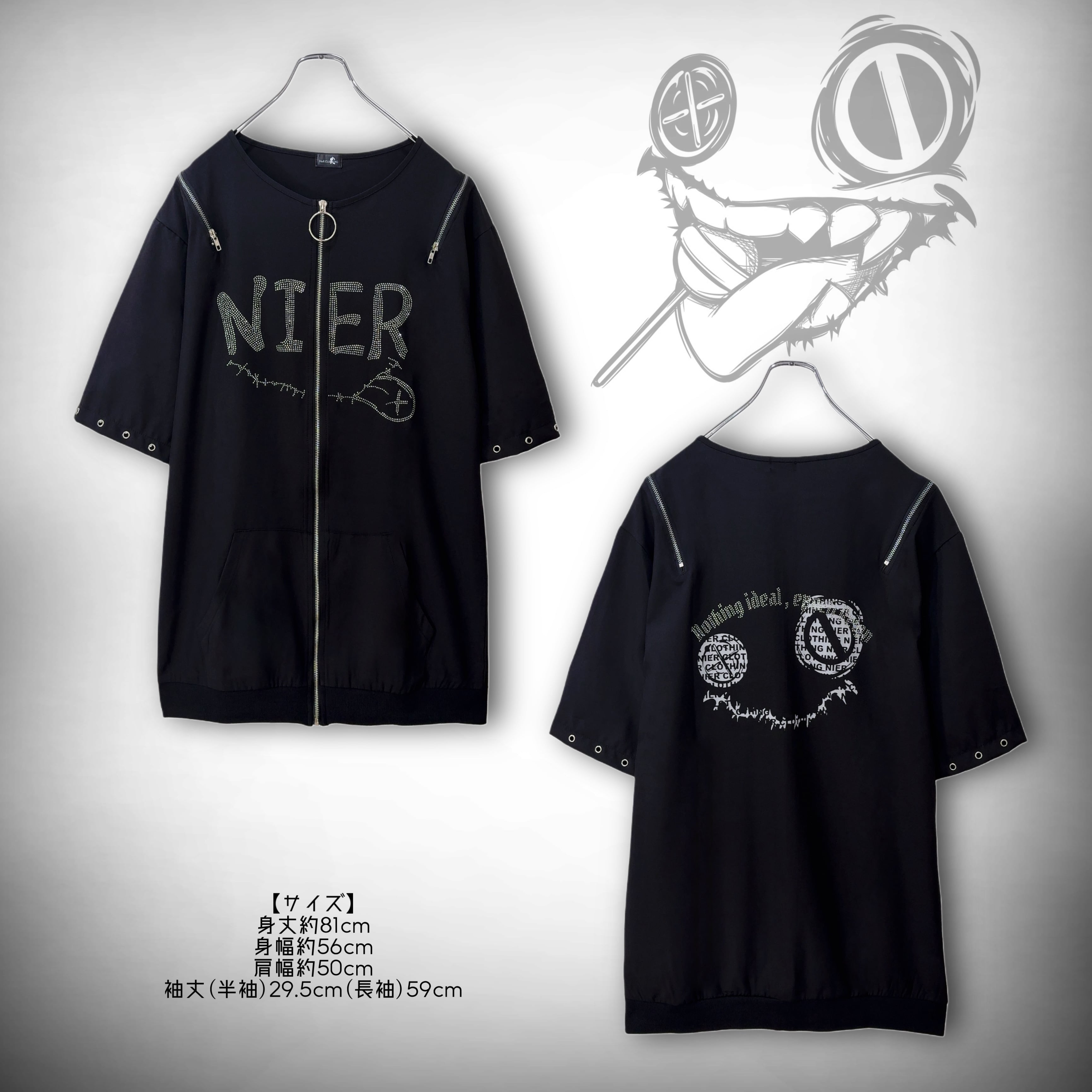 背面にはNIERオリジナルフェイスとストーンのロゴを配置し、