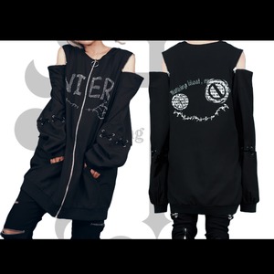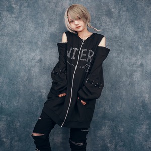袖の紐を外すことで半袖にもなる2WAY仕様に加え、肩部分のZIPを開閉することでシルエットチェンジが可能。