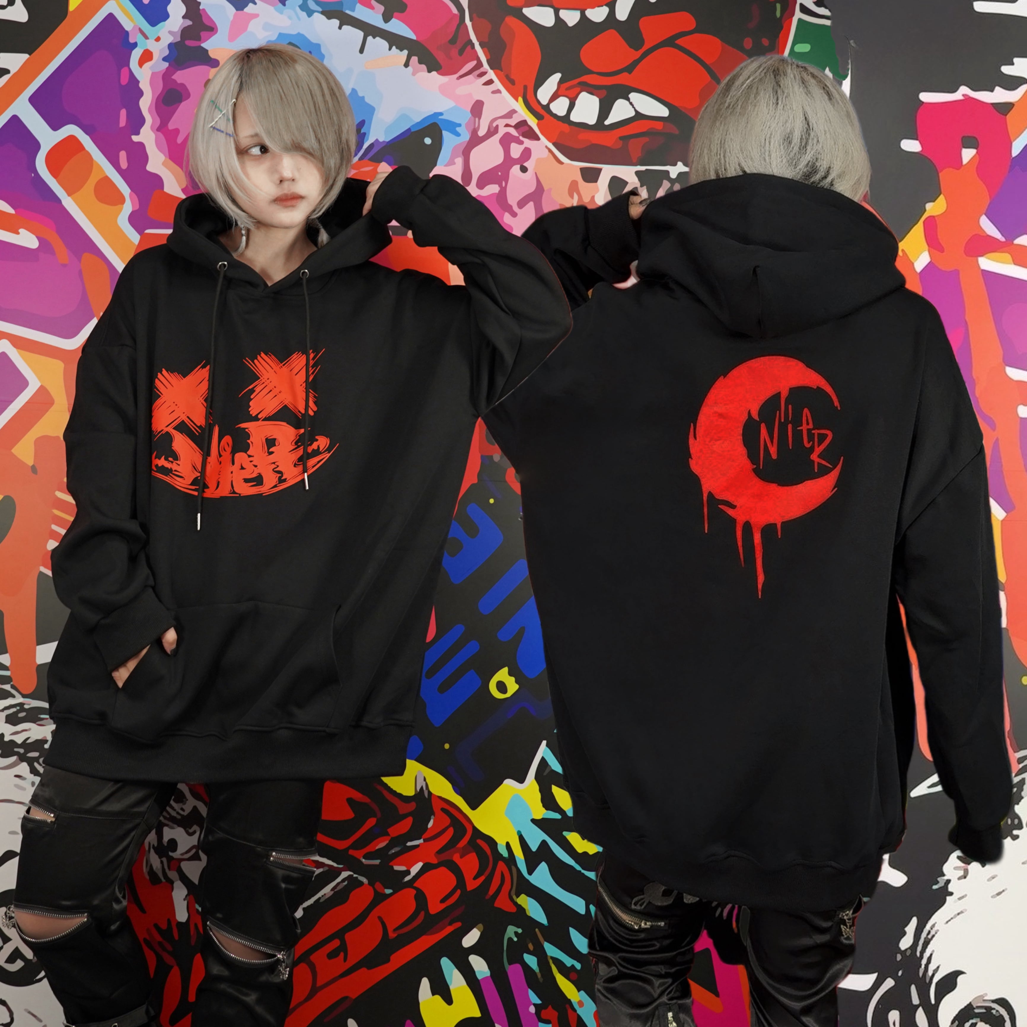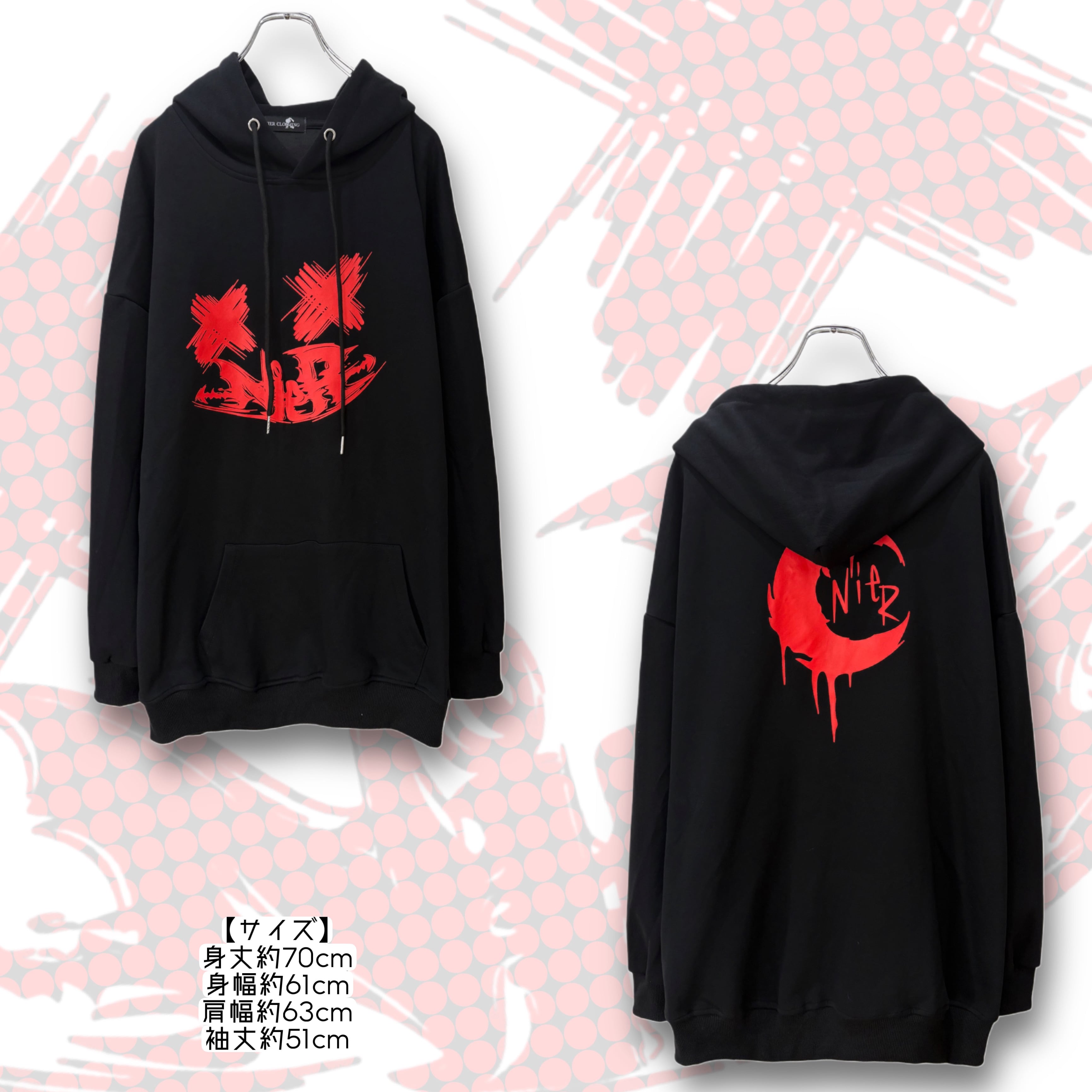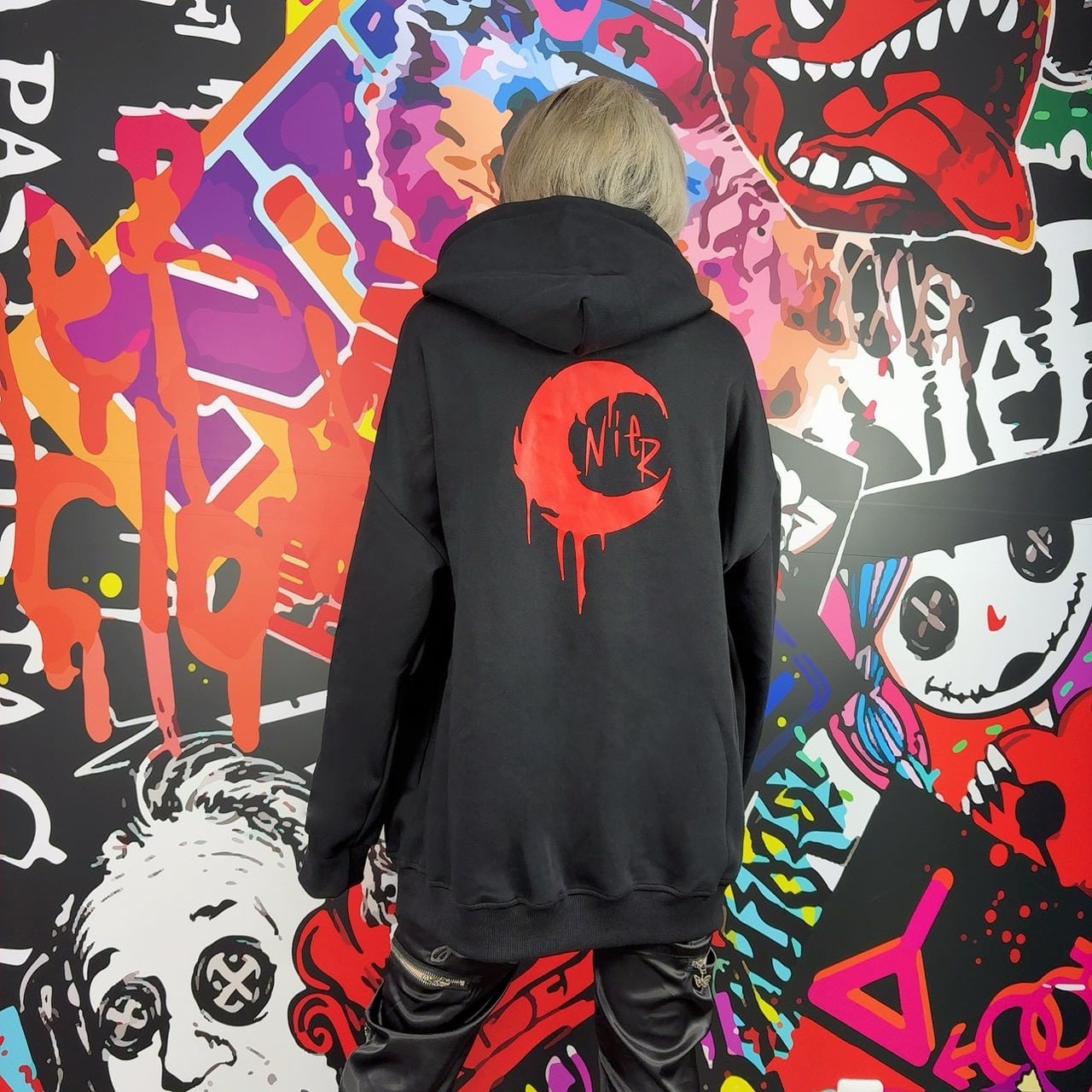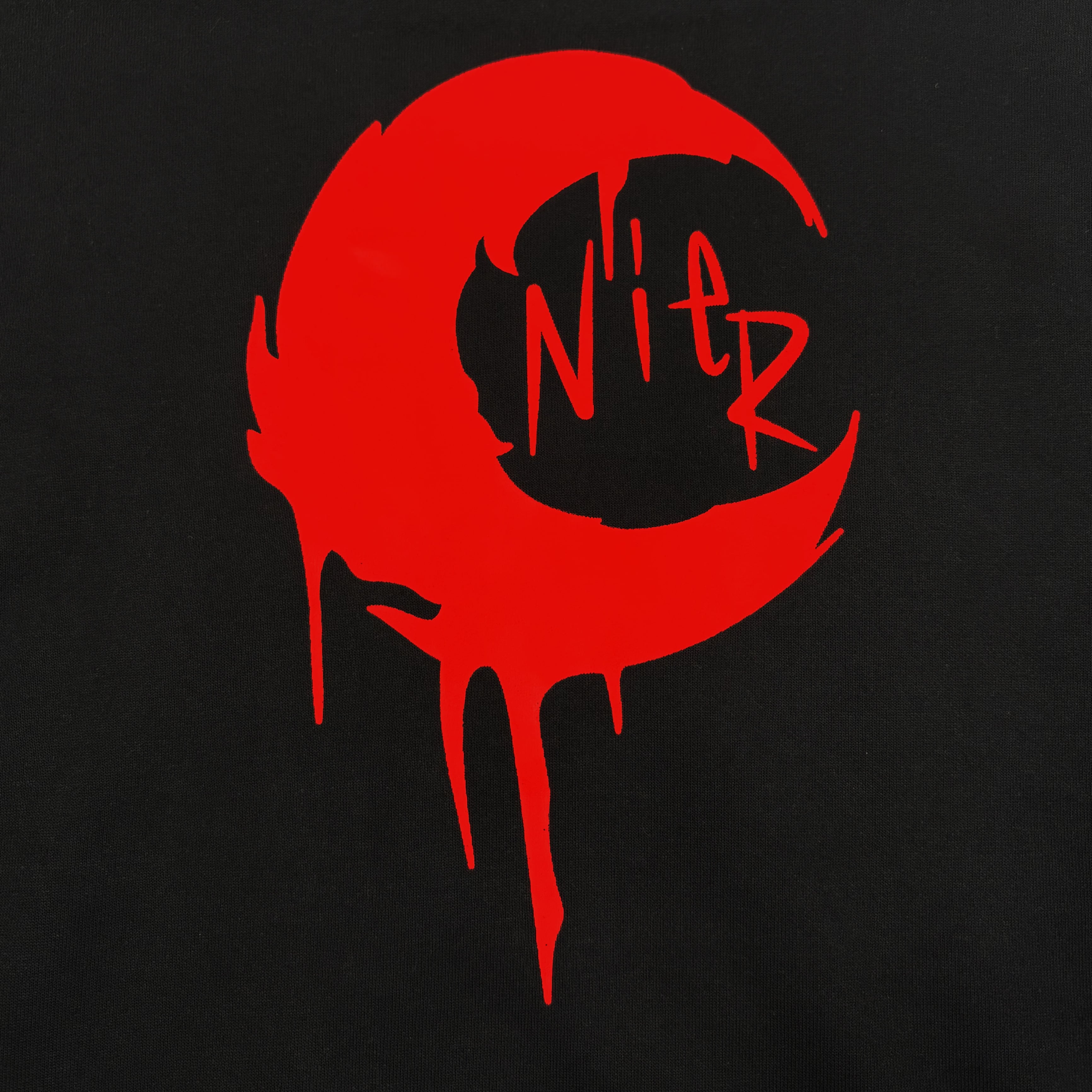 背面にはNIERの象徴的なドリップムーンロゴを大胆にプリント。