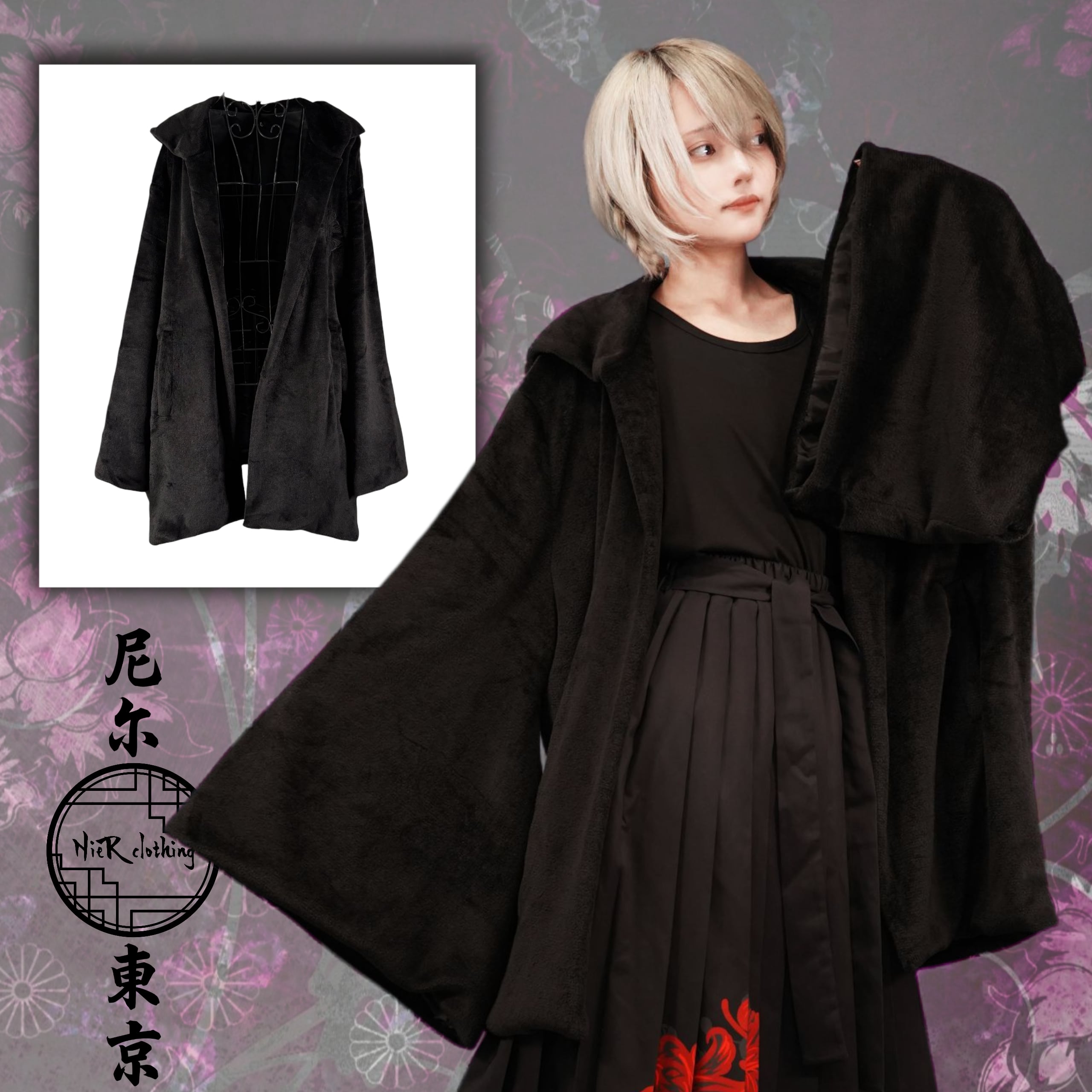 ふわふわとした極上の手触りと、ゆったりと広がる着物袖が優雅なシルエットを演出。