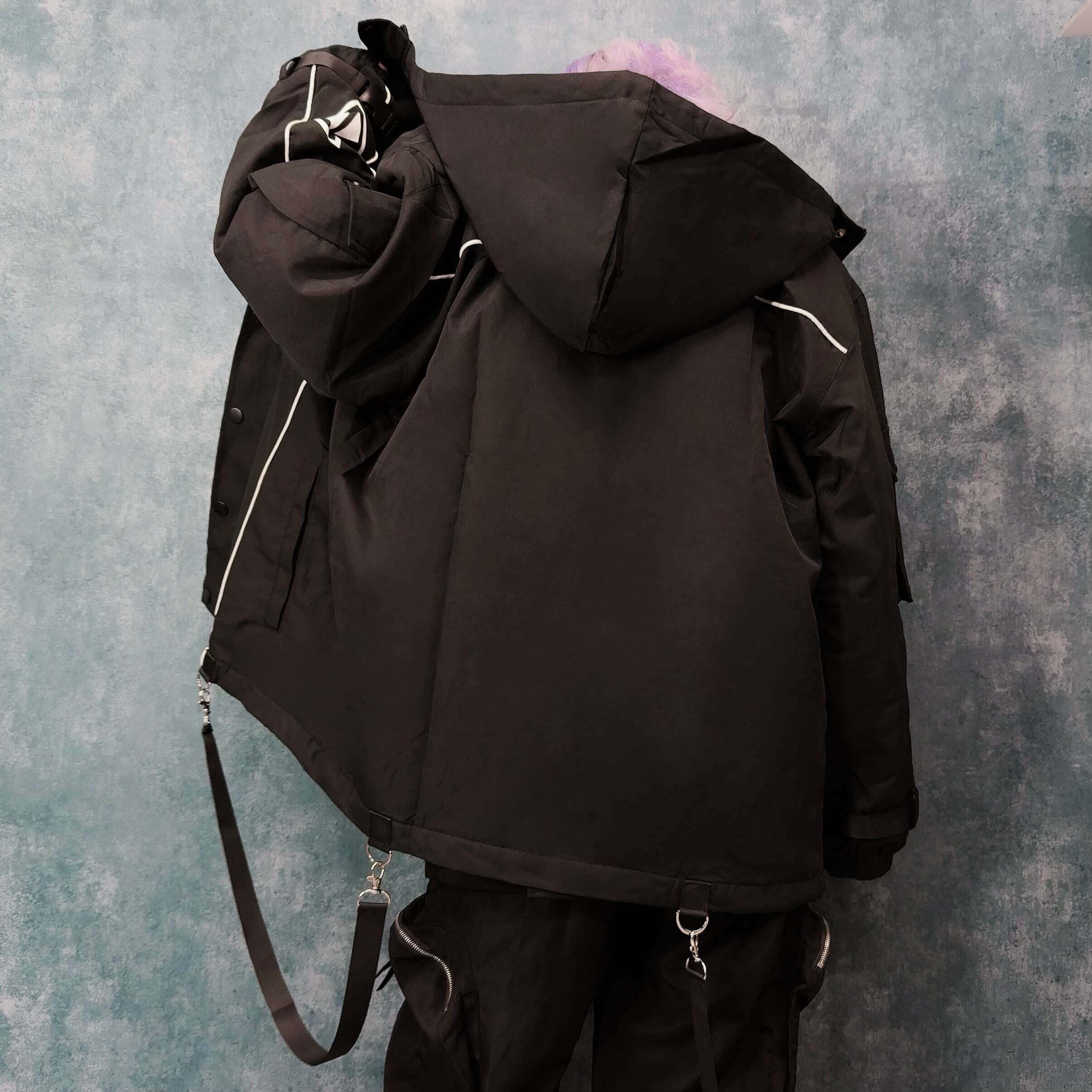 防寒中綿入りキルティングユニセックスコート【取り外し可能ハーネス付き】