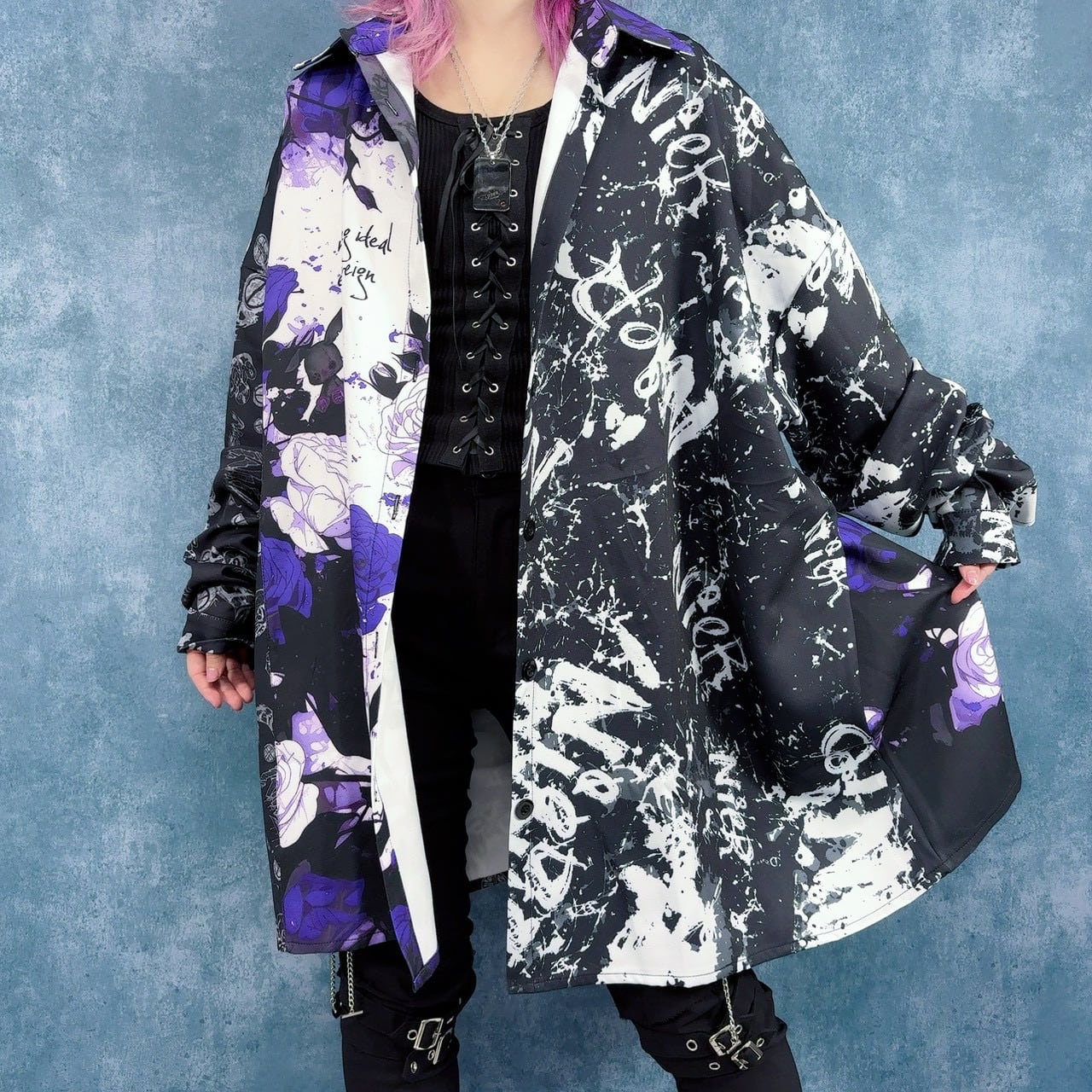 肩・身幅・着丈を大胆に取ったスーパーオーバーサイズ仕様。