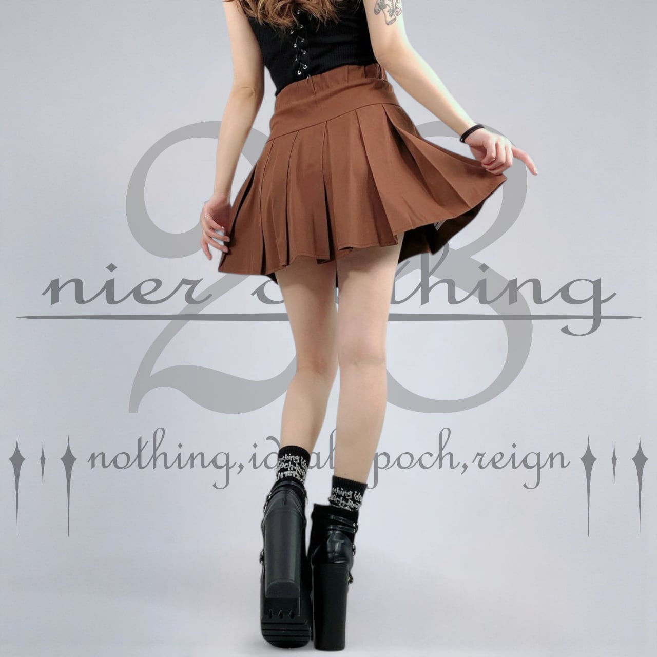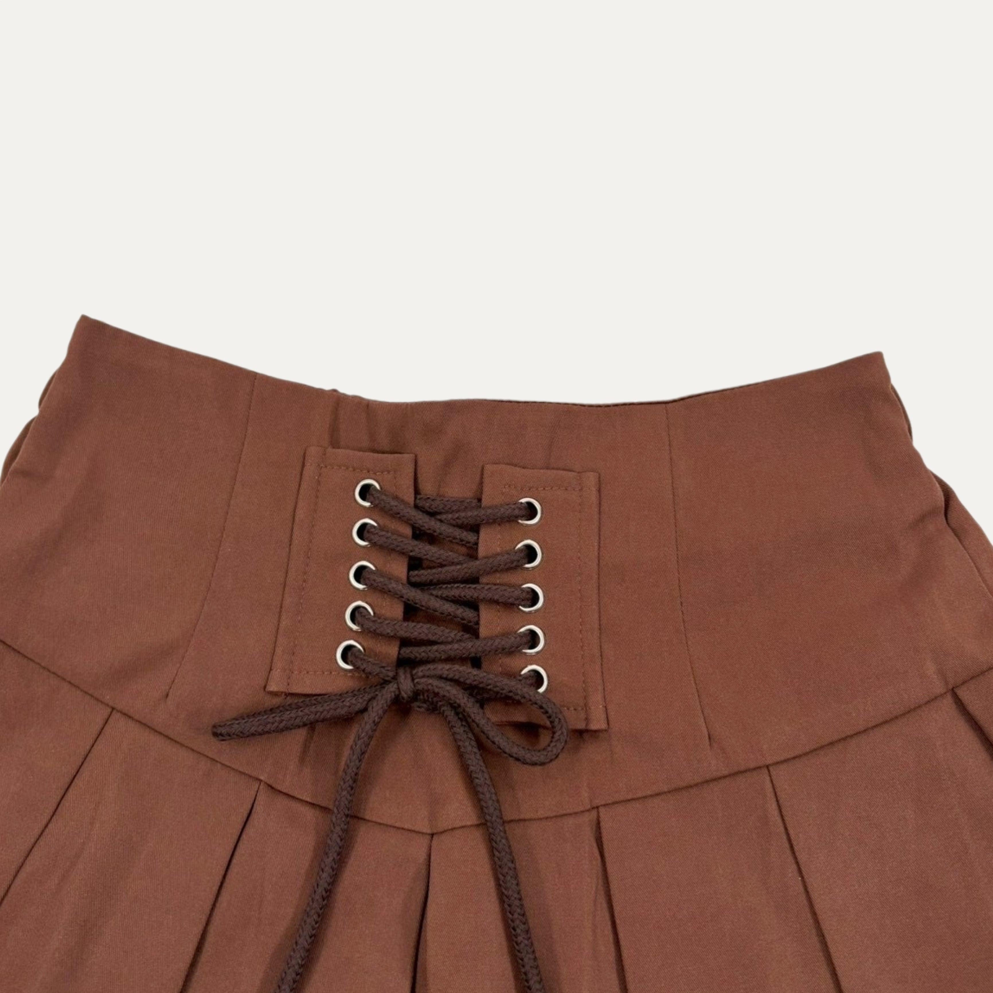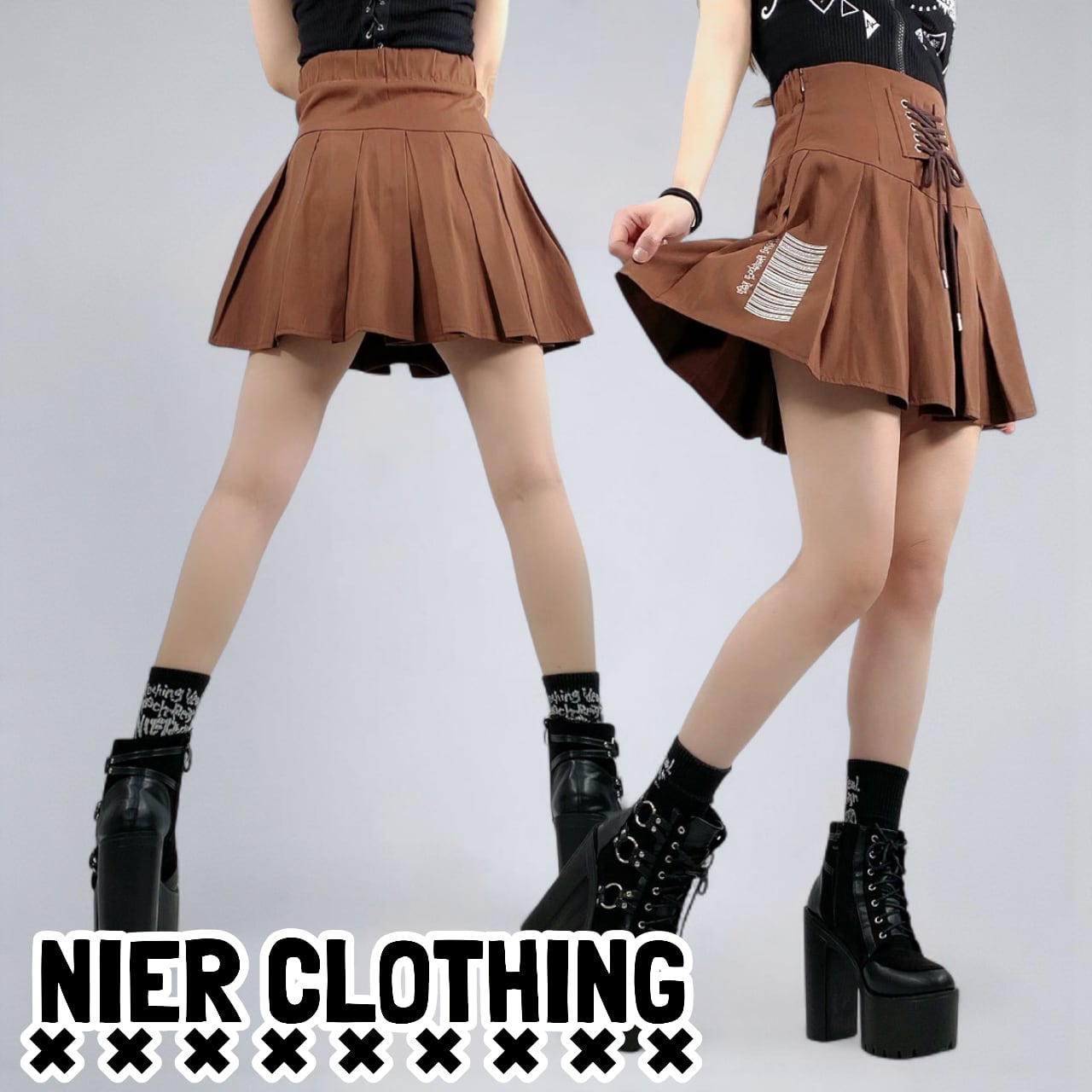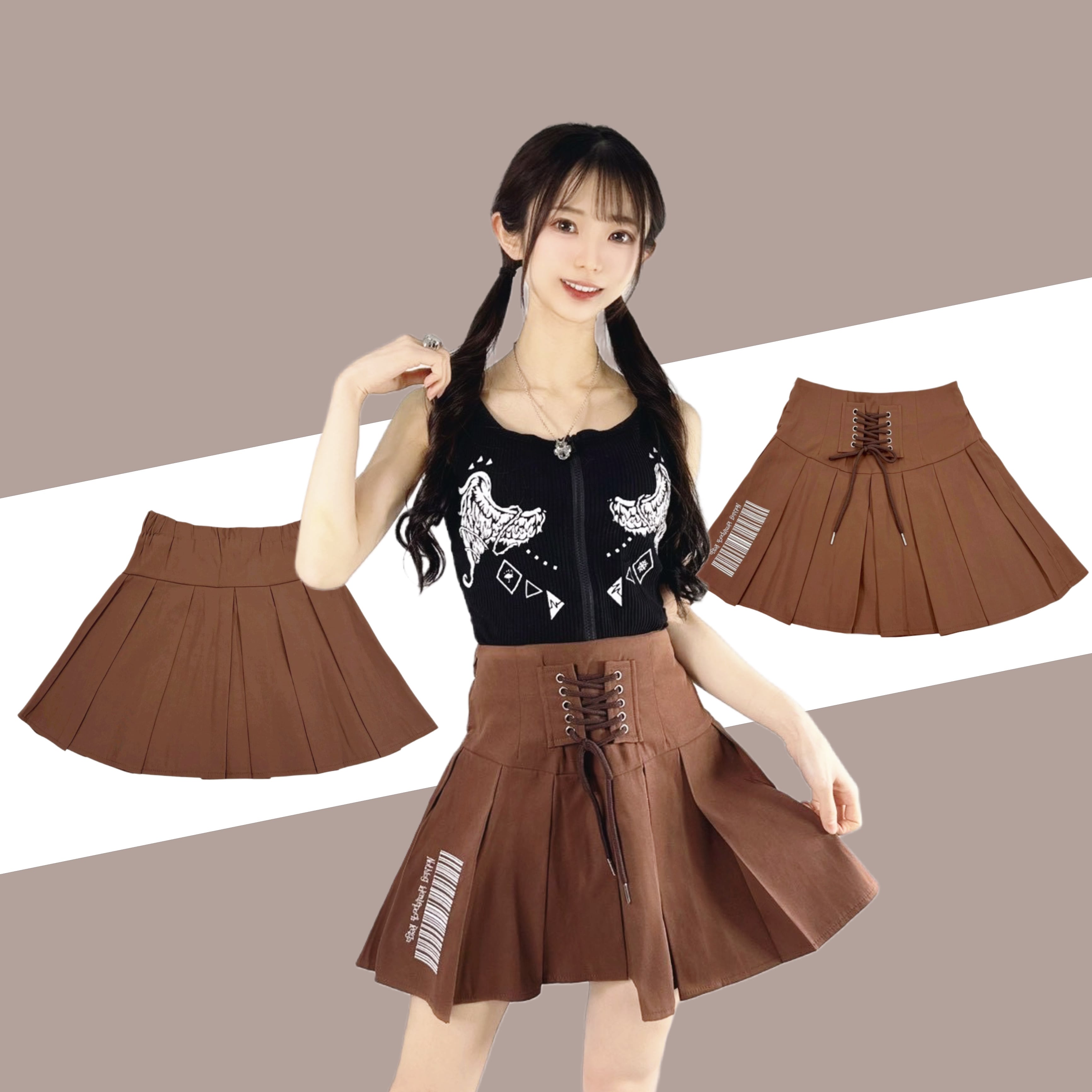《先着39点限定60%OFF》インパン付きレースアップブラウンプリーツスカート【CODE刺繍入り】