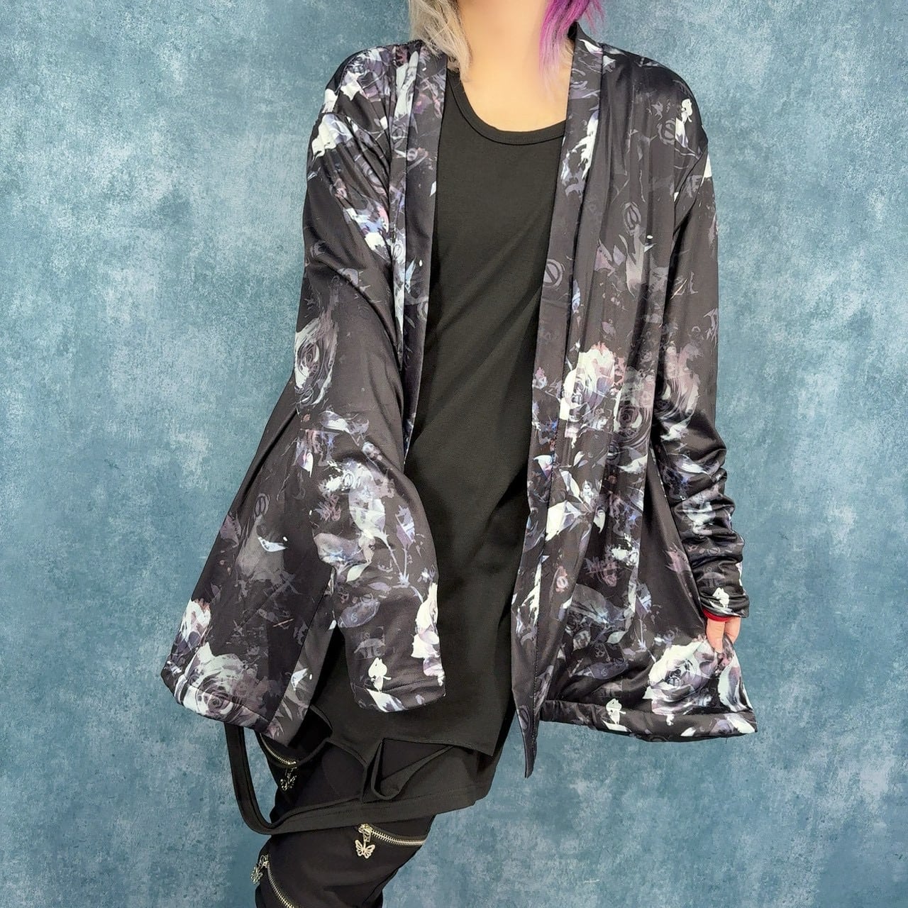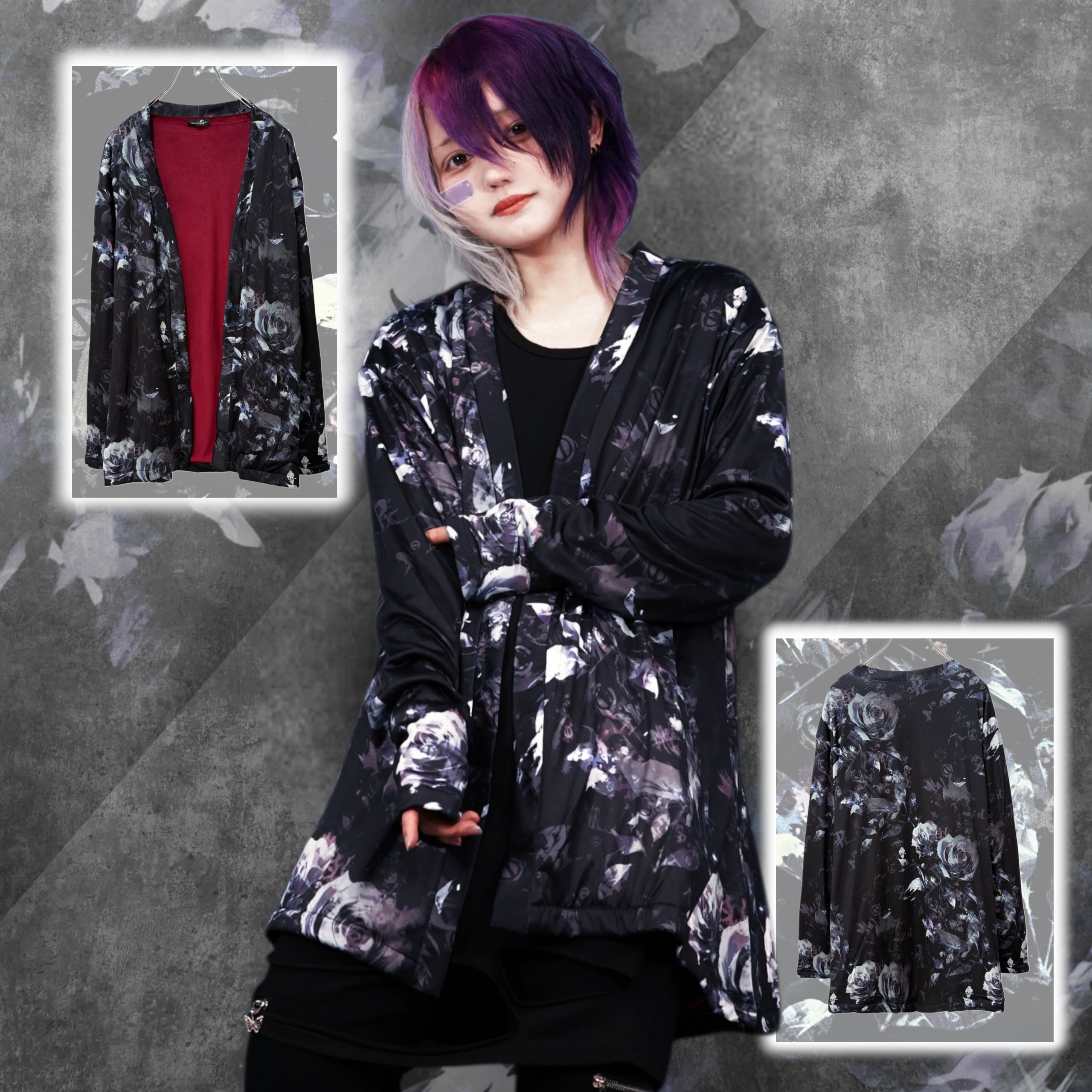 ダークで美しい薔薇柄が全面に施された、存在感抜群の裏起毛羽織が登場。