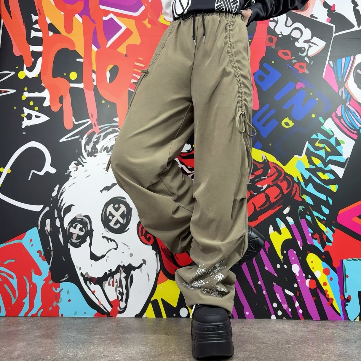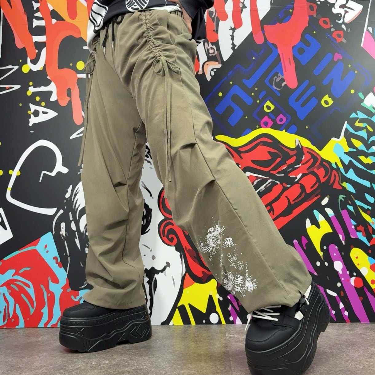 《先着55点限定特価‼️》裏起毛彼岸花アートプリントドロストパンツ