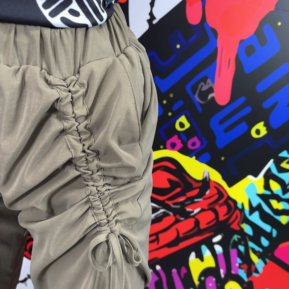 ウエストは総ゴム+紐で履き心地も調整もしやすく、ユニセックスで着用可能。