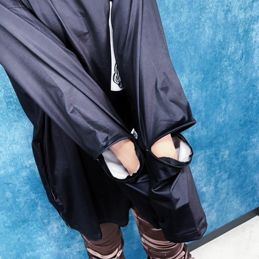 袖部分にはジッパーを搭載。開閉することで抜け感のあるシルエットに変化させられ、コーデの幅がさらに広がります。
