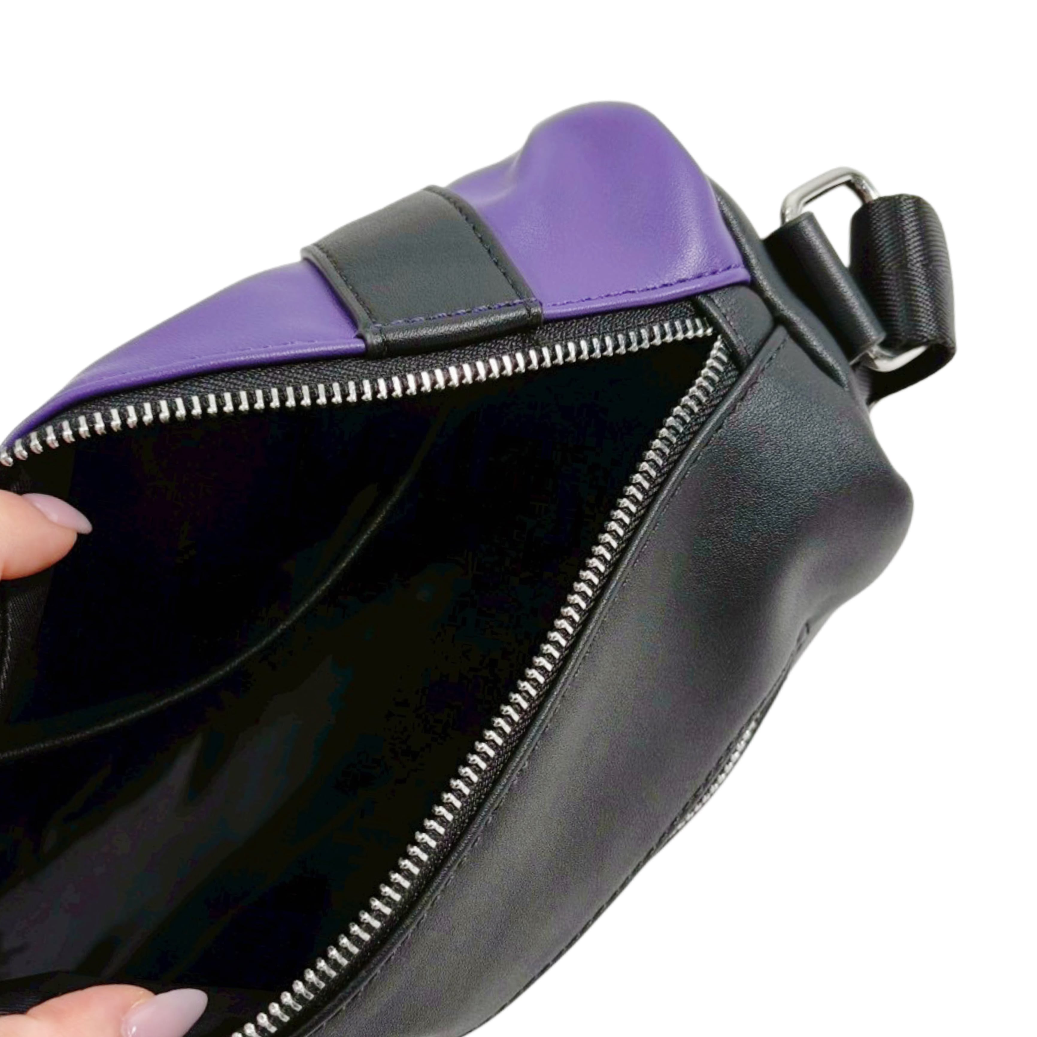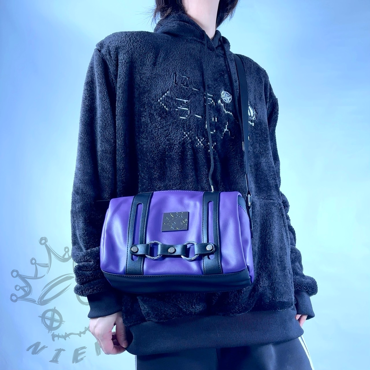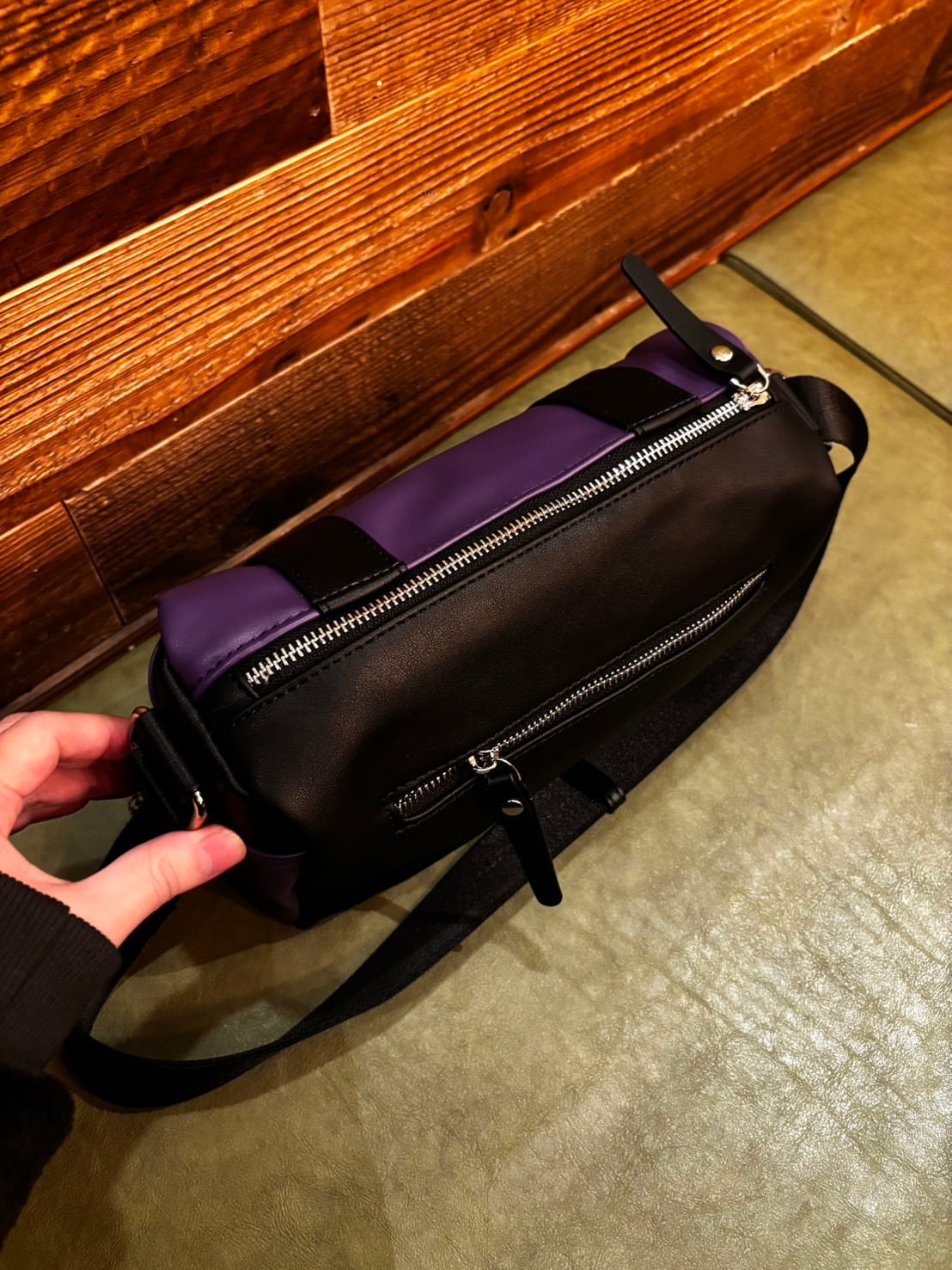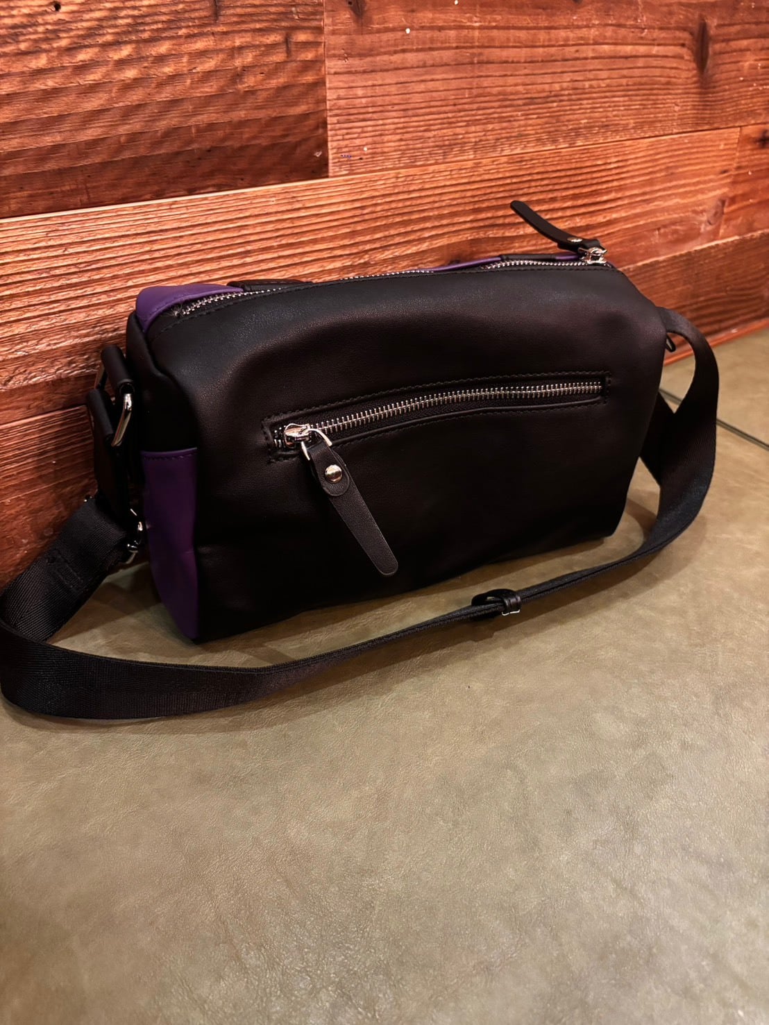 《新年お祝い55%OFFプレゼント》PURPLE×BLACK COMPACT SHOULDER BAG【メタルプレート付き】