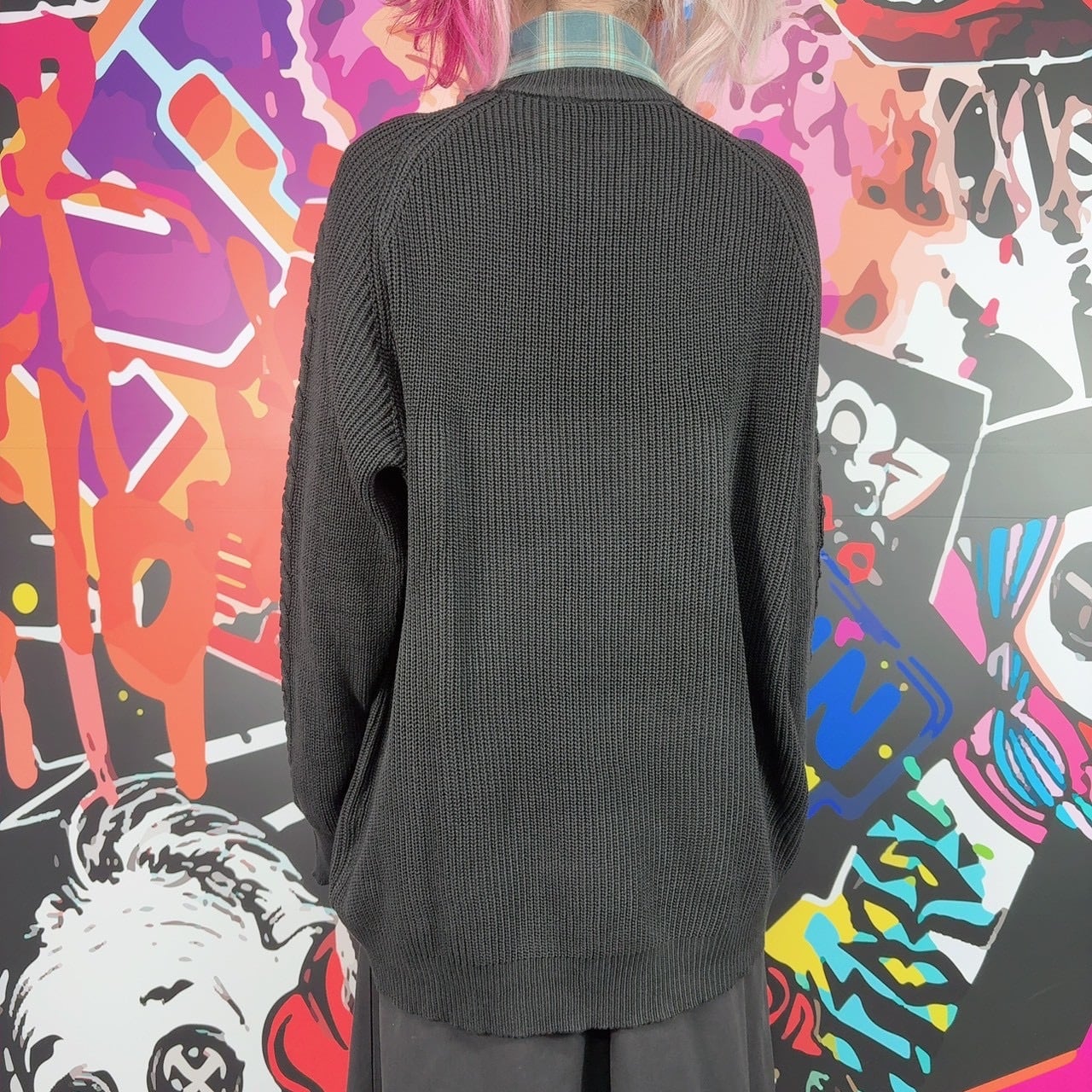 両袖とフロントに施されたケーブル編みが、上品ながらもユニセックスで着やすい雰囲気に。