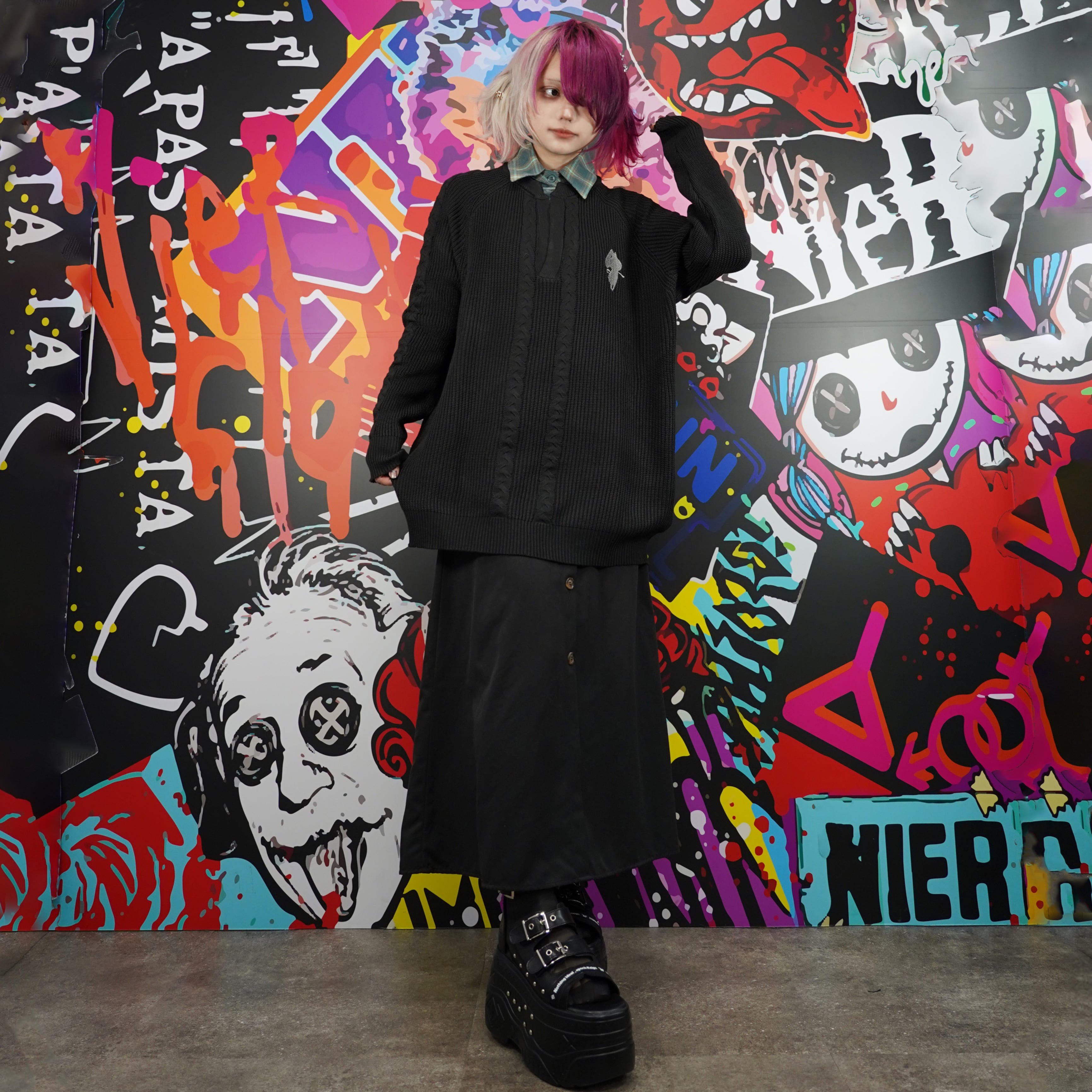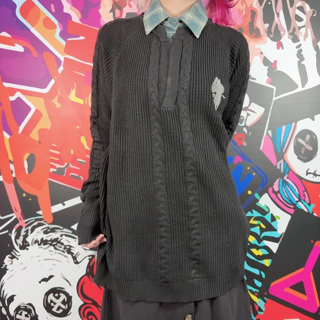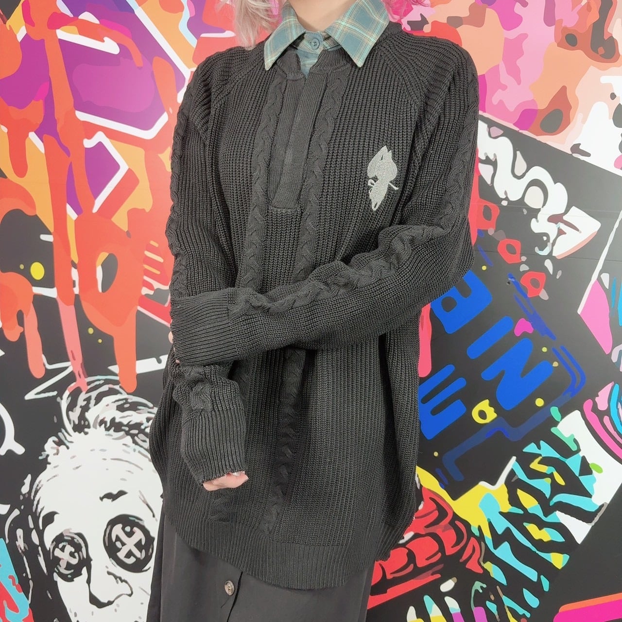 【先着50点限定プレゼントイベント】レイヤード風ケーブルニットトップス【BLACK】