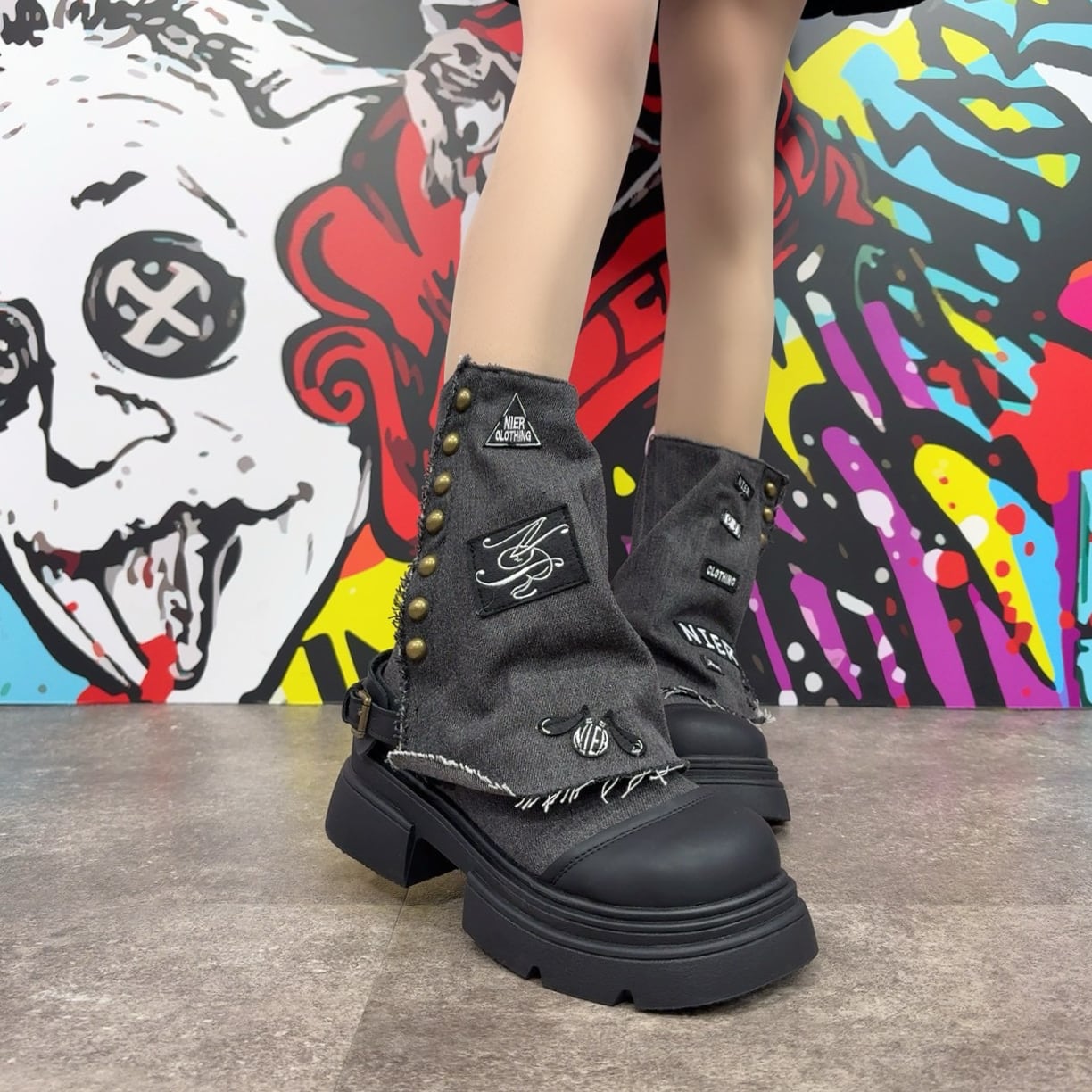 《月初限定SPECIAL SALE》VINTAGE PATCH PLATFORM BOOTS【BLACK】