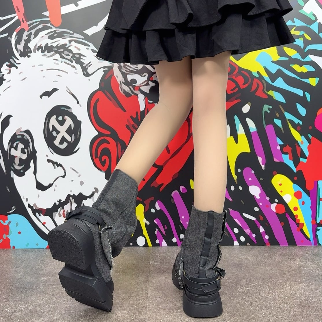 無骨さと可愛らしさを融合させた独創的なデザインが、足元から個性を引き立てます。