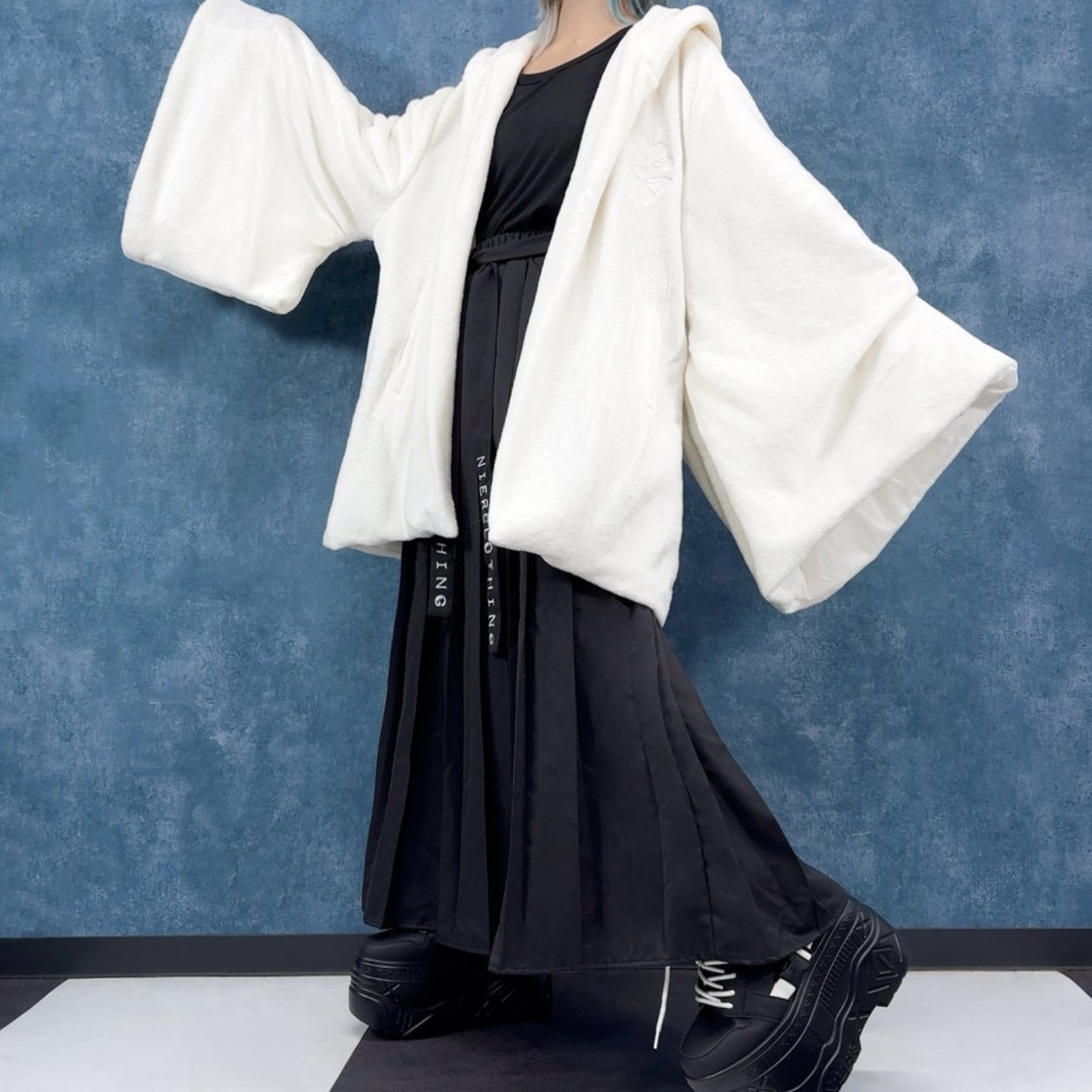 《11月17日目玉大特価》着物袖風ふわもこOUTER【WHITE】