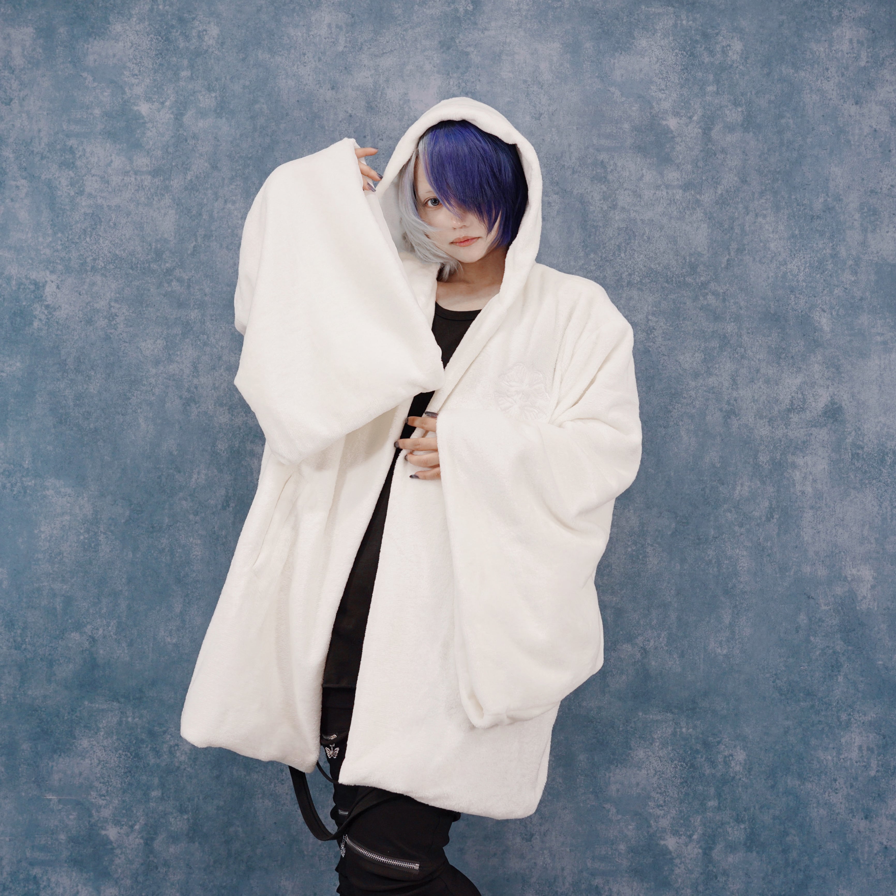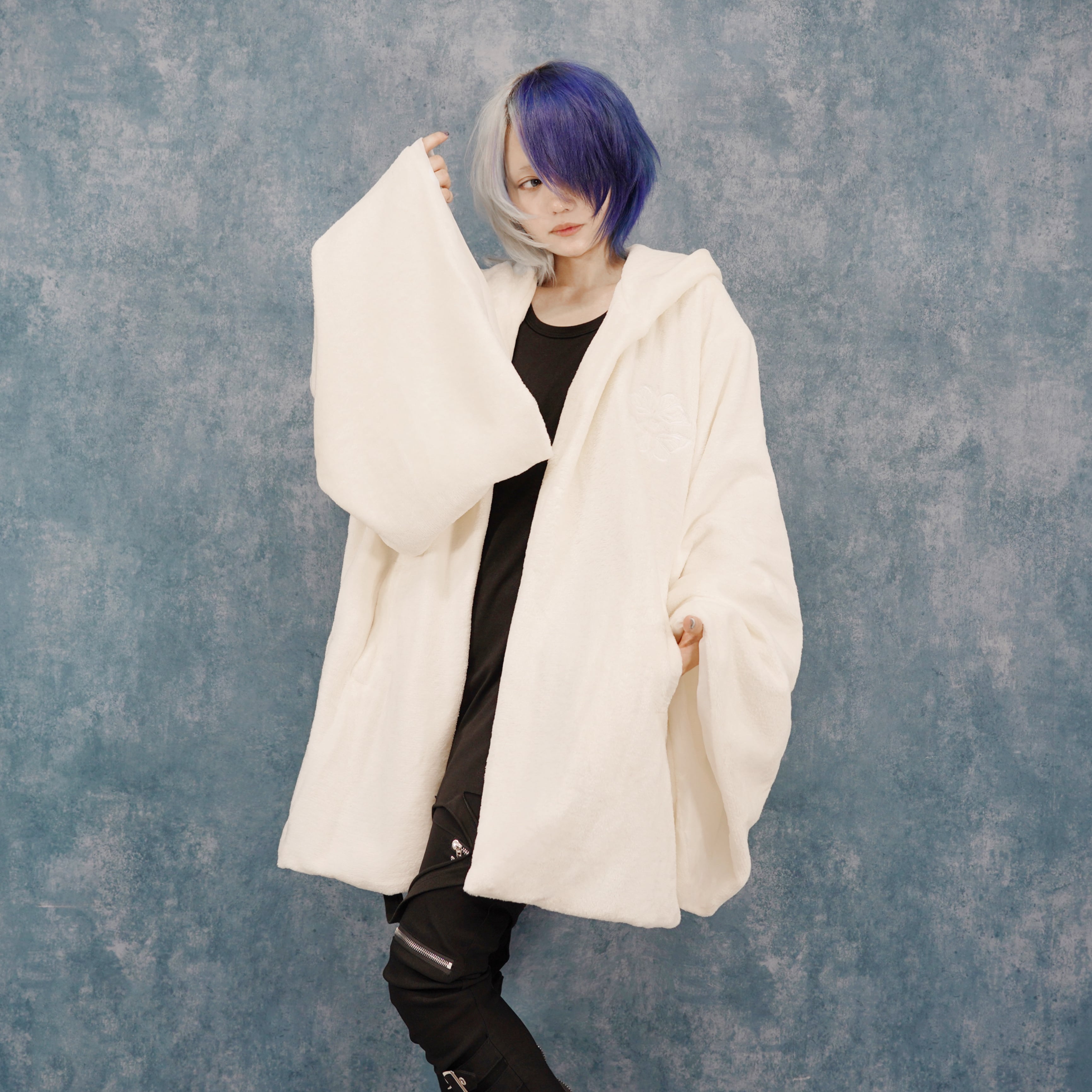 ふわふわとした極上の手触りと、ゆったりと広がる着物袖が優雅なシルエットを演出。