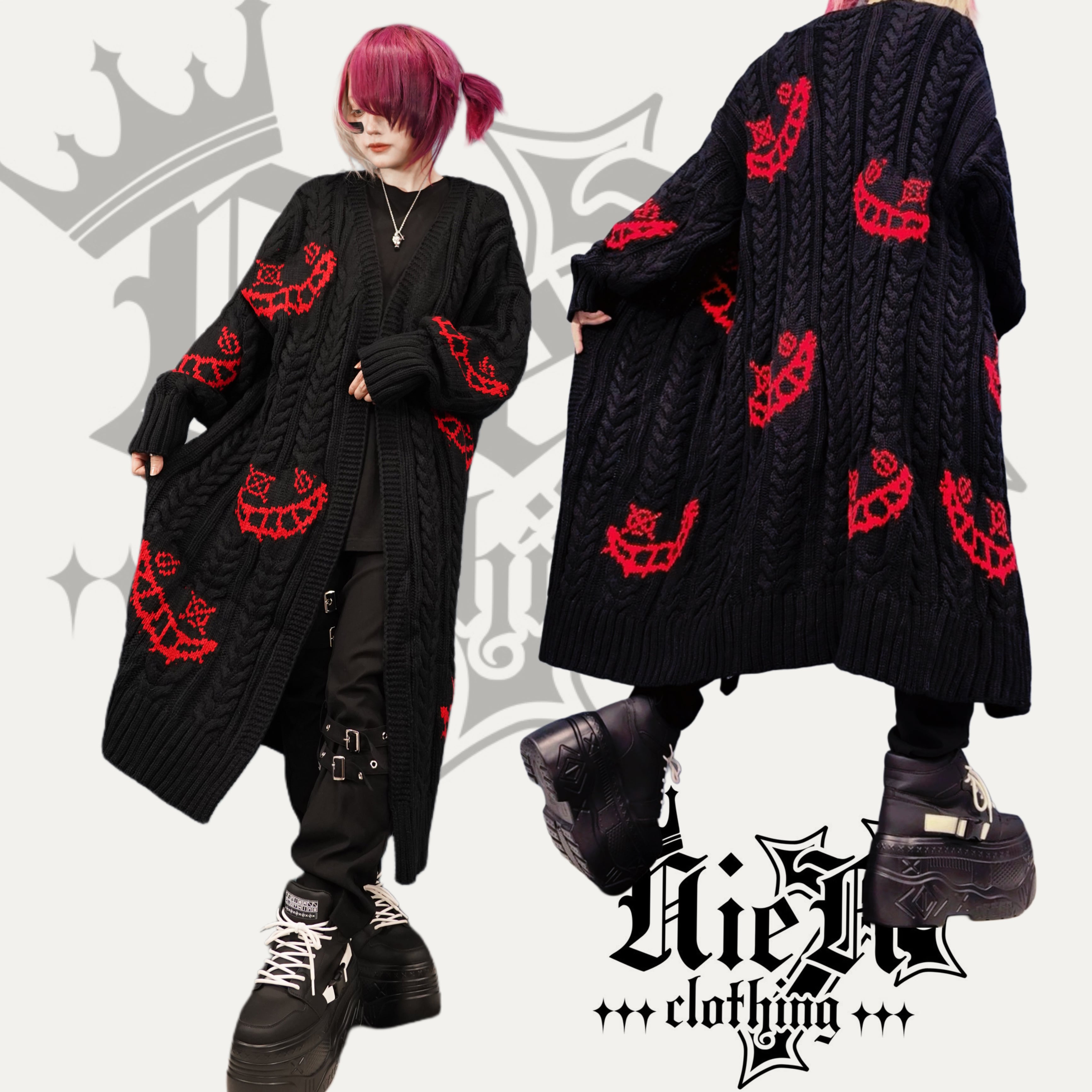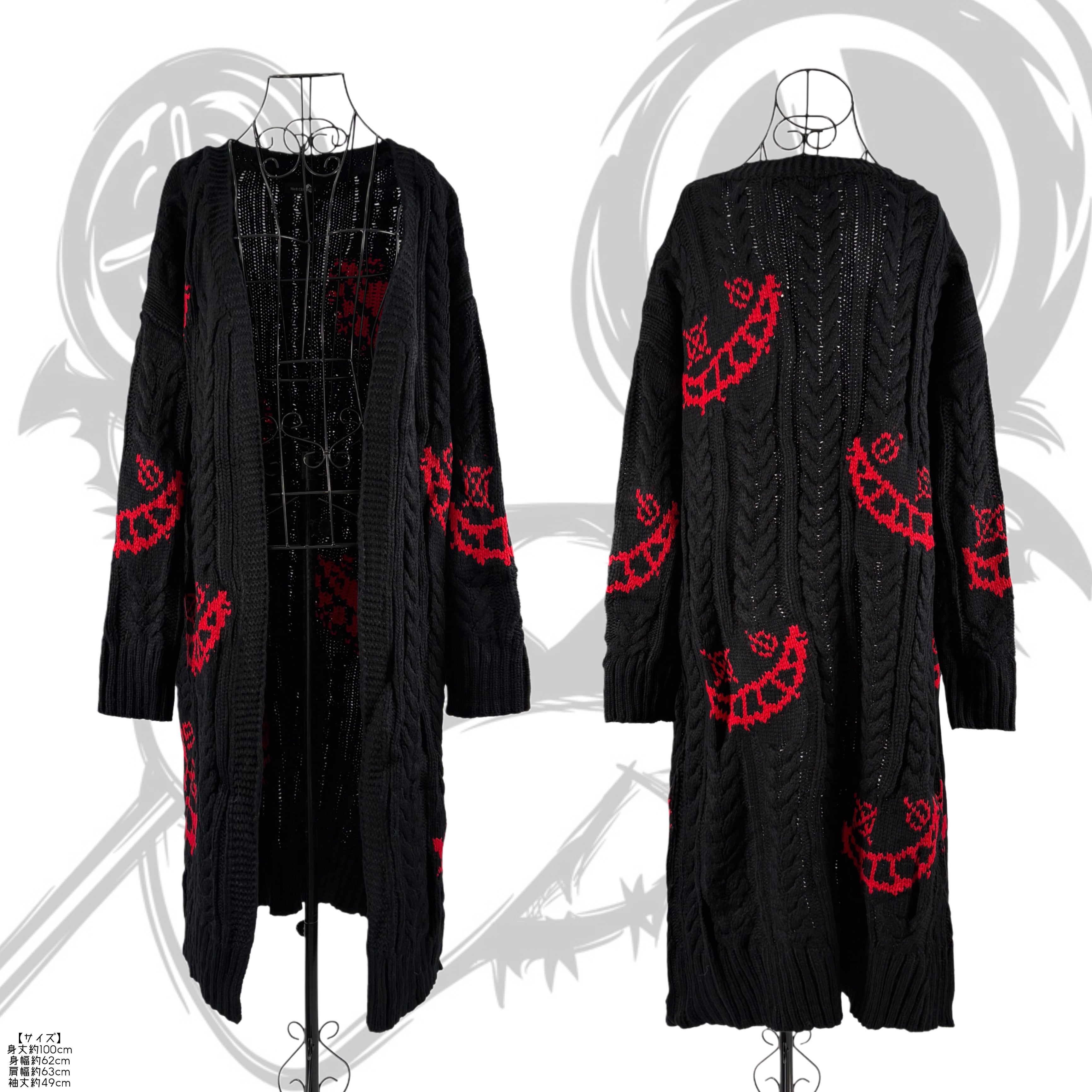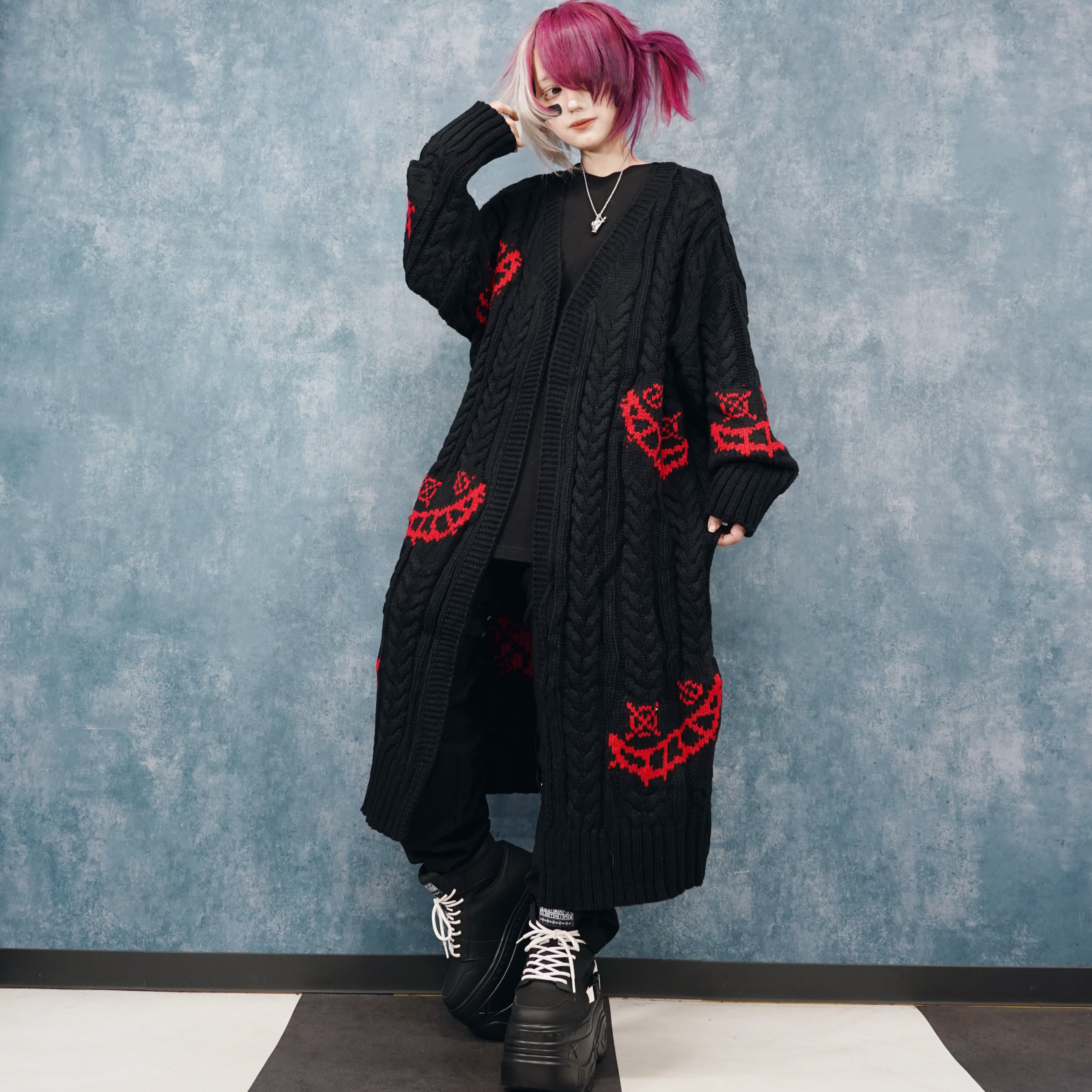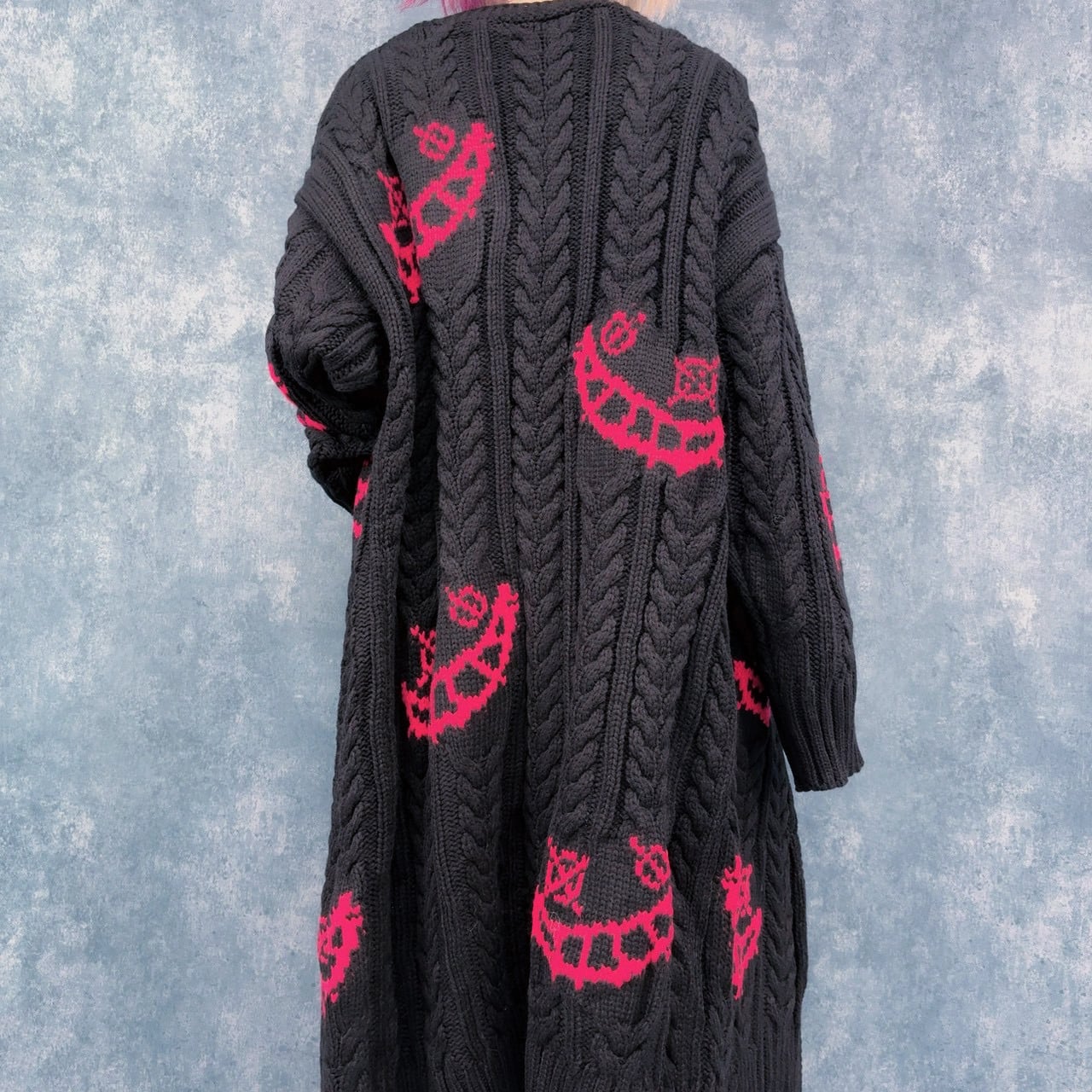 《12/7日目玉大特価55%OFF》超ロング編み込みニットカーディガン【RED SMILE】