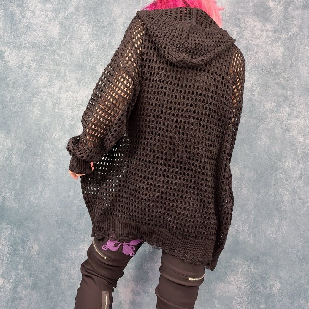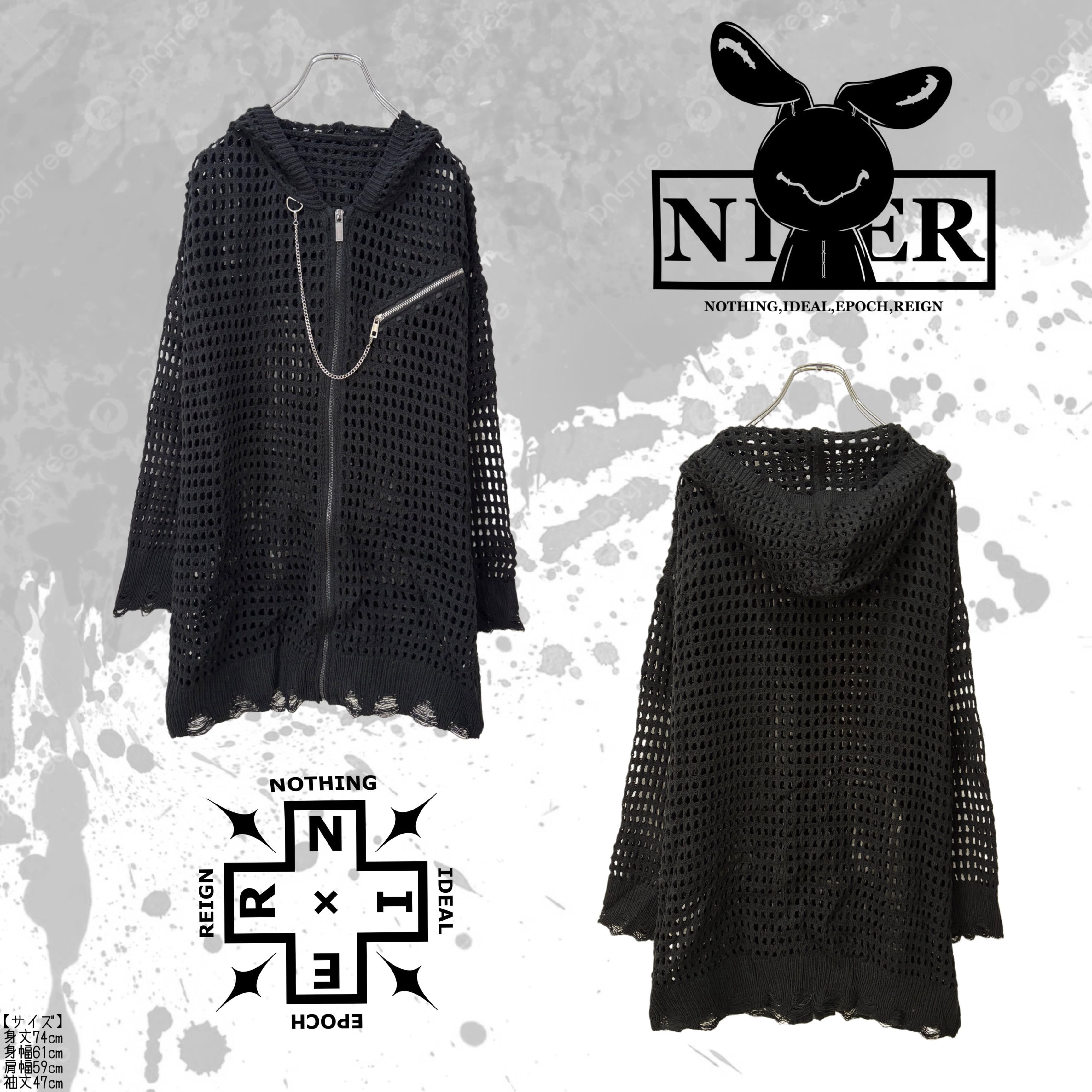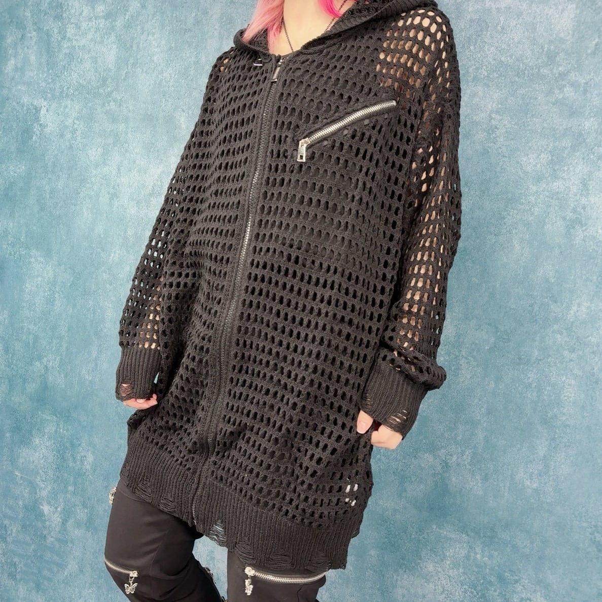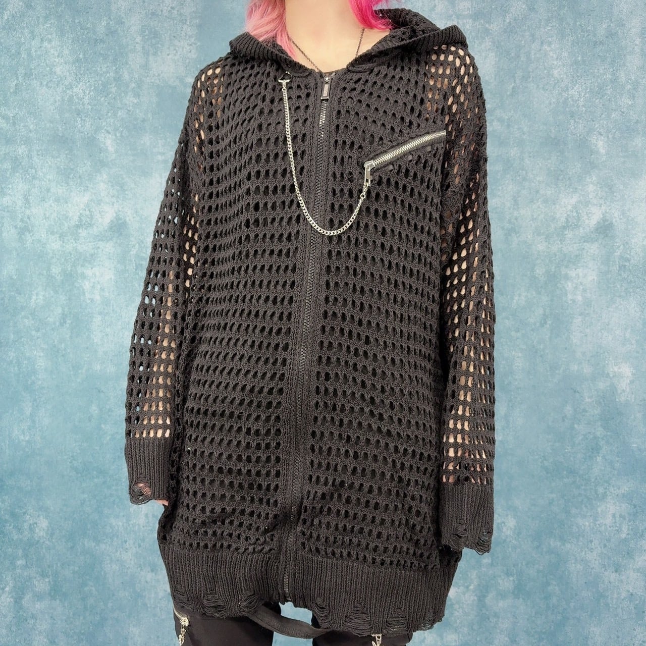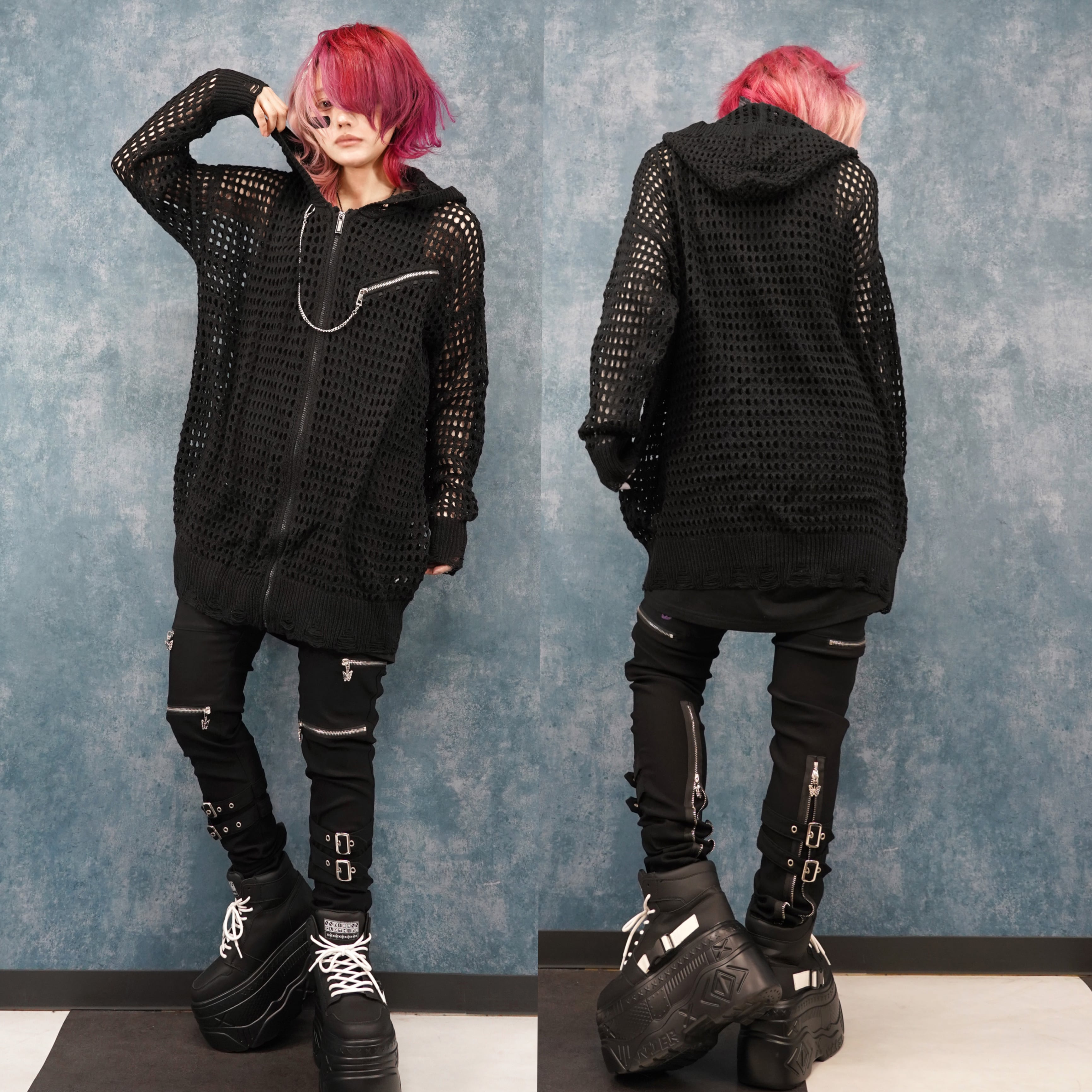 【5時間タイムセール】BLACK DAMAGE MESH VISUAL ZIP OUTER【取り外し可能チェーン付き】