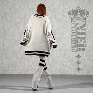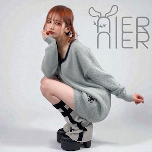 ・OVERSIZE GRAY KNIT CARDIGAN【刺繍×飾りボタン付き】