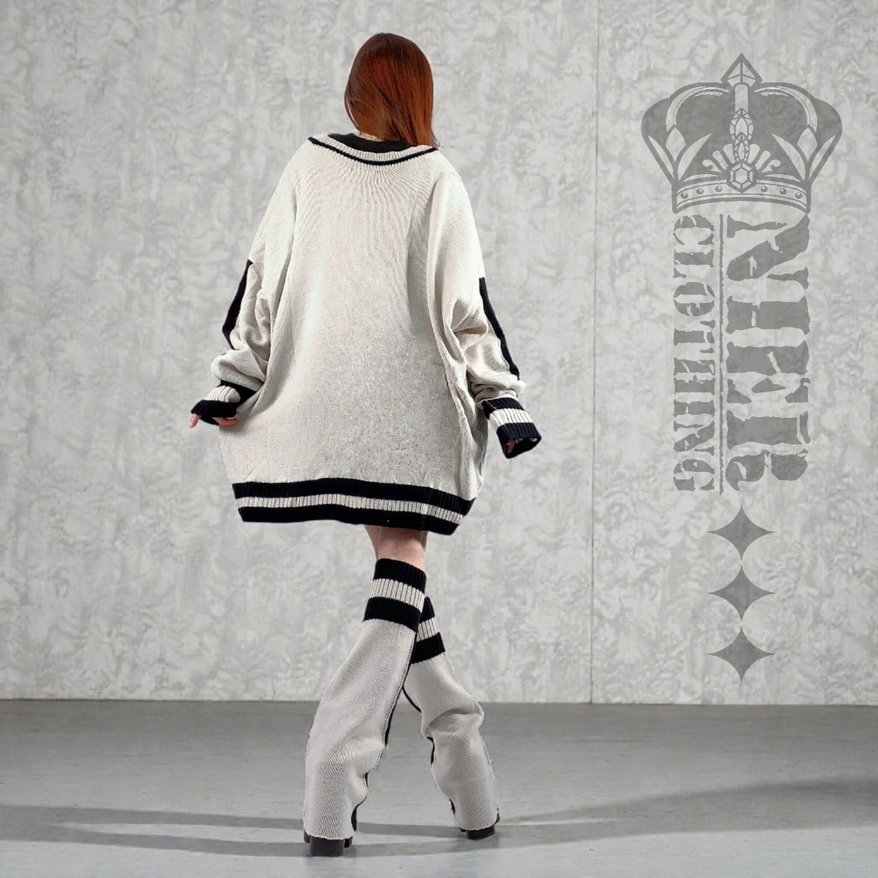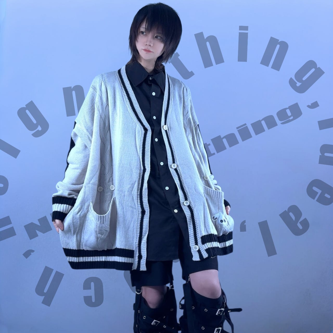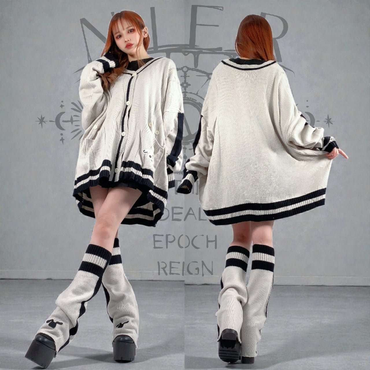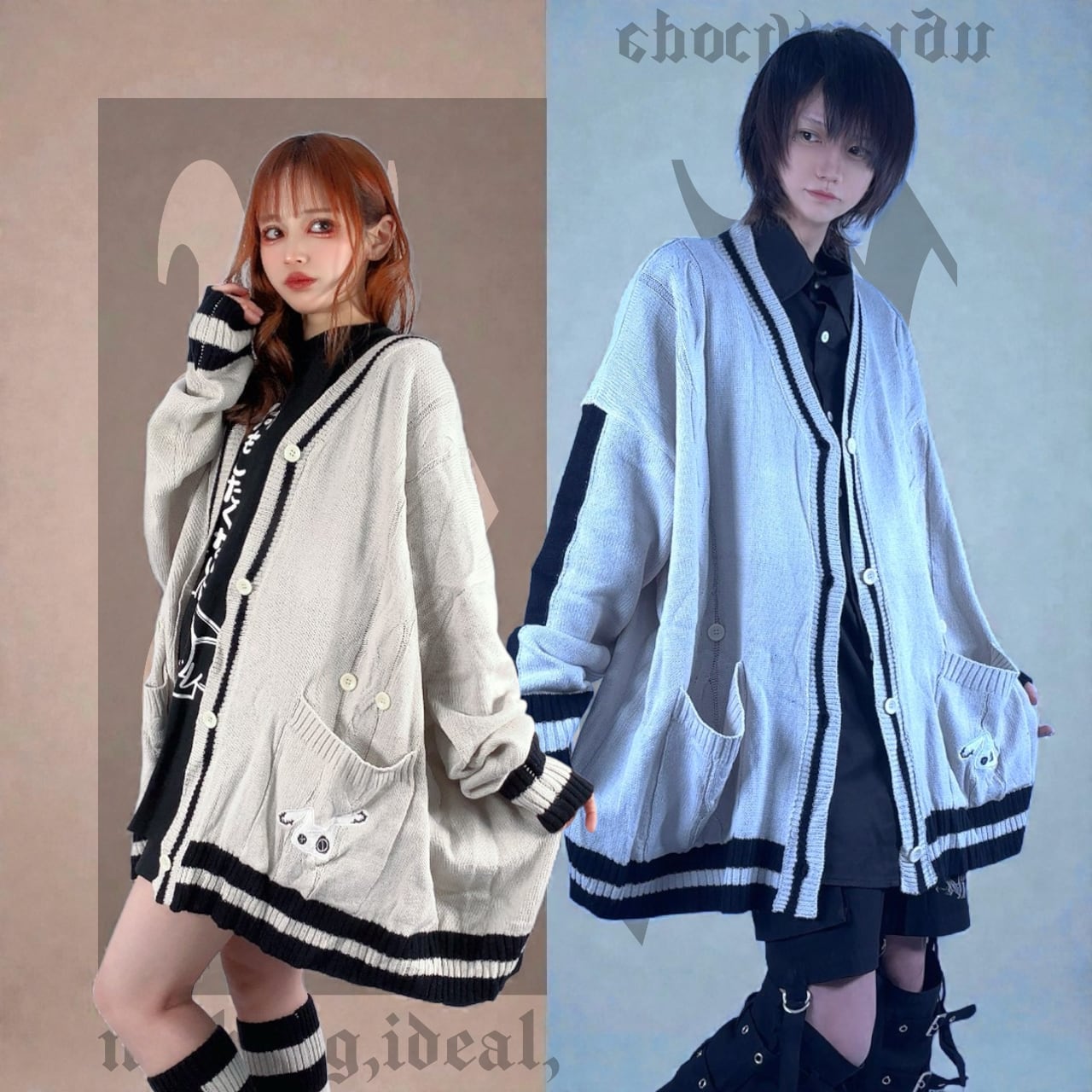 【年の瀬5時間タイムセール】OVERSIZE GRAY KNIT CARDIGAN【刺繍×飾りボタン付き】