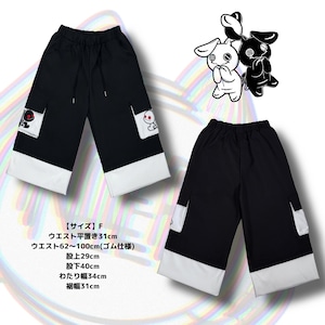 ウエストは総ゴム仕様で快適に着用でき、ユニセックスで楽しめるサイズ感に仕上げています。