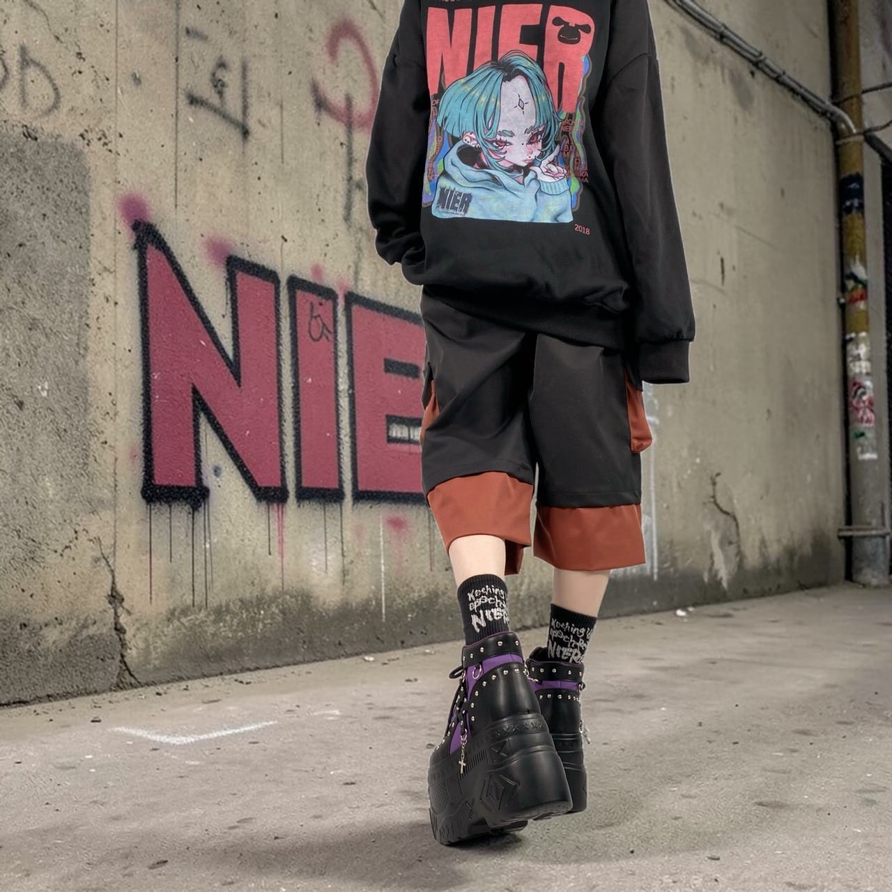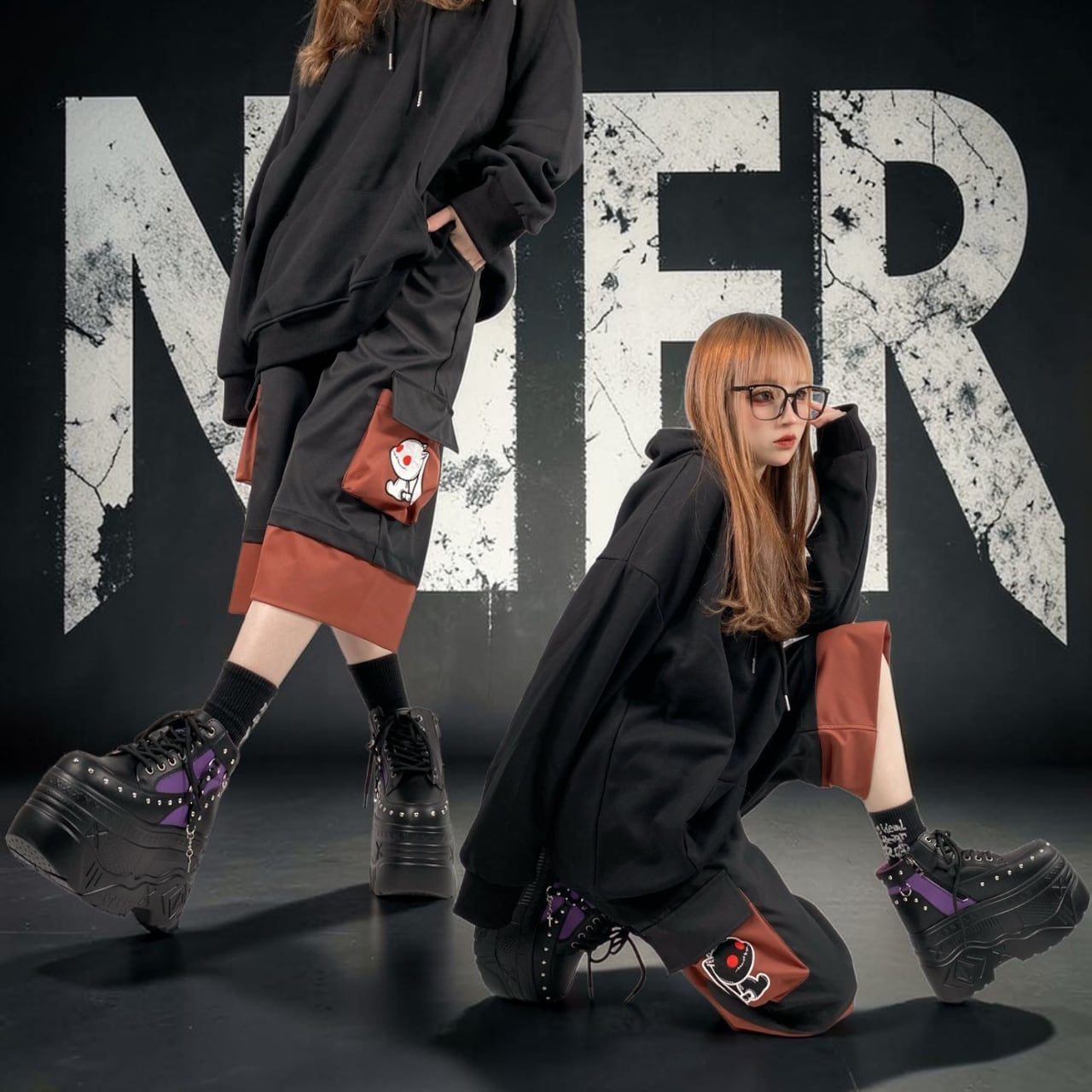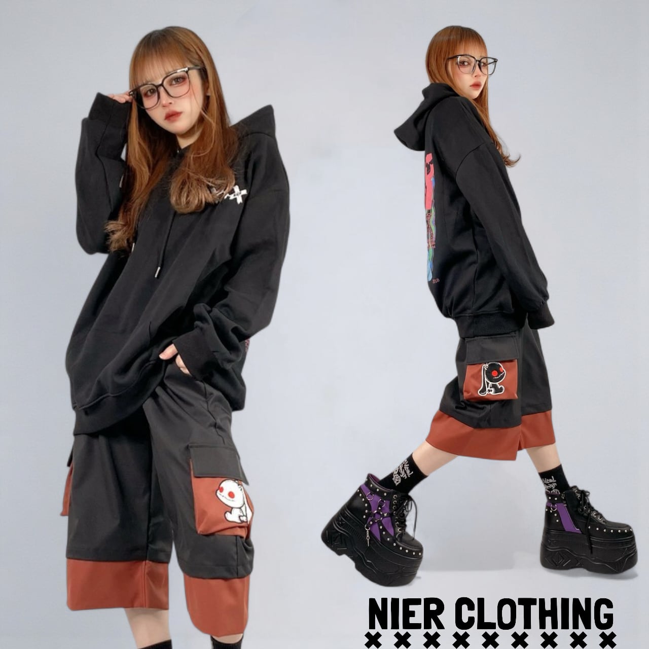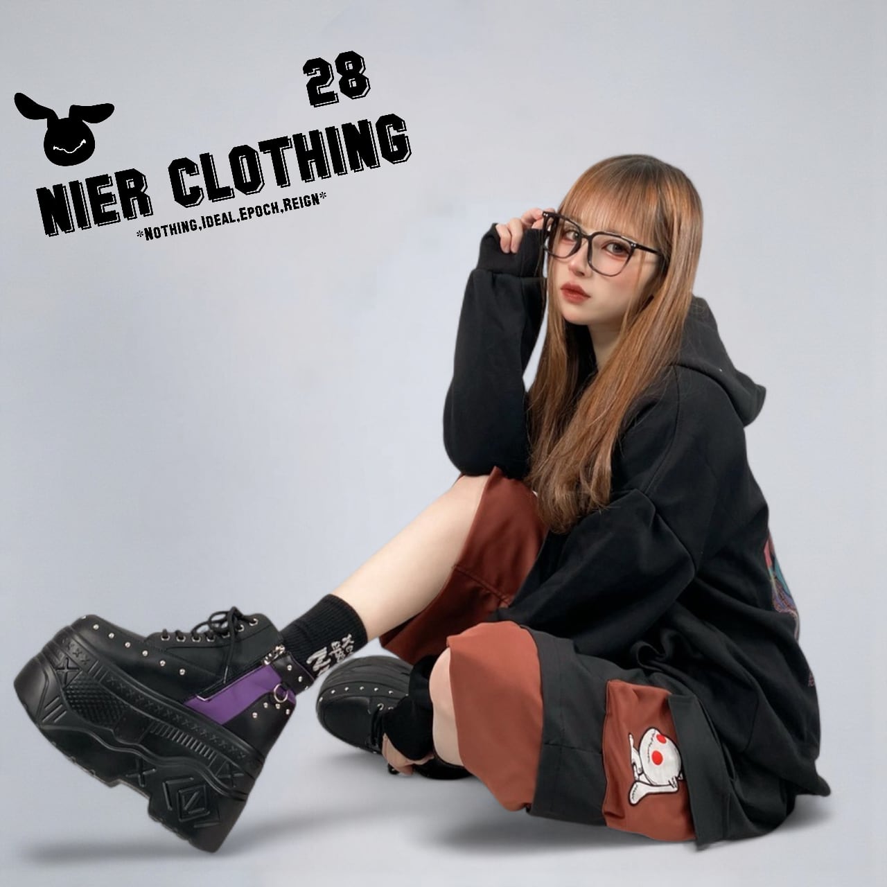 NIERちゃんのキュートでちょっぴりダークなワンポイントイラストが施され、シンプルなシルエットの中にブランドらしい遊び心がしっかり息づいています。