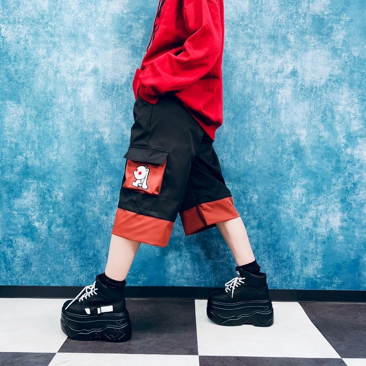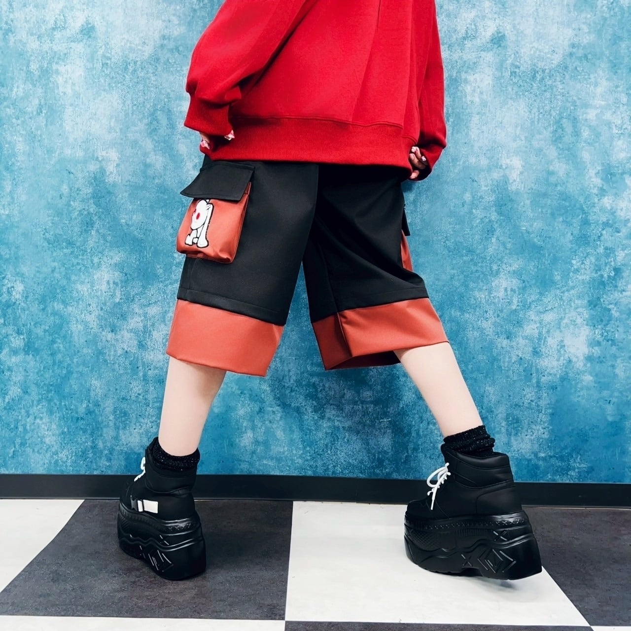 《夏先取り大特価66%OFF》NIER BICOLOR CARGO HALF PANTS【RED×BLACK】