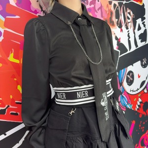 【本販売前シークレット特価】クロップド丈BLACKプルオーバーシャツ