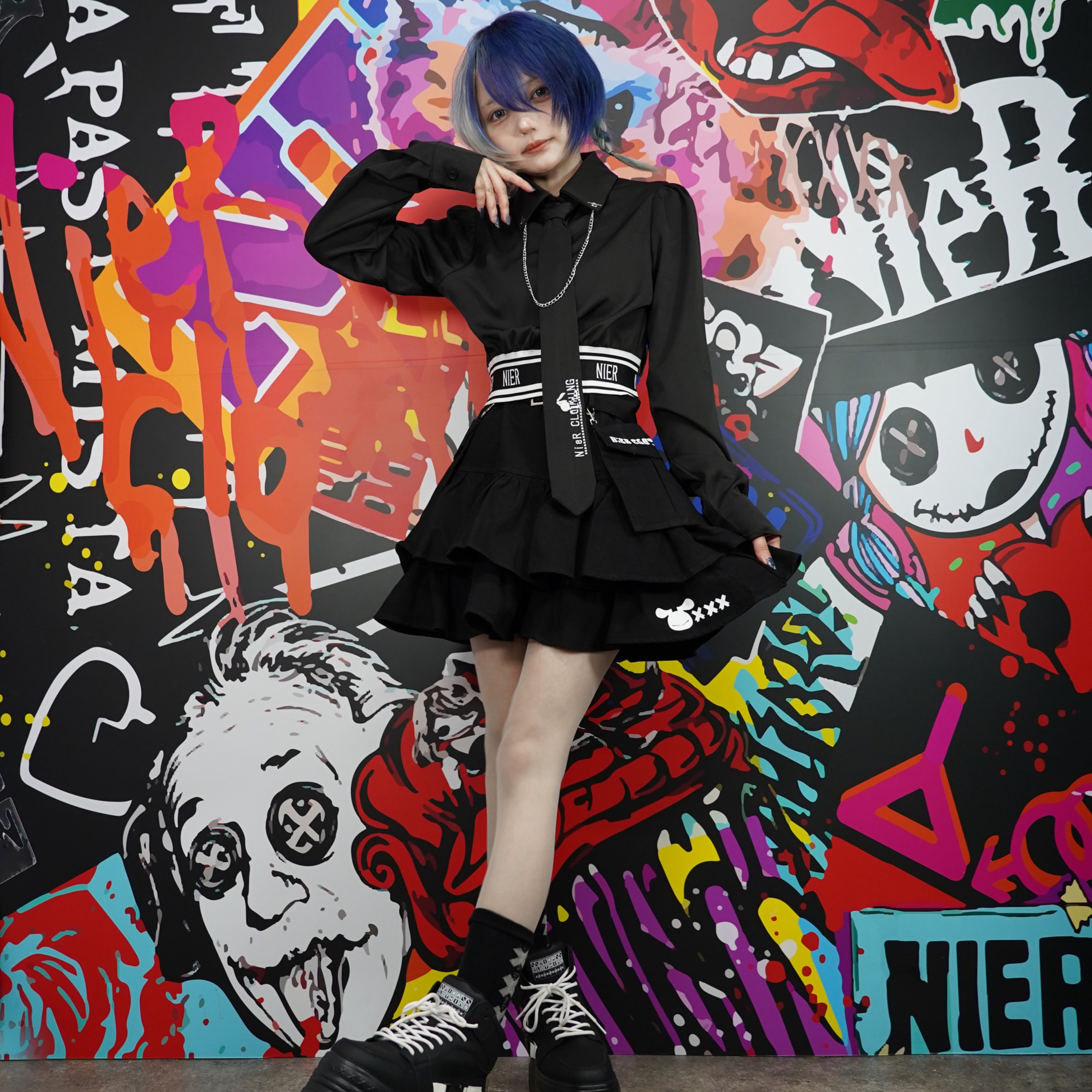 胸下でフィットするNIERロゴ入りウエストゴムにより、