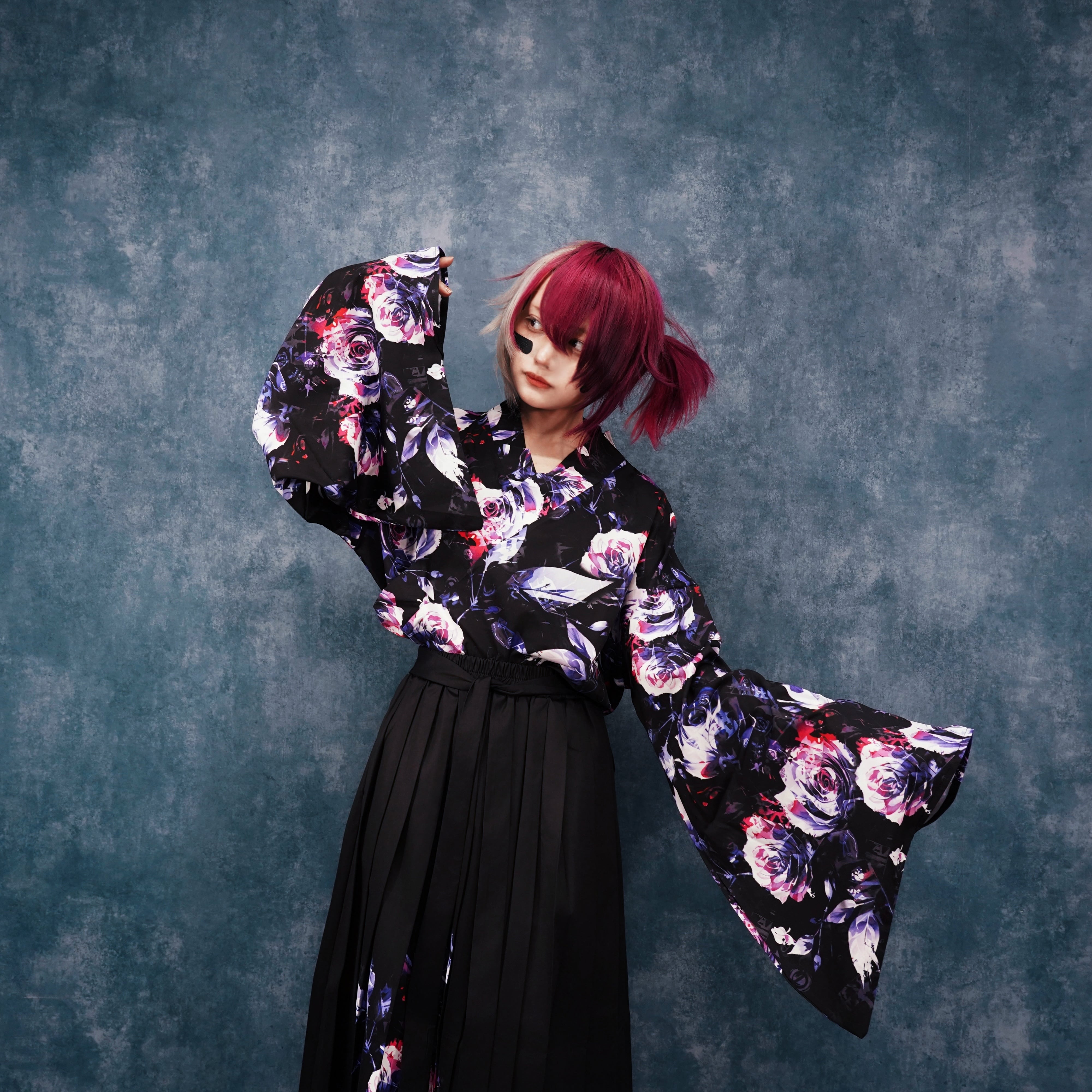 軽量着物袖UNISEXプルオーバー【和柄薔薇】