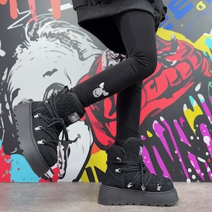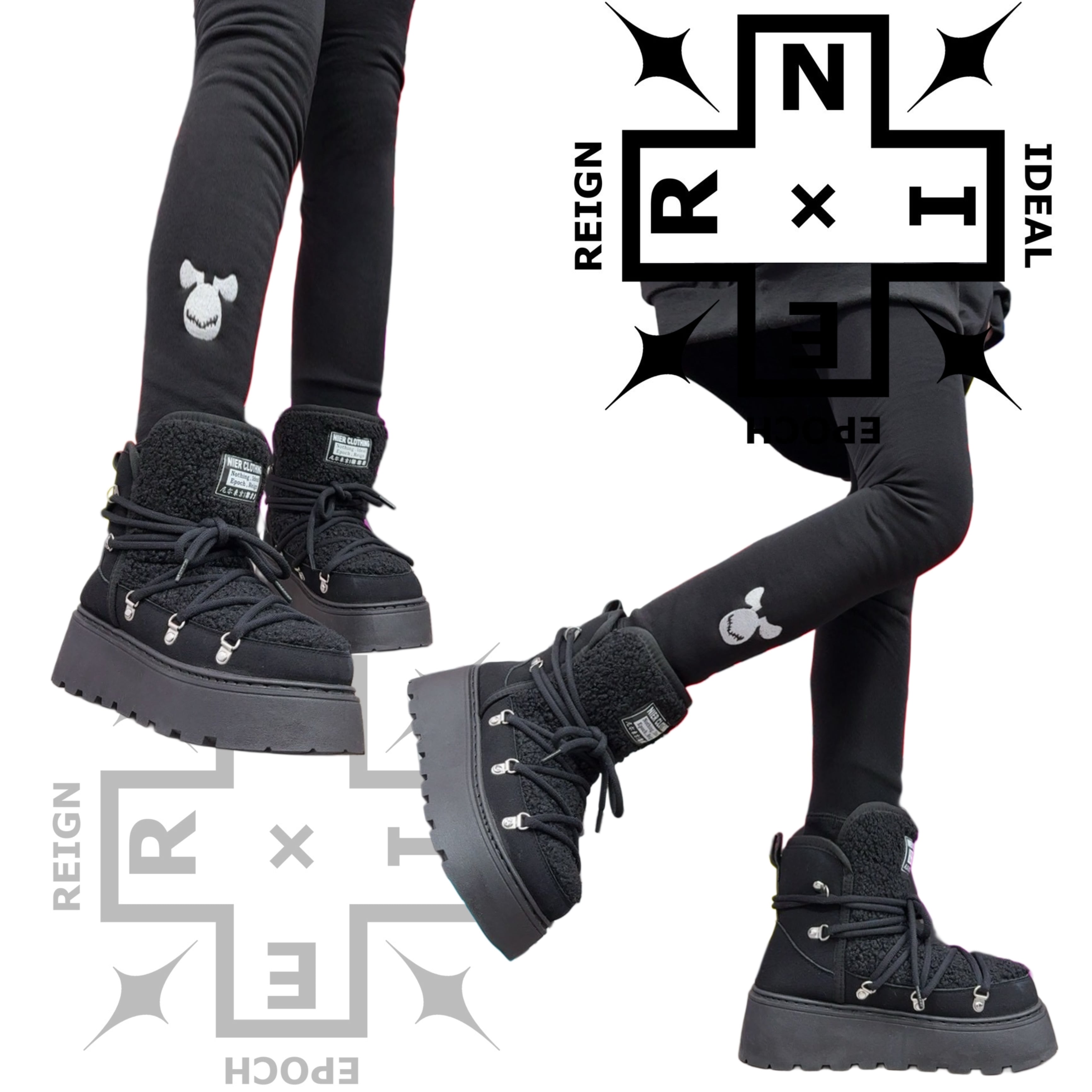 《先着50点限定50%OFF》防寒厚手 内側ふわもこレギンスパンツ【SILHOUETTE刺繍】