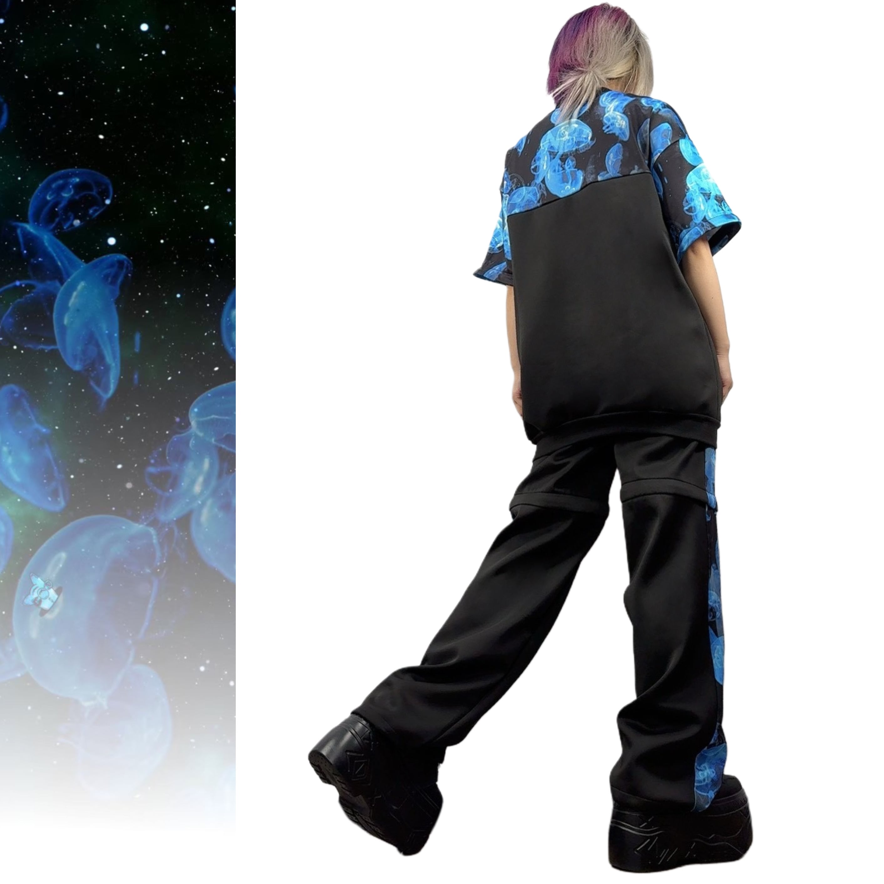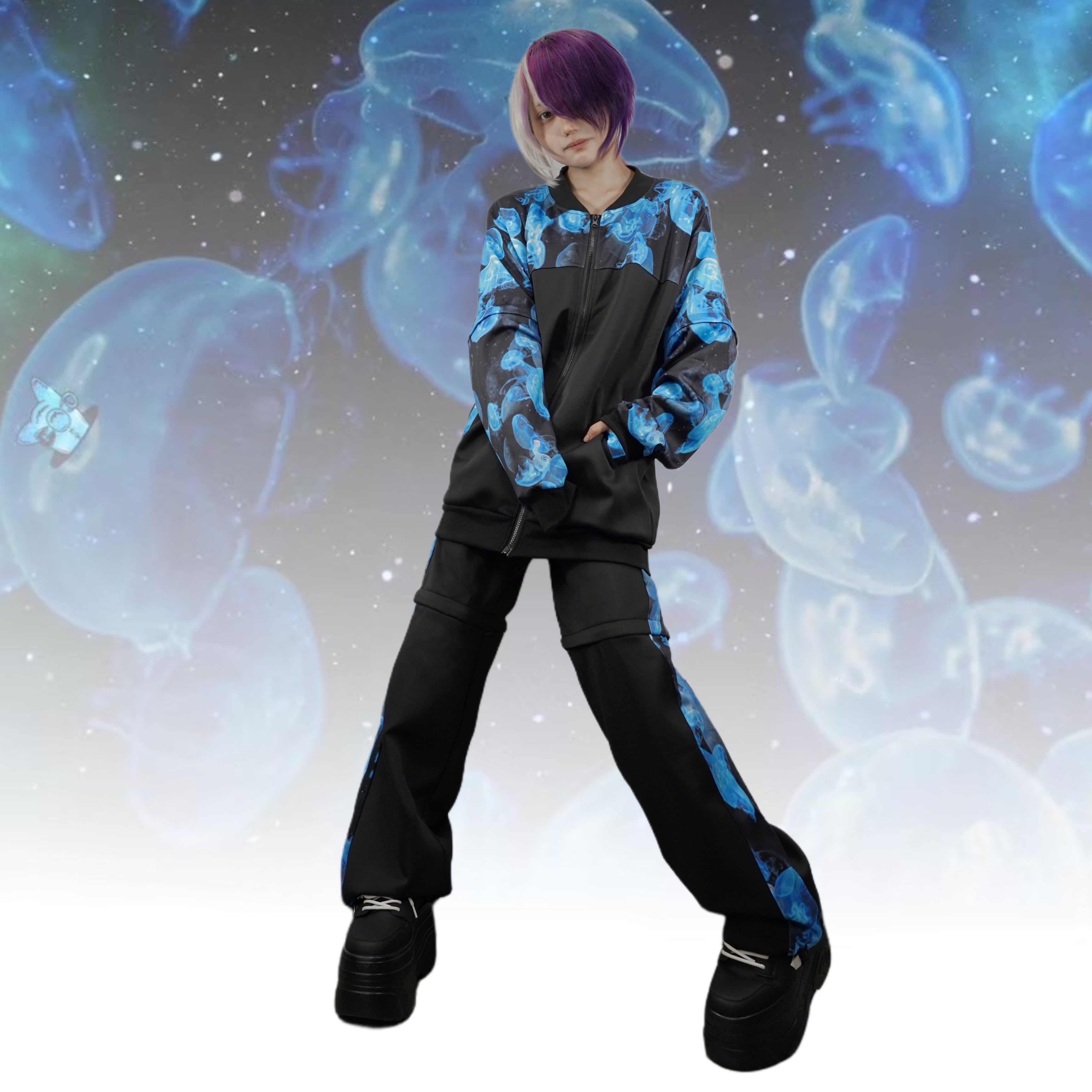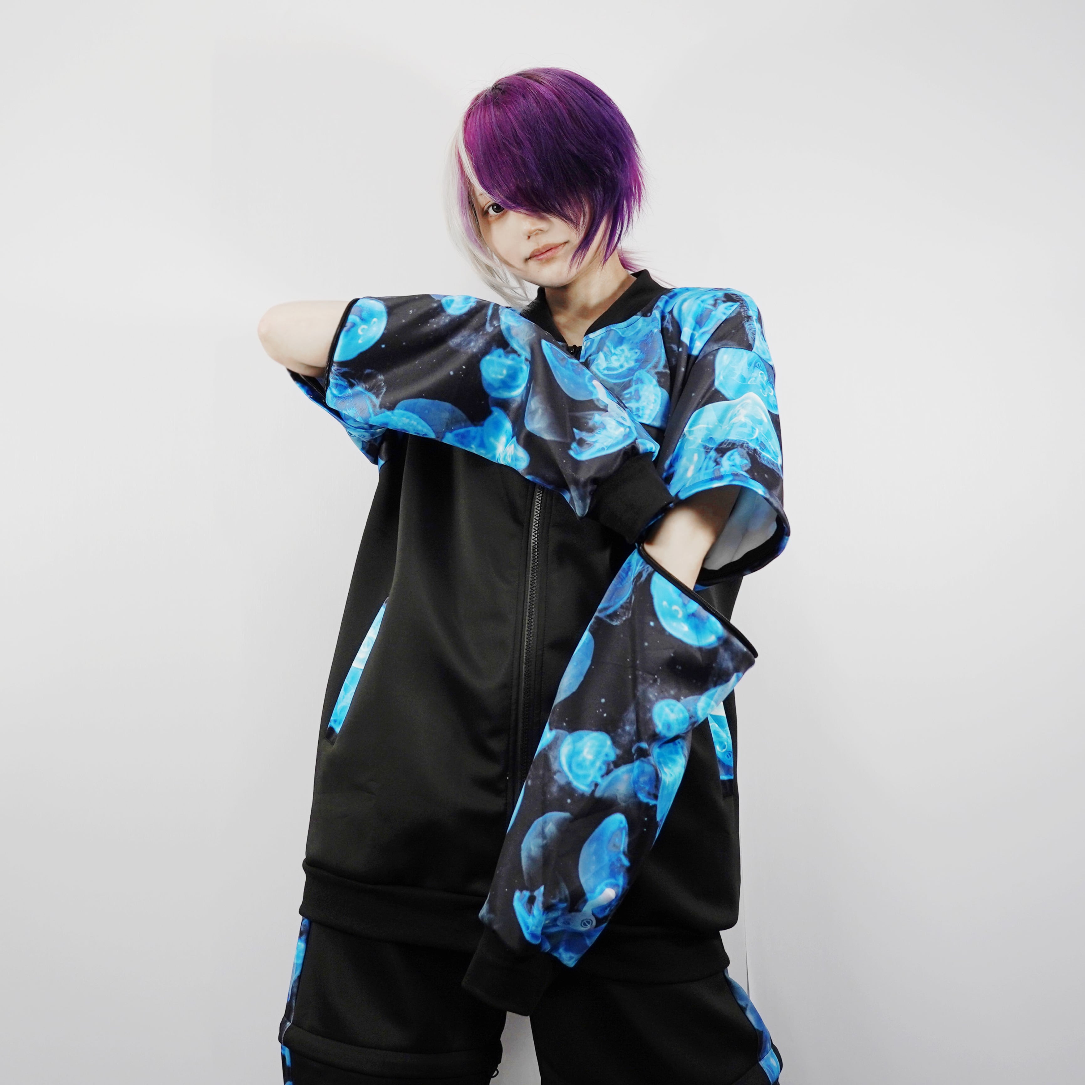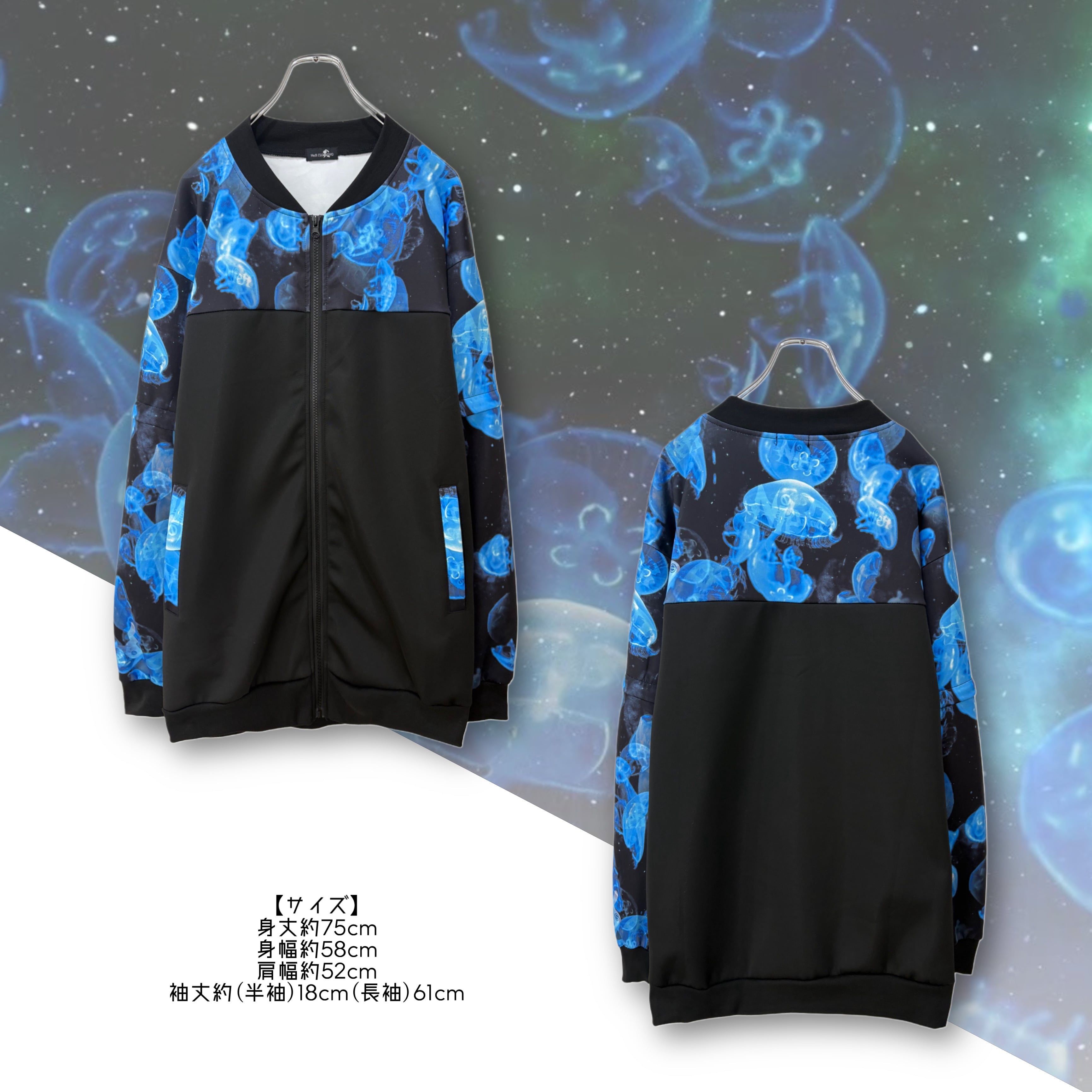 幻想的なブルーの海月柄を大胆に落とし込んだ、存在感抜群のZIPアウターが登場。