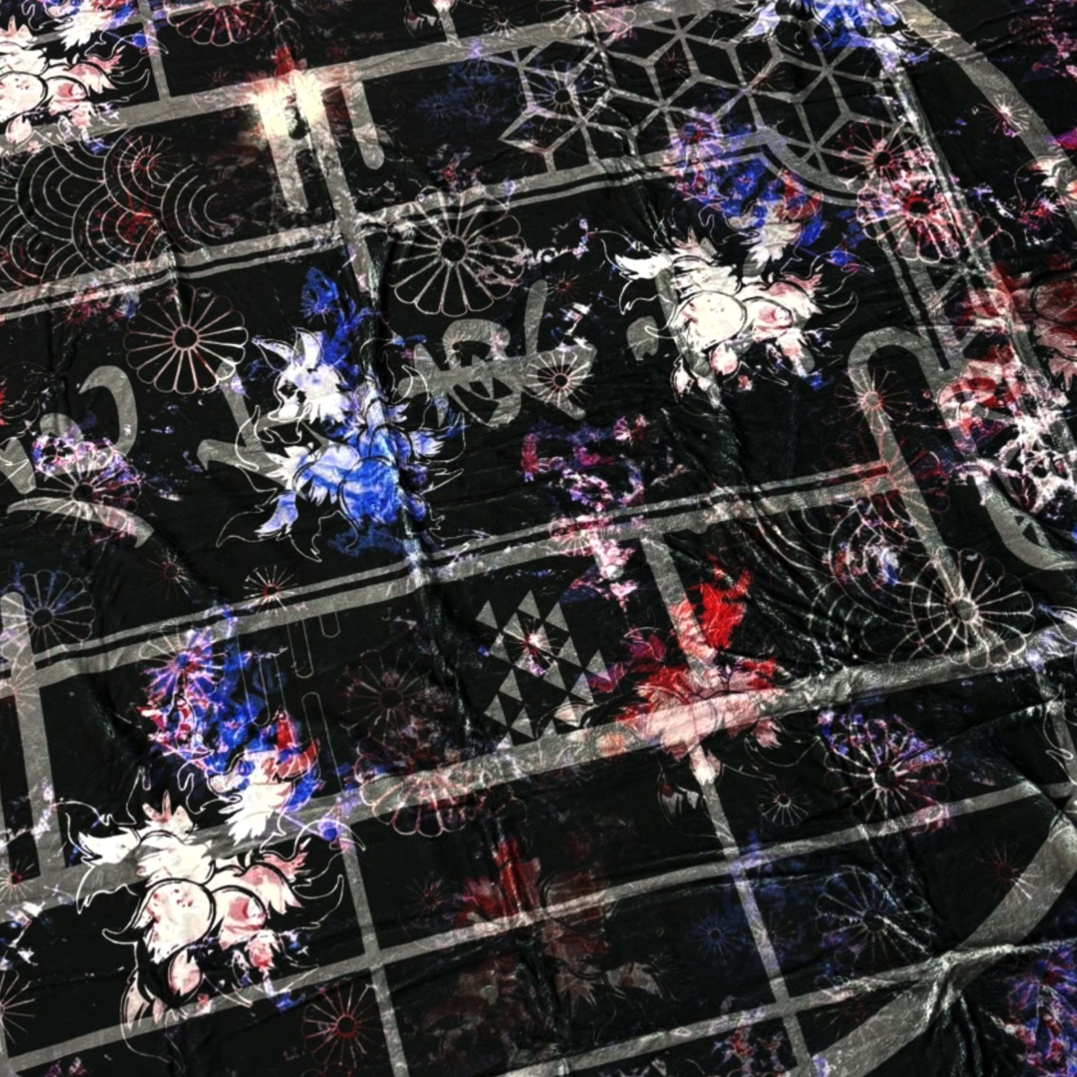 闇に咲き乱れる九尾の総柄が圧倒的存在感を放つ、