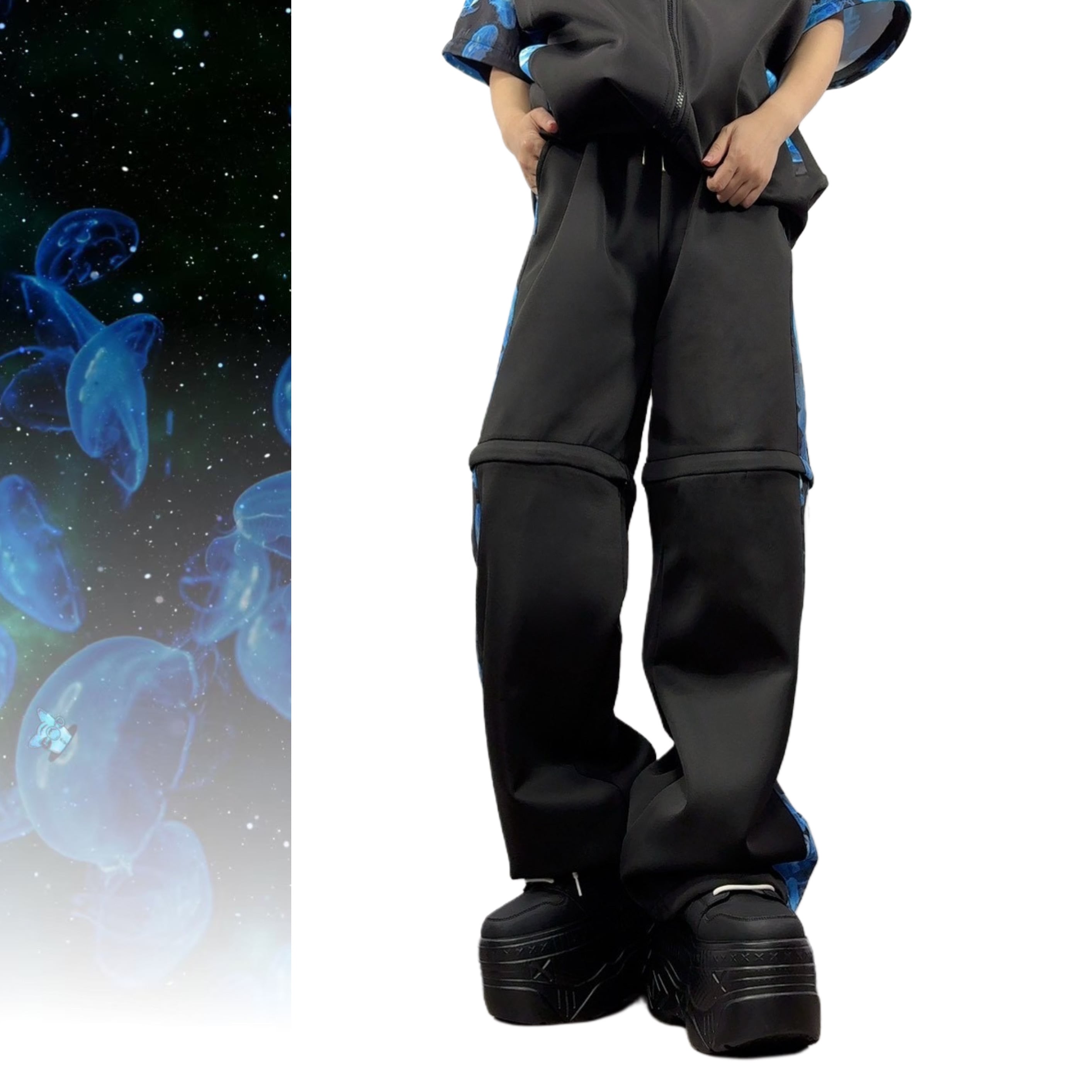 【海月】2WAY GIMMICK UNISEX WIDE PANTS