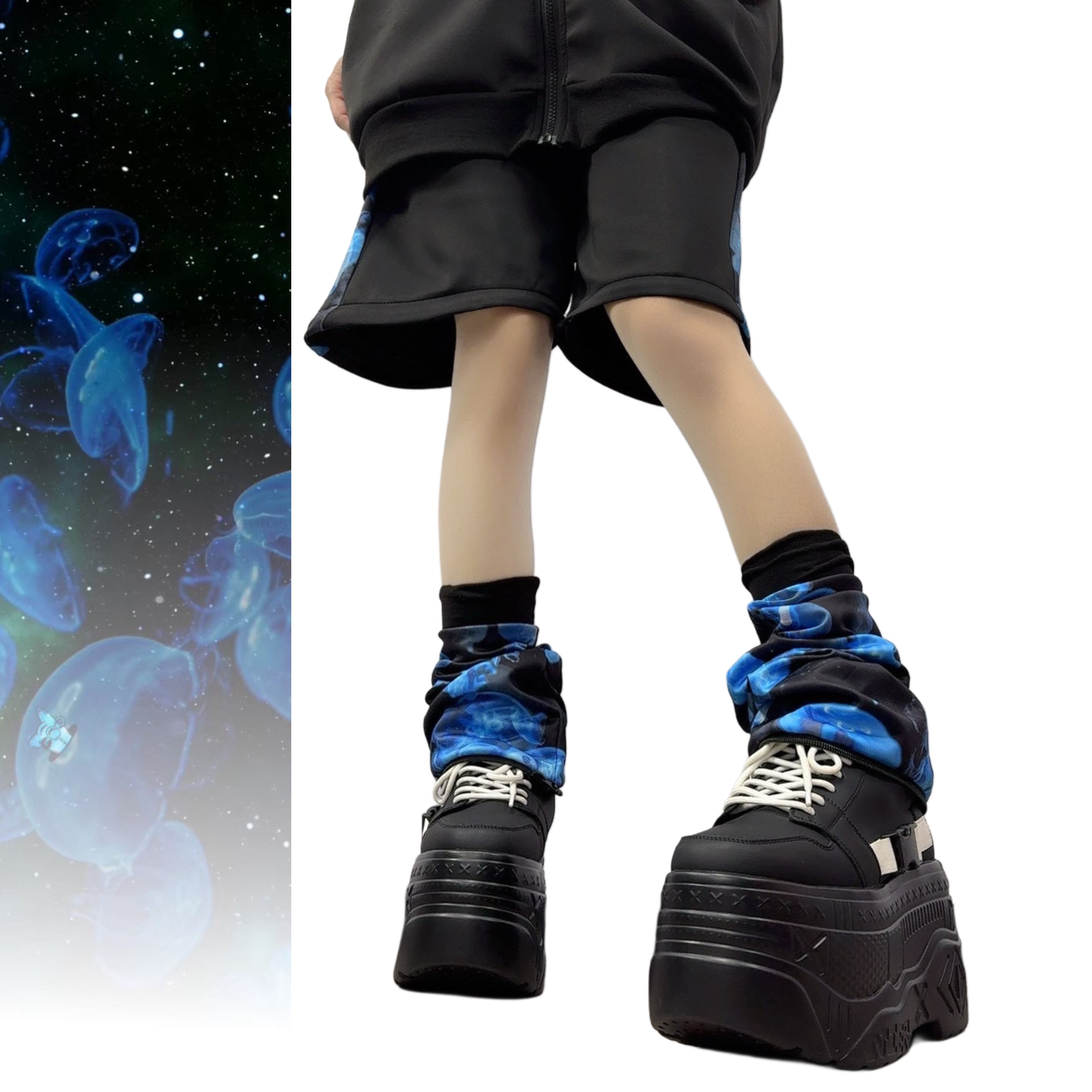 幻想的な海月が漂う、青く儚いアート柄がサイドに施された