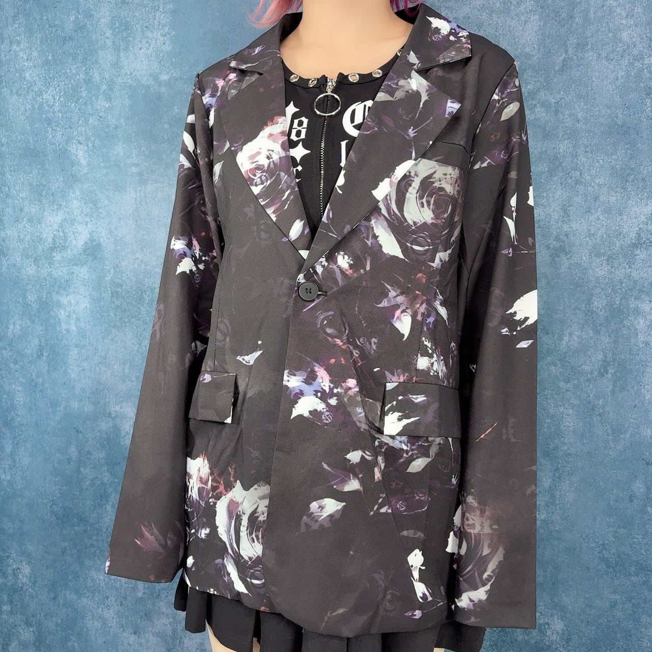 ダークトーンに描かれた薔薇モチーフが上品で雰囲気のあるスタイルを演出し、