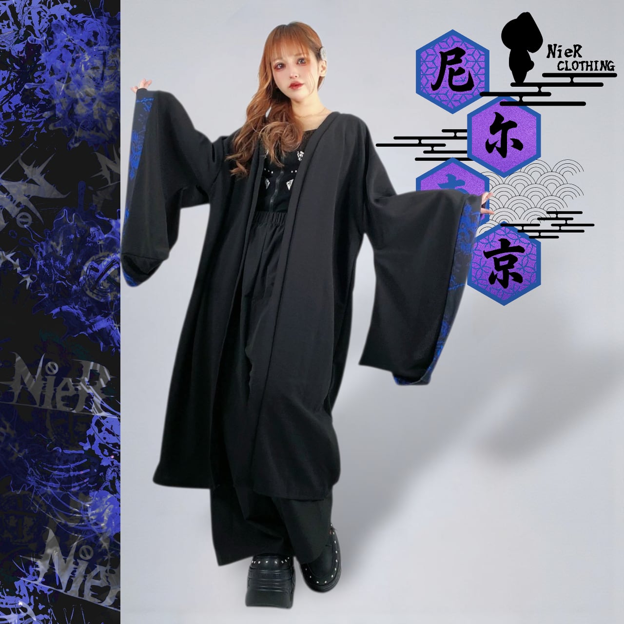 和の美しさとNIERを融合させた、ロング丈着物袖アウターです。