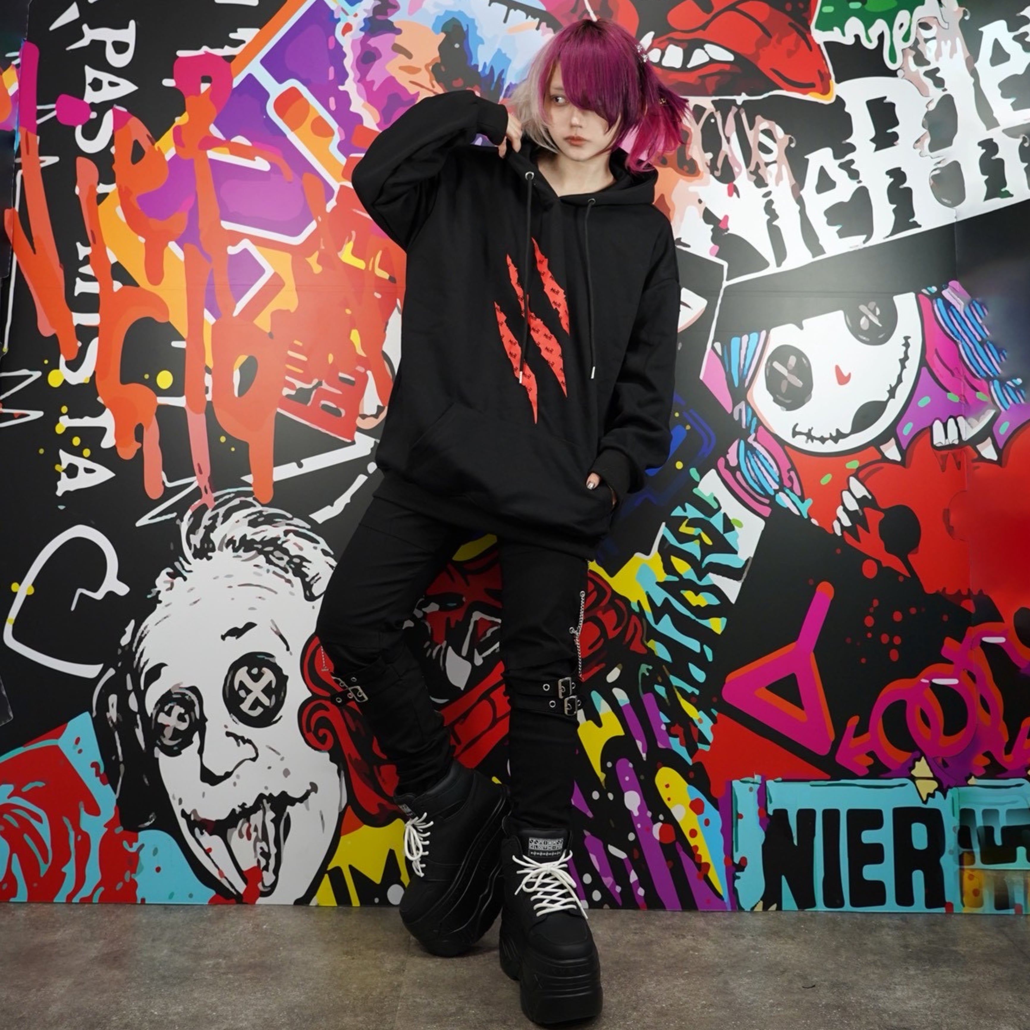 《先着77点限定ばら撒きプレゼント》RED CLAW MARKS BLACK HOODIE