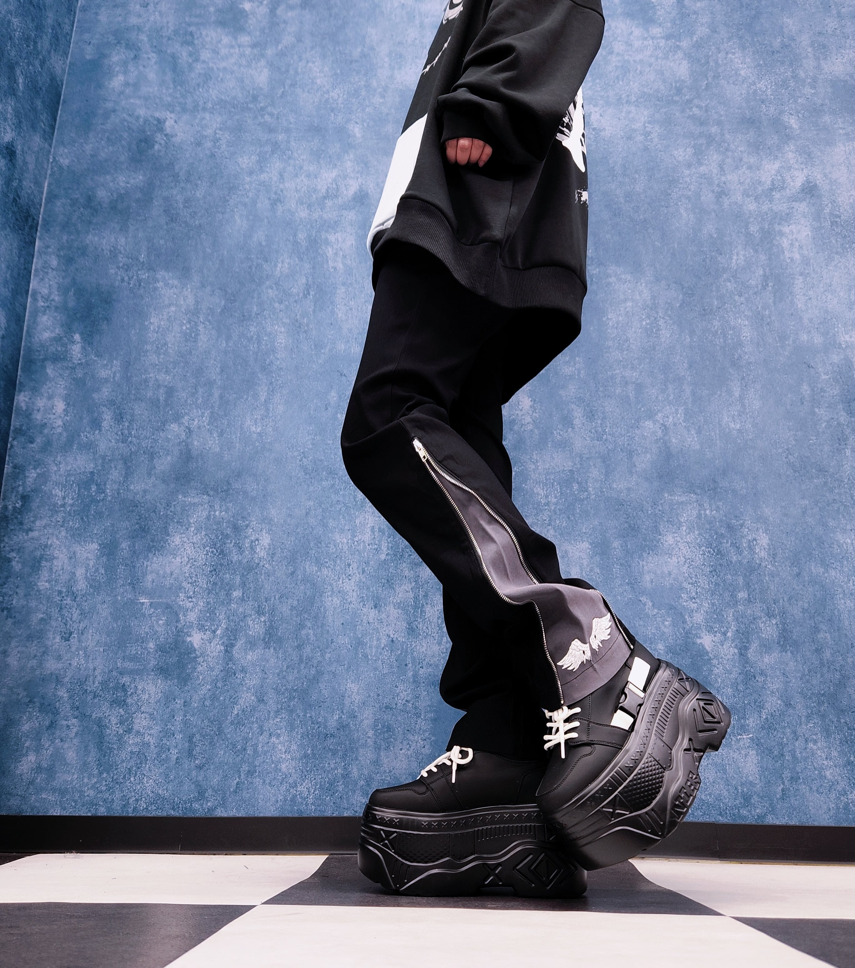 --先着55点限定大特価--裾ZIPPER 2WAY UNISEXスキニーパンツ【WING刺繍】