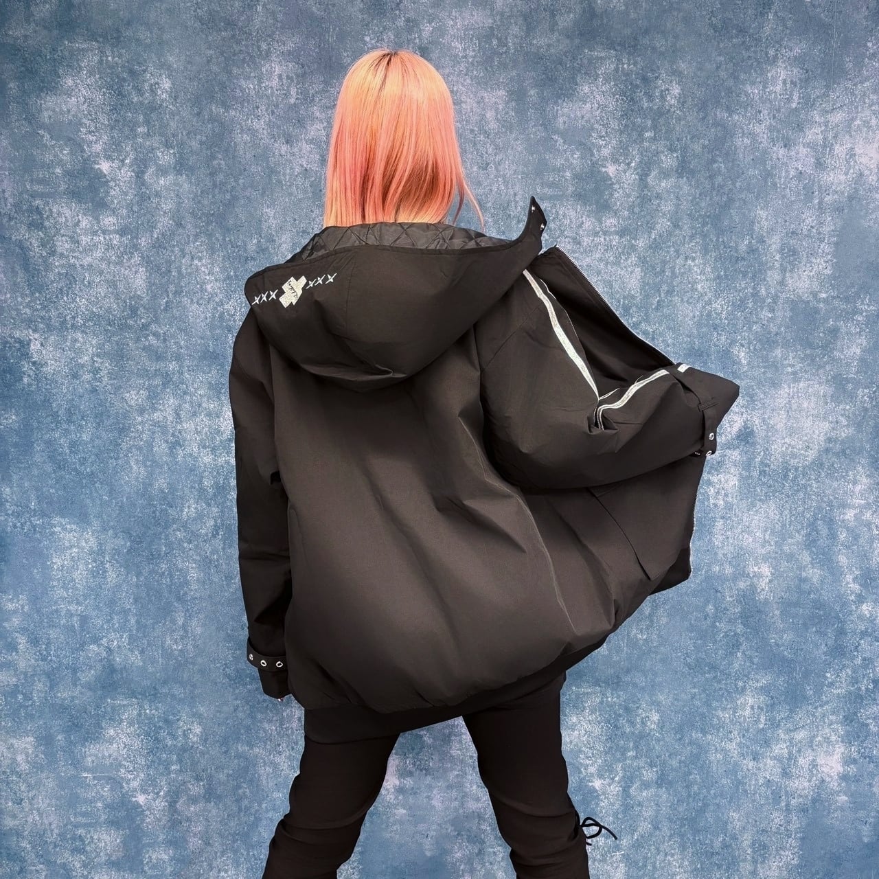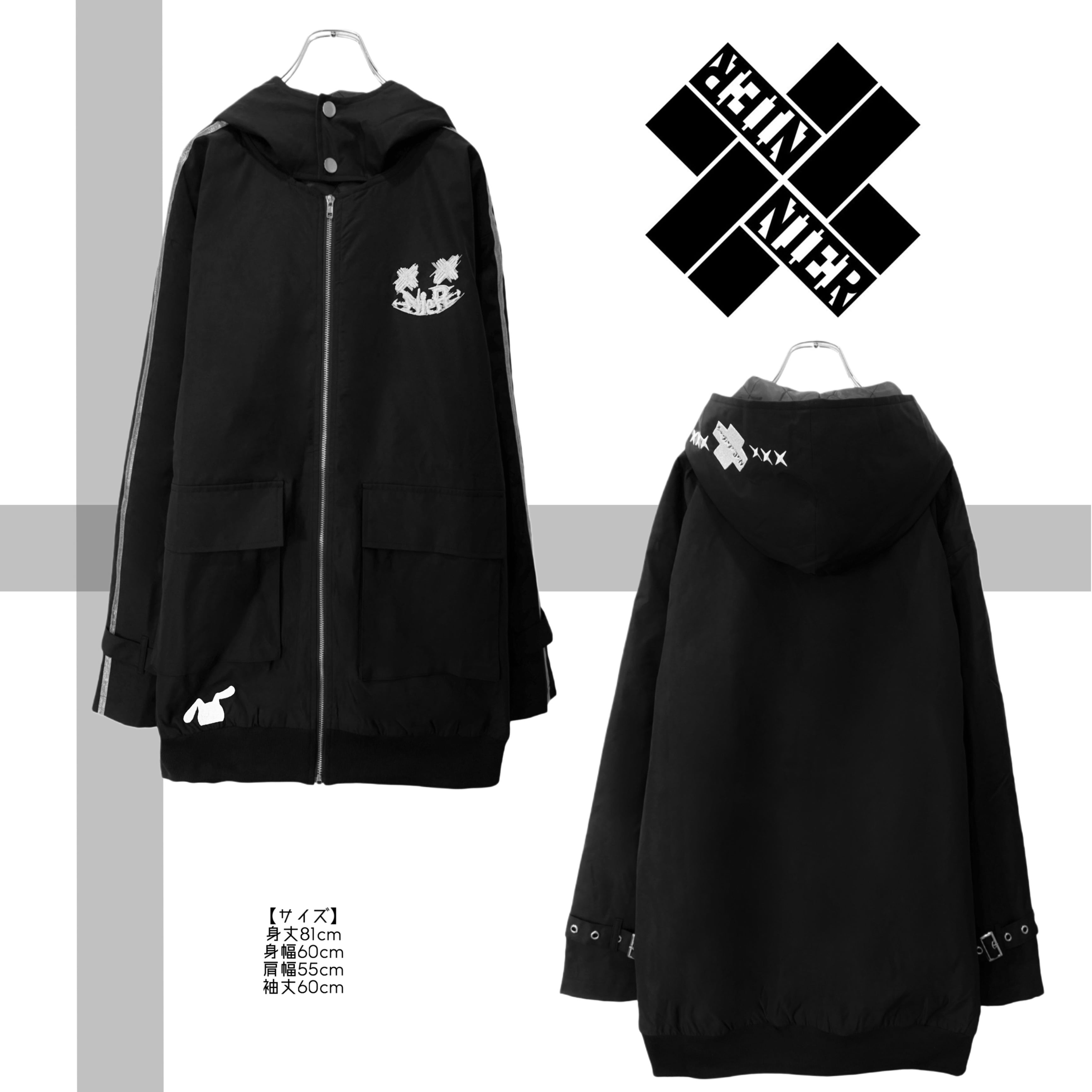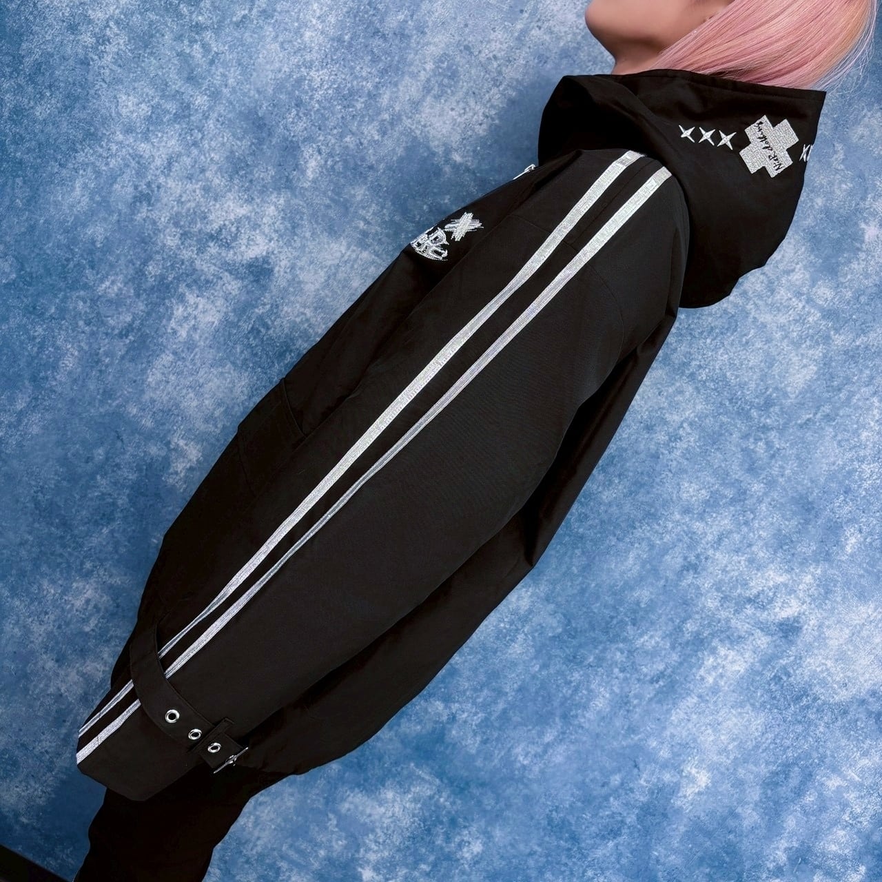 フード部分にも✖︎✖︎✖︎ロゴの刺繍を施し、