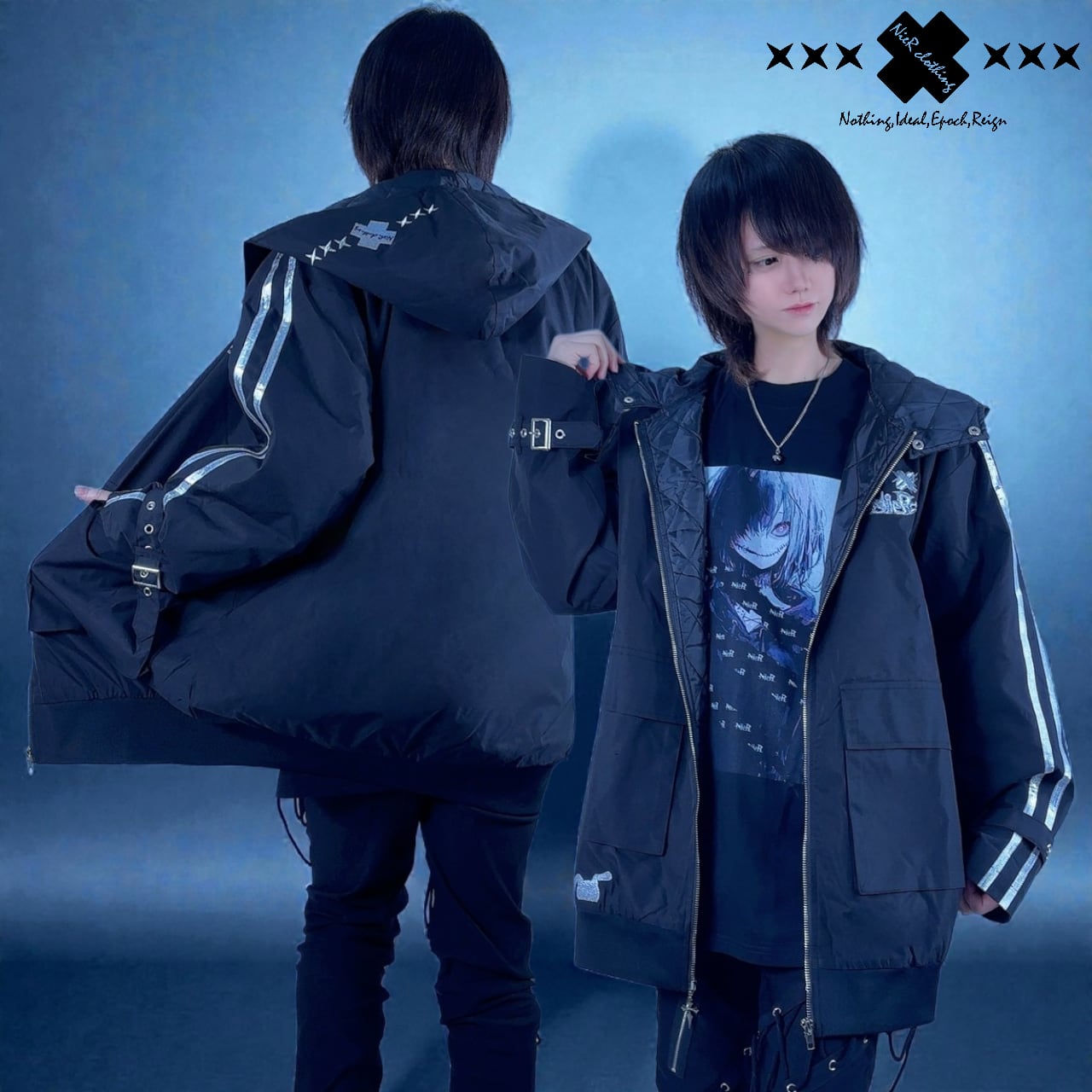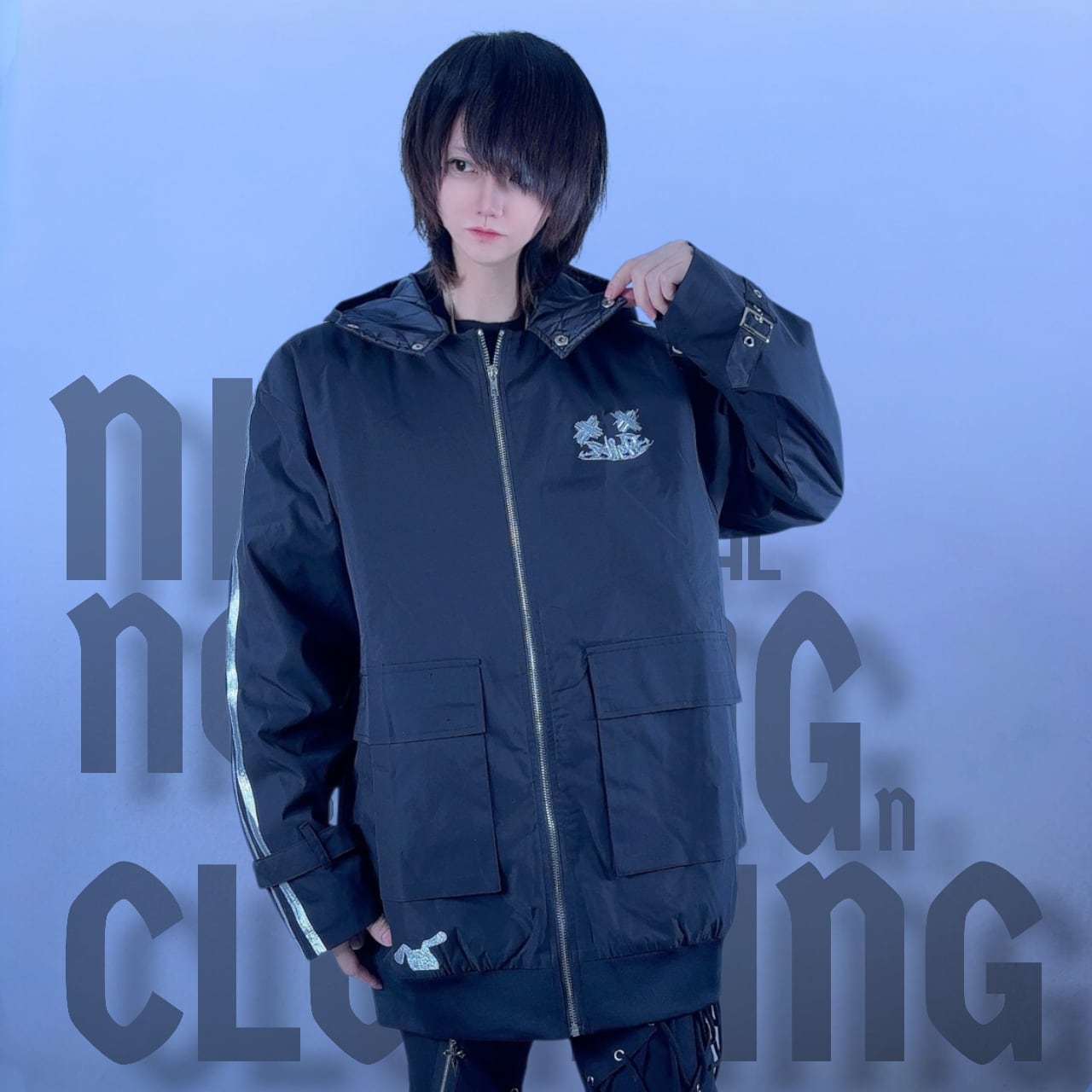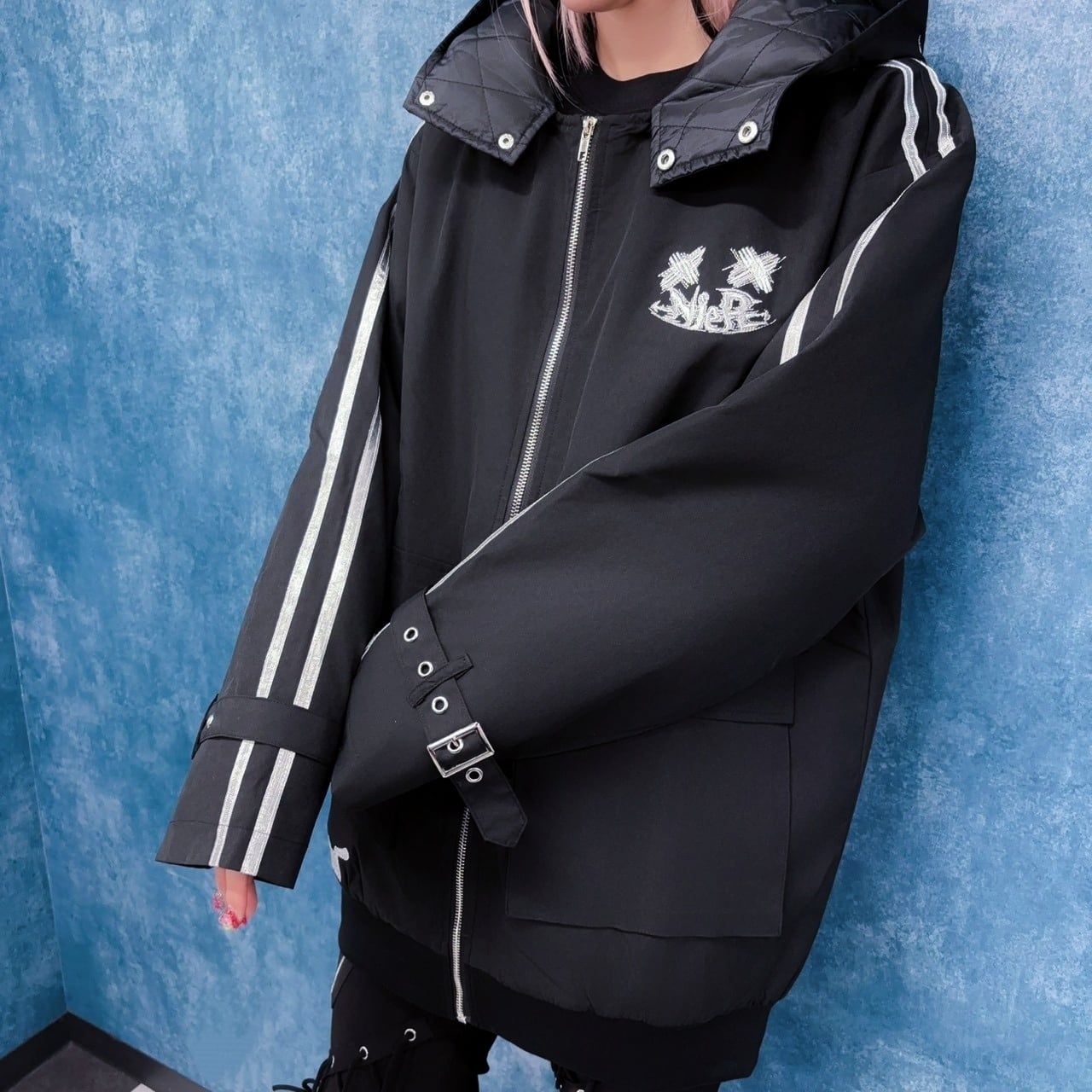 フード部分にも✖︎✖︎✖︎ロゴの刺繍を施し、