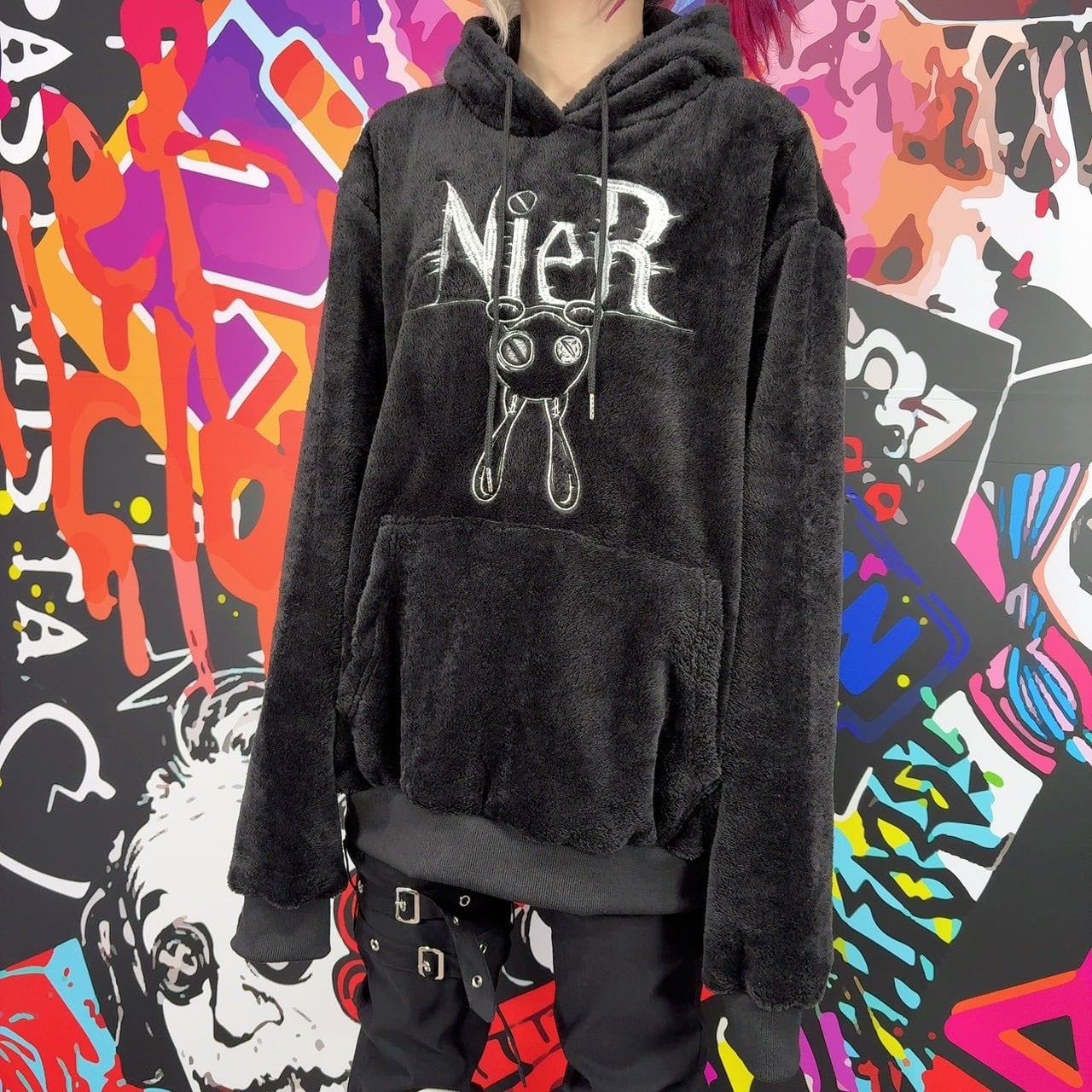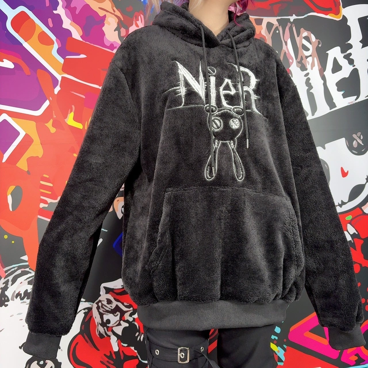 背面にはスリットから覗くようにNIERちゃんがデザインされた唯一無二のアート刺繍を配置。