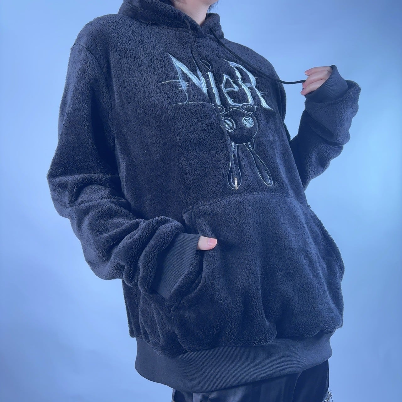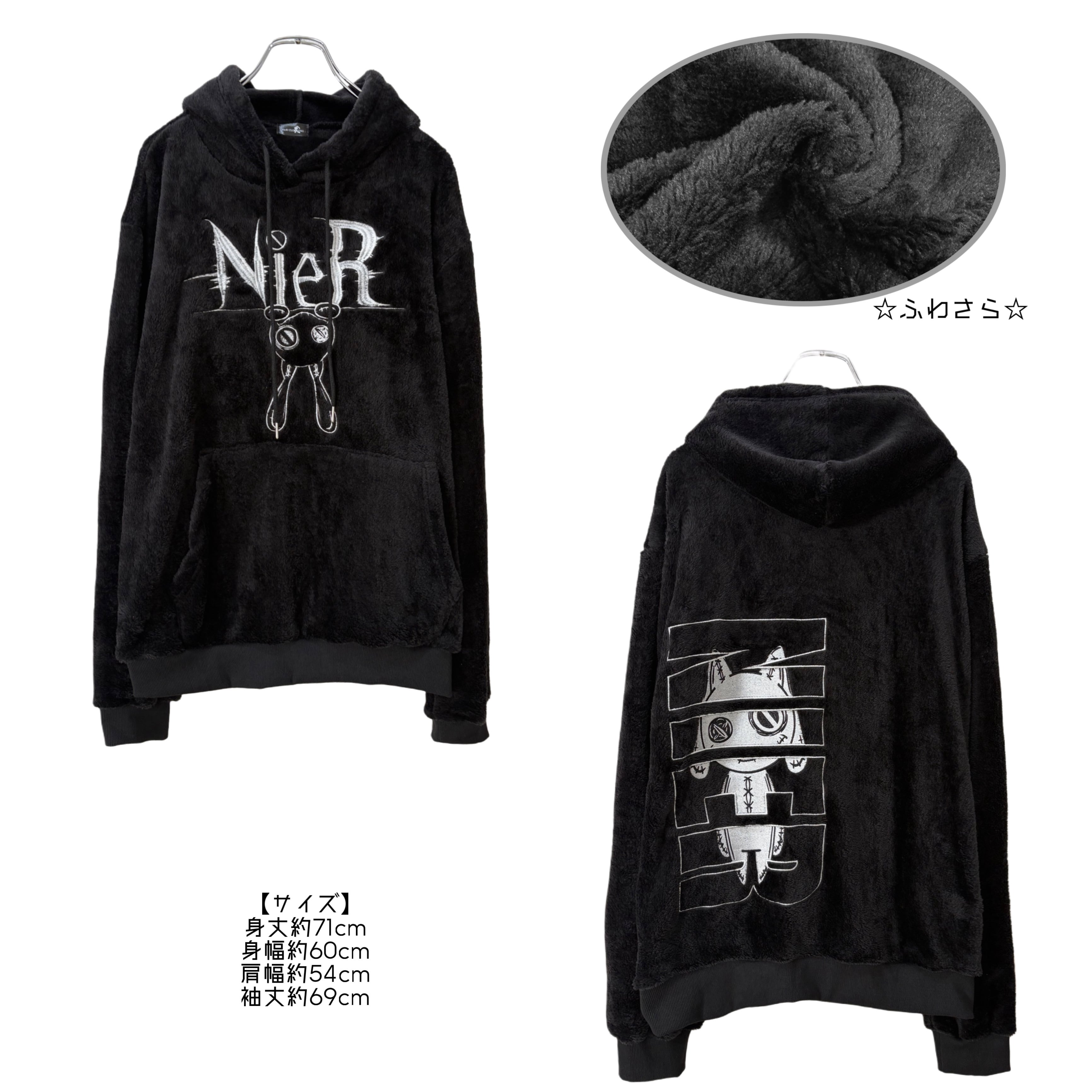 フロントにはロゴから顔を出す逆さNIERちゃんが大胆に刺繍され、
