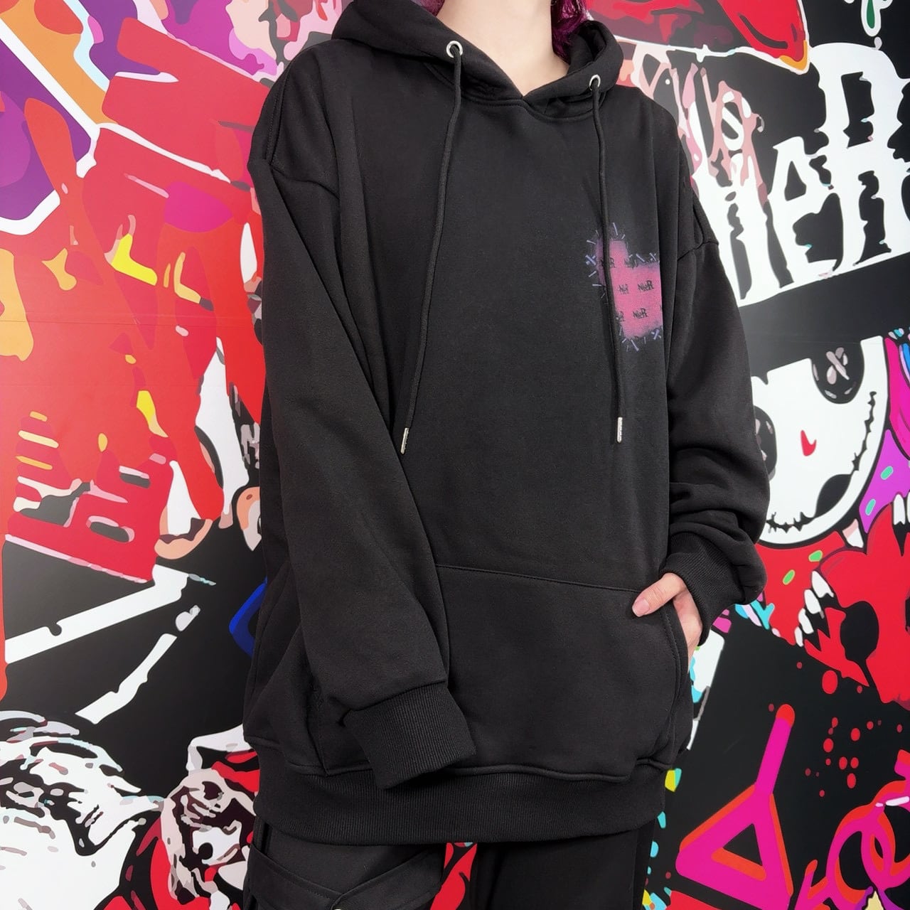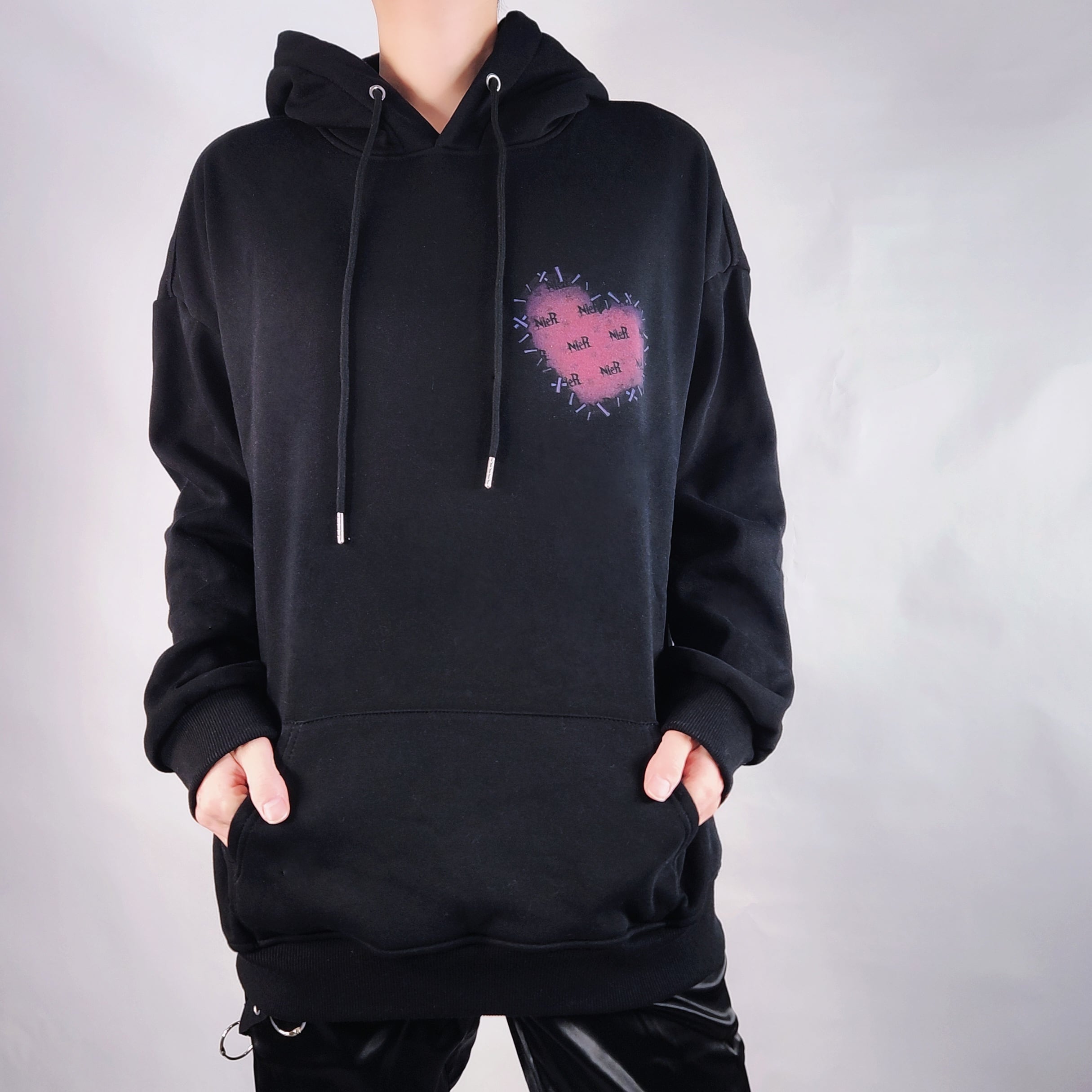 【先着39点限定新作先取60%OFF】内側フリース病みかわハートパッチプリントパーカー