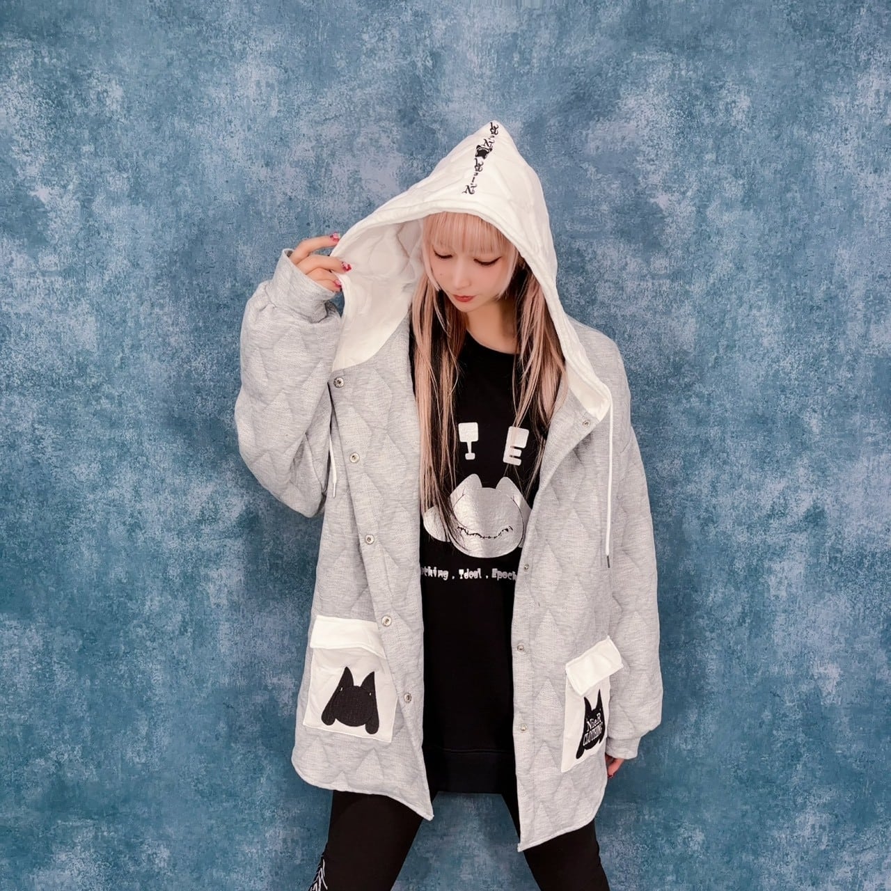 ホワイトのフードと、存在感抜群のBIGポケットデザインが