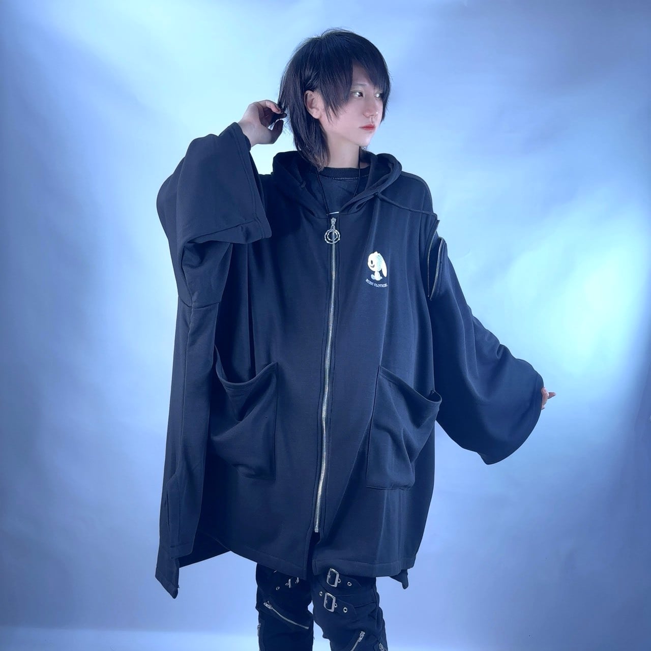 閉じれば暖かな長袖アウターとして着用できる2WAY仕様。