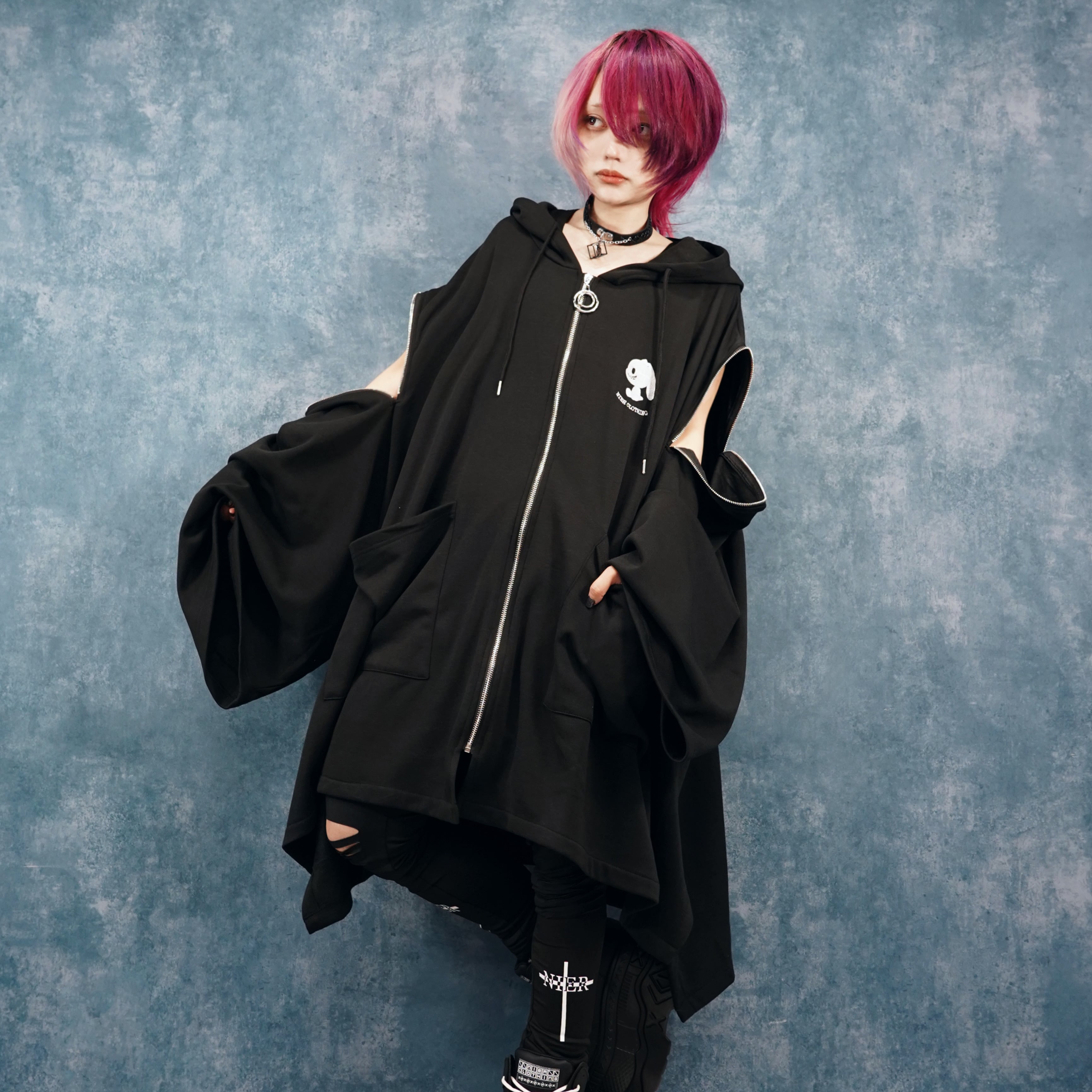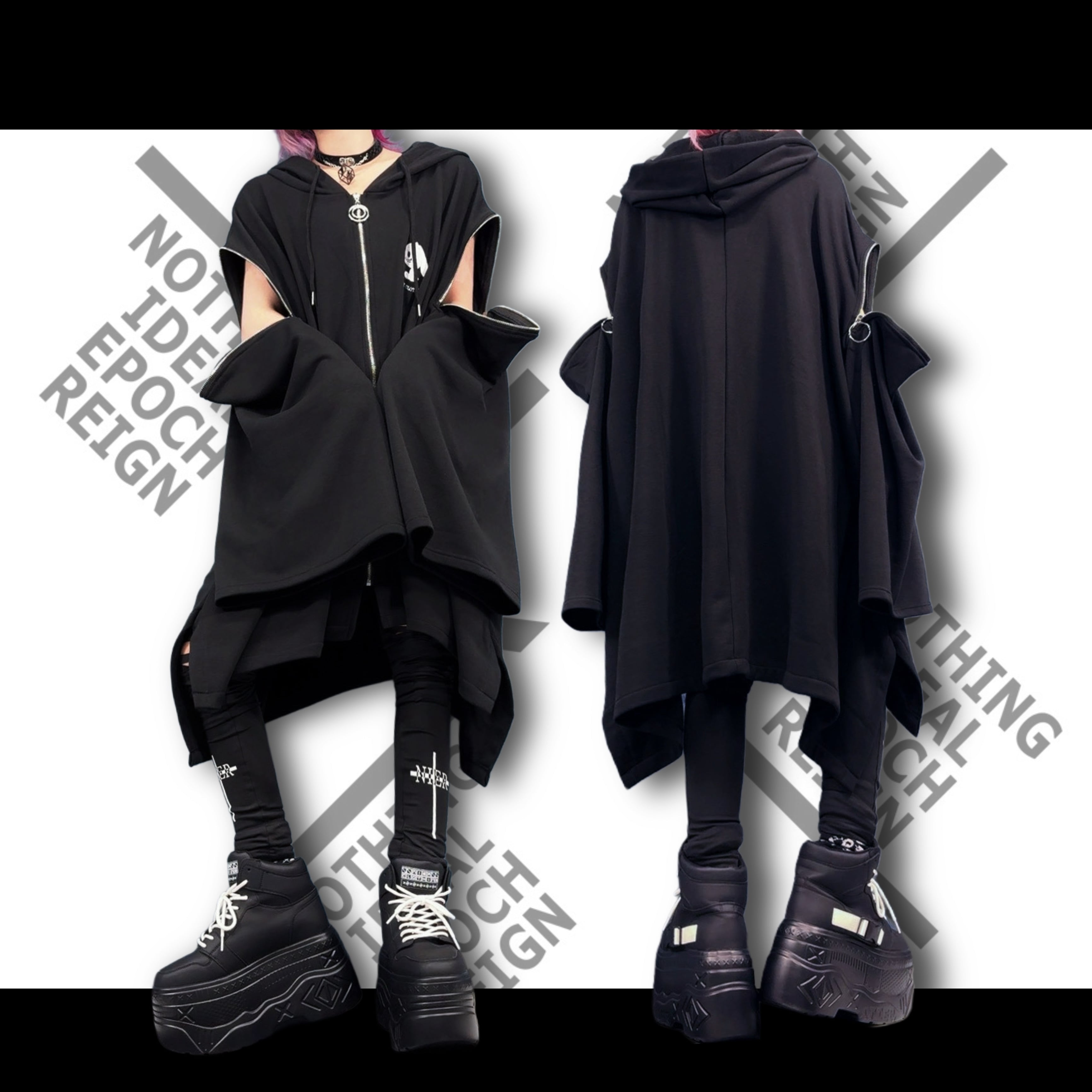 【12/12日目玉大特価65%OFF】防寒SUPER OVERSIZE 2WAY ZIP PONCHO OUTER【BLACK】