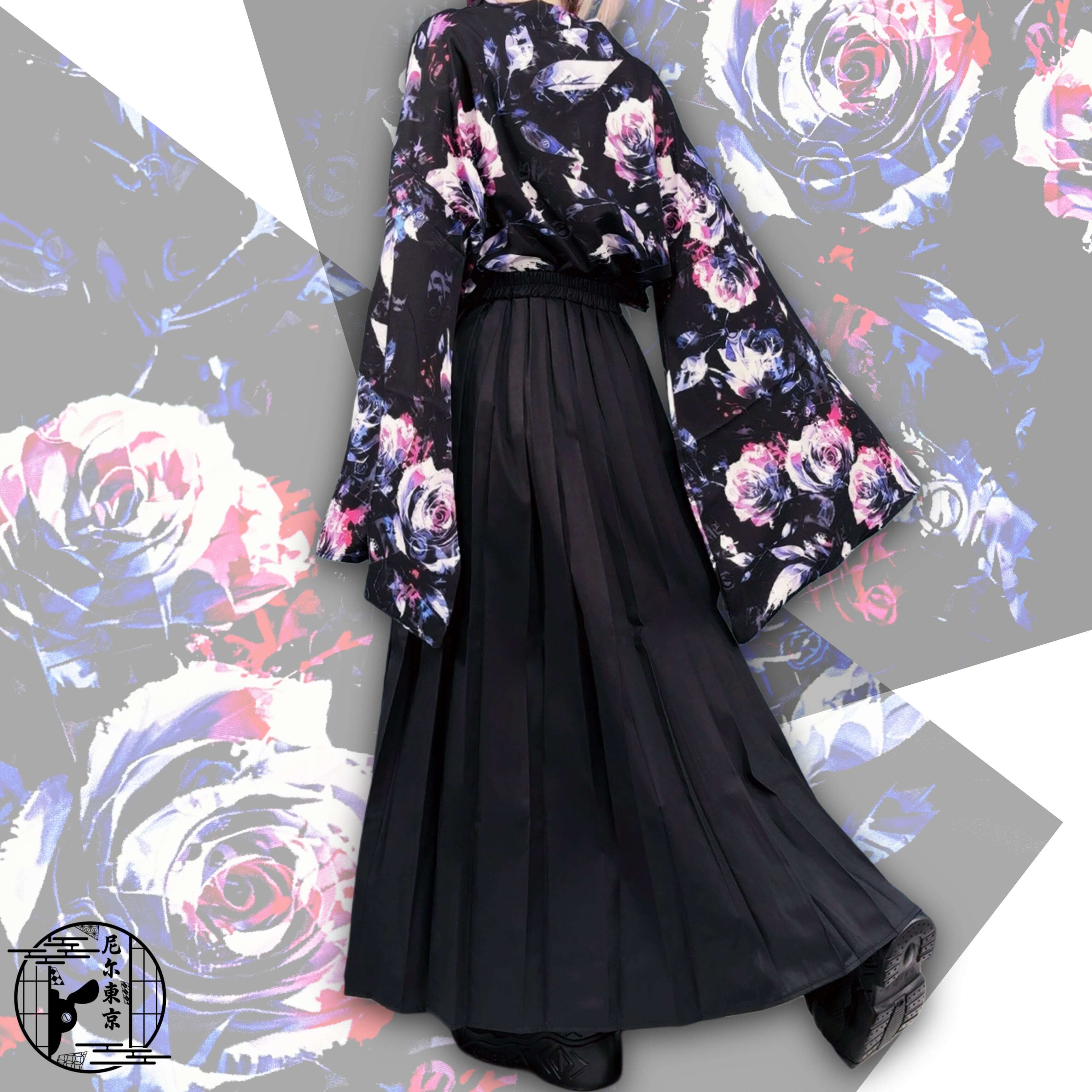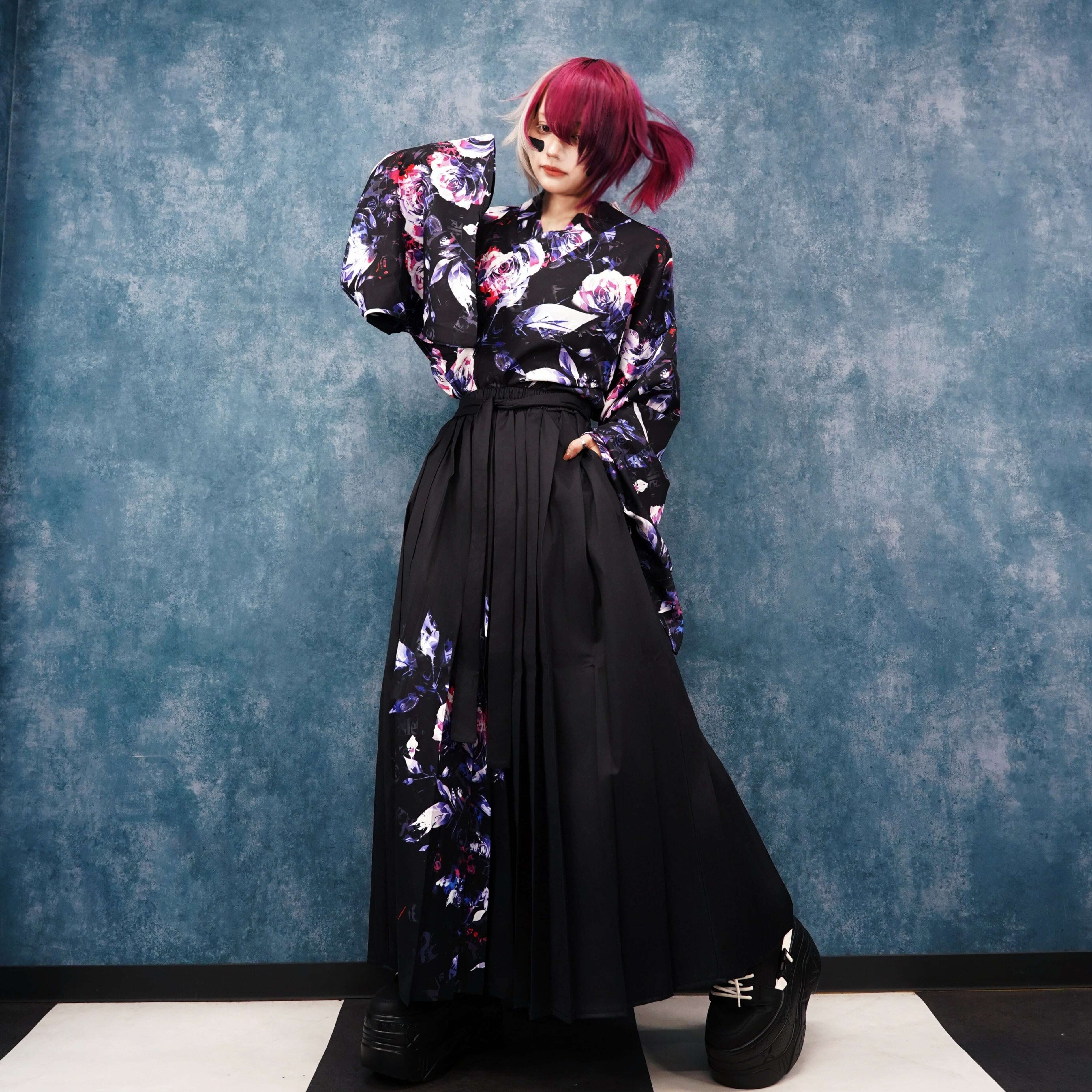 ポケット付き袴風ユニセックススカート【和柄薔薇】
