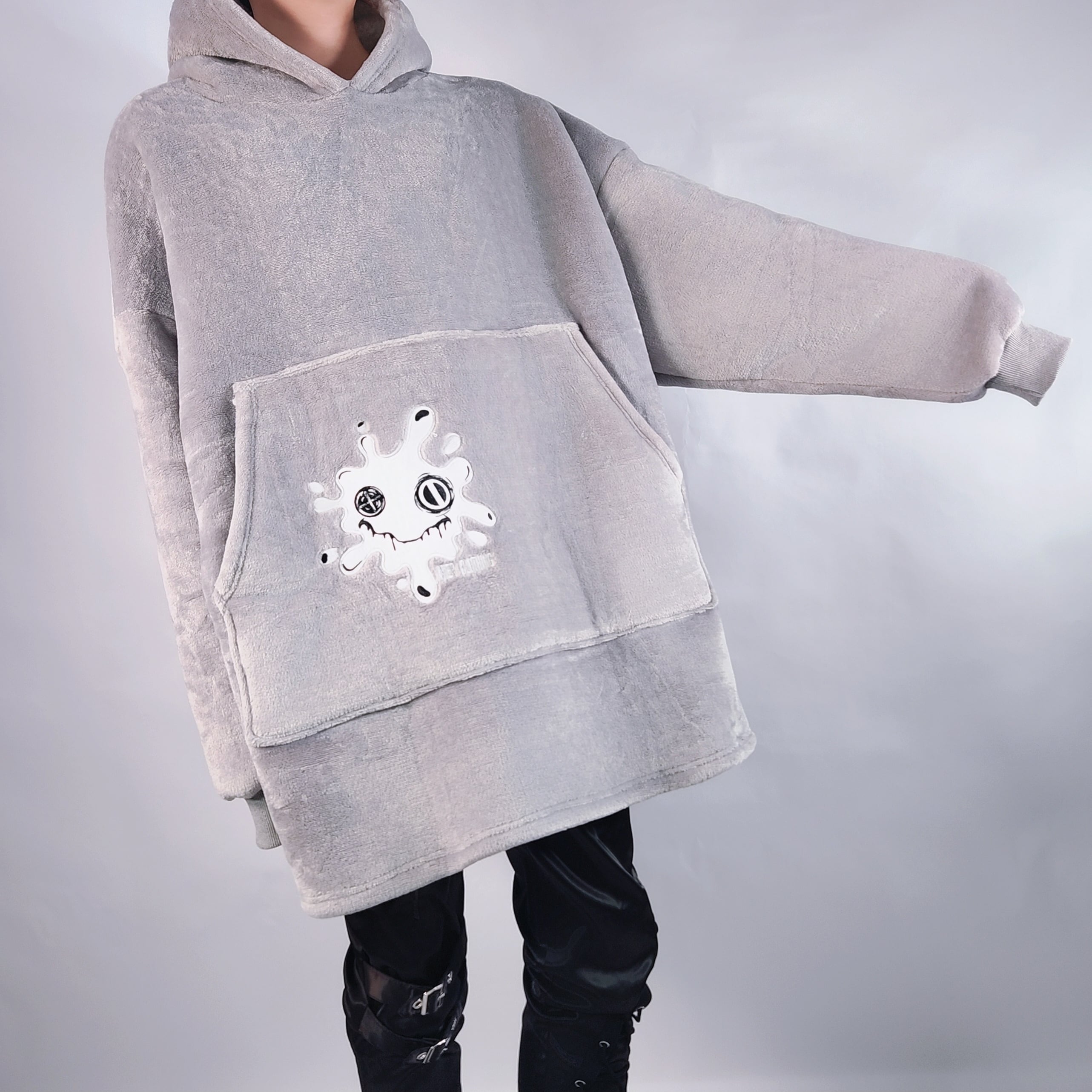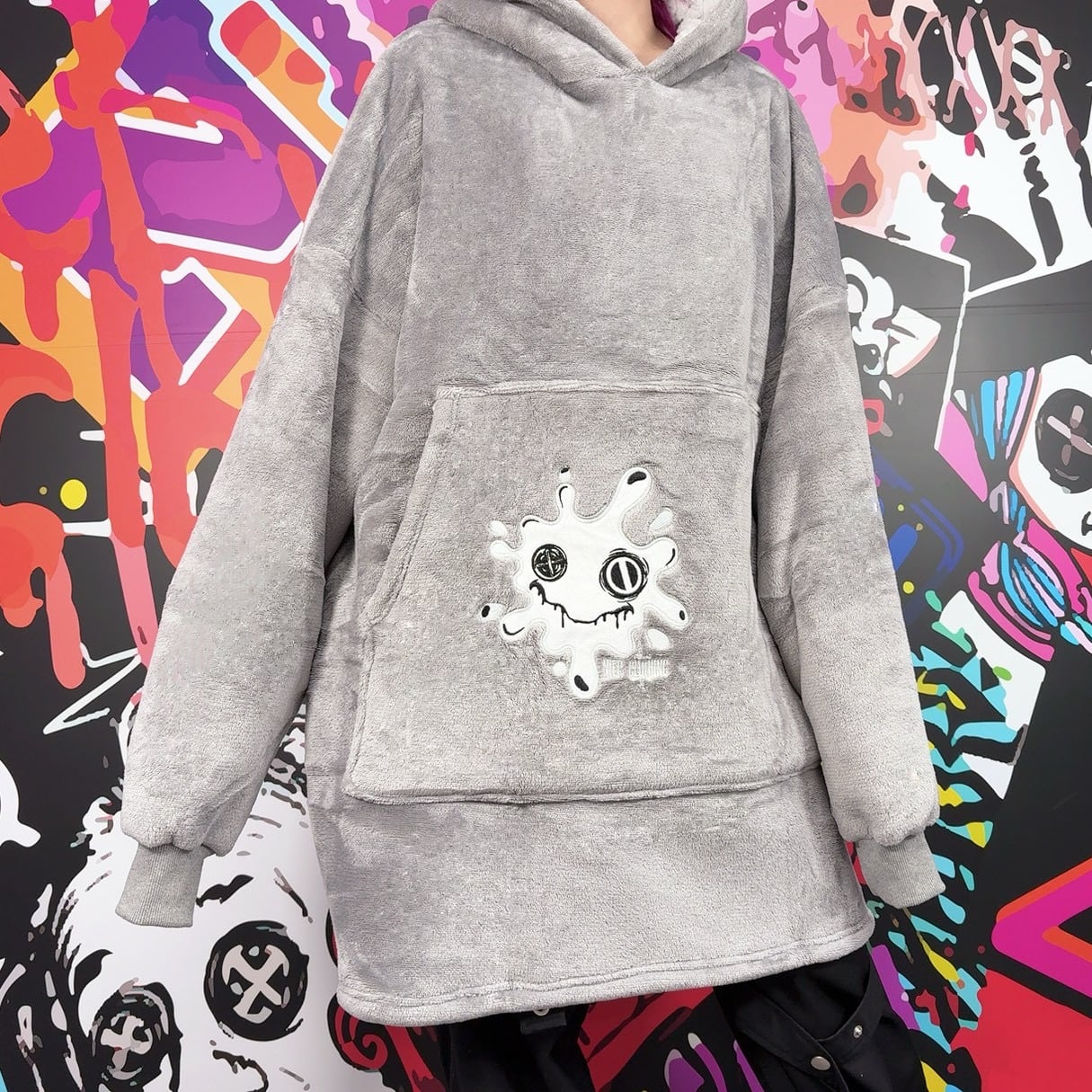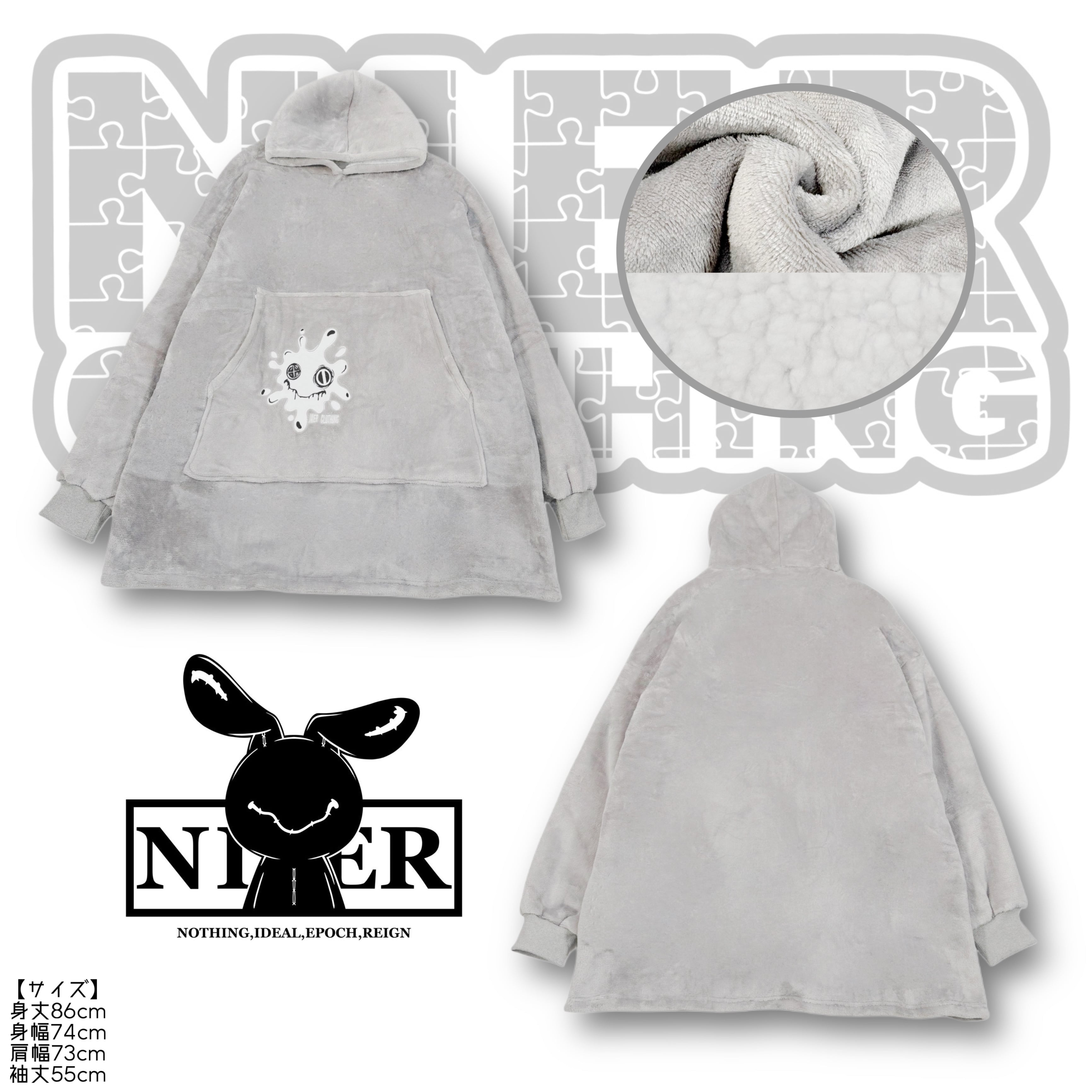 【NIERからのXmas PRESENT】着る毛布もこもこFACE UNISEX HOODIE【GRAY】