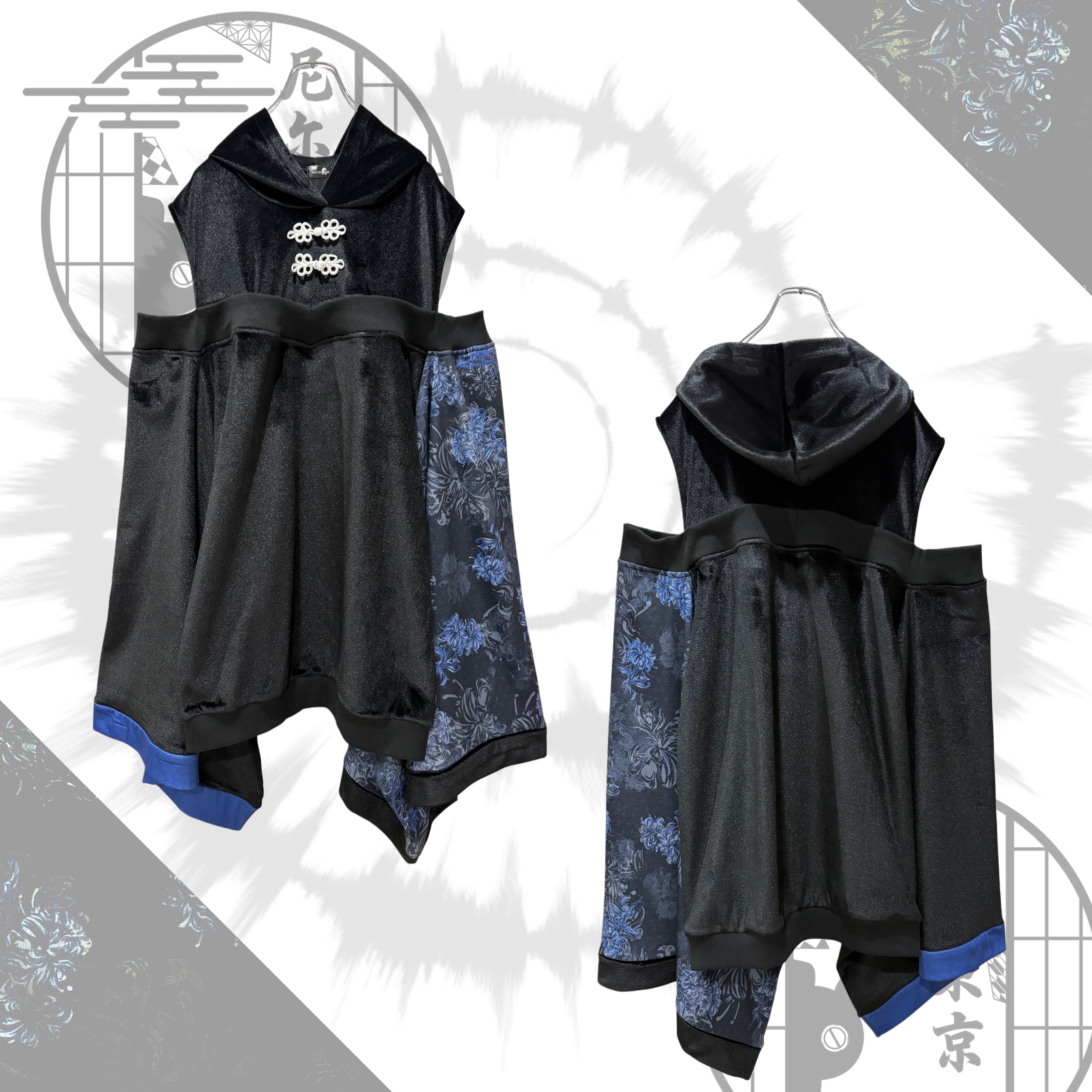 青く咲く彼岸花の和柄スリーブを組み合わせた