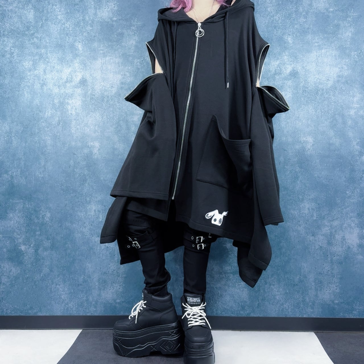 閉じれば暖かな長袖アウターとして着用できる2WAY仕様。